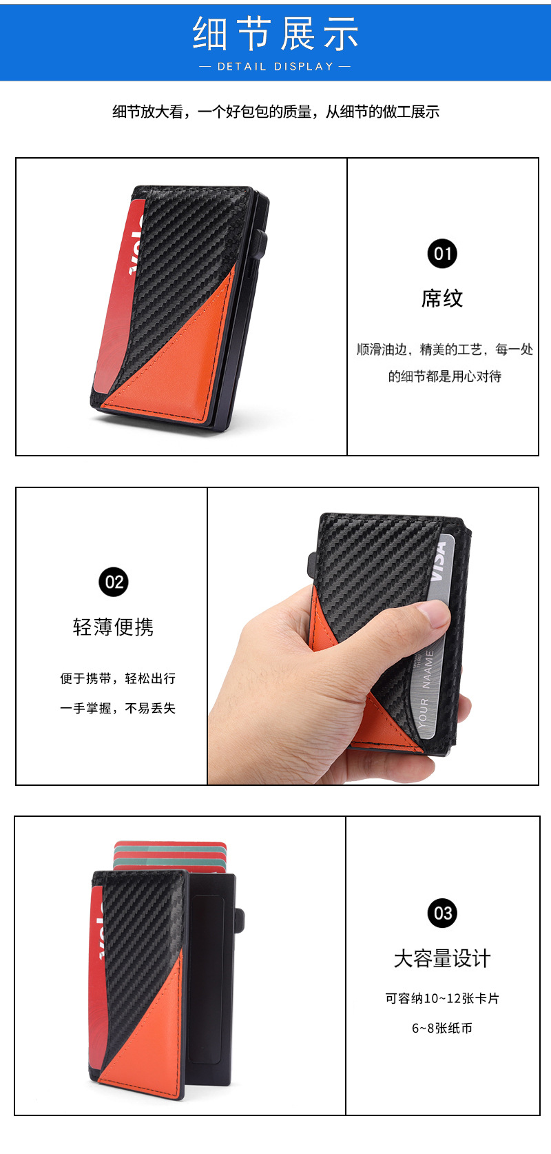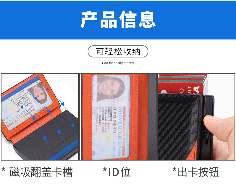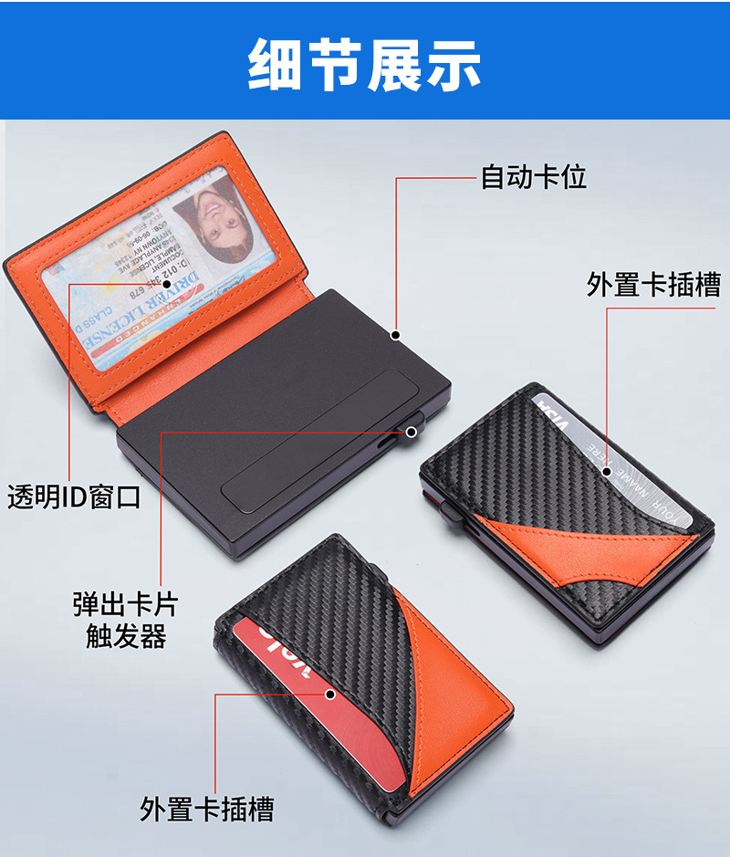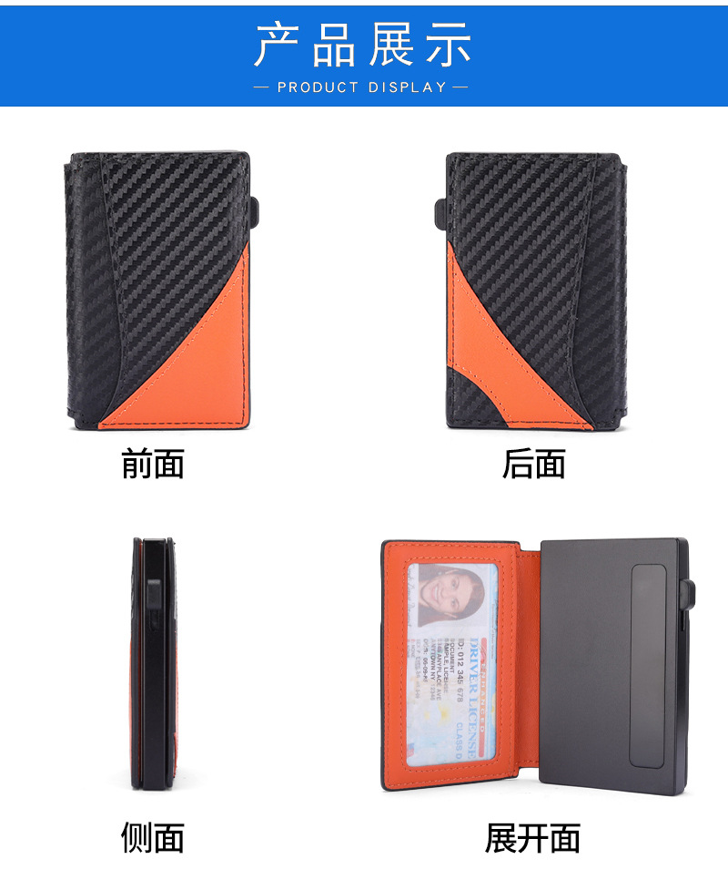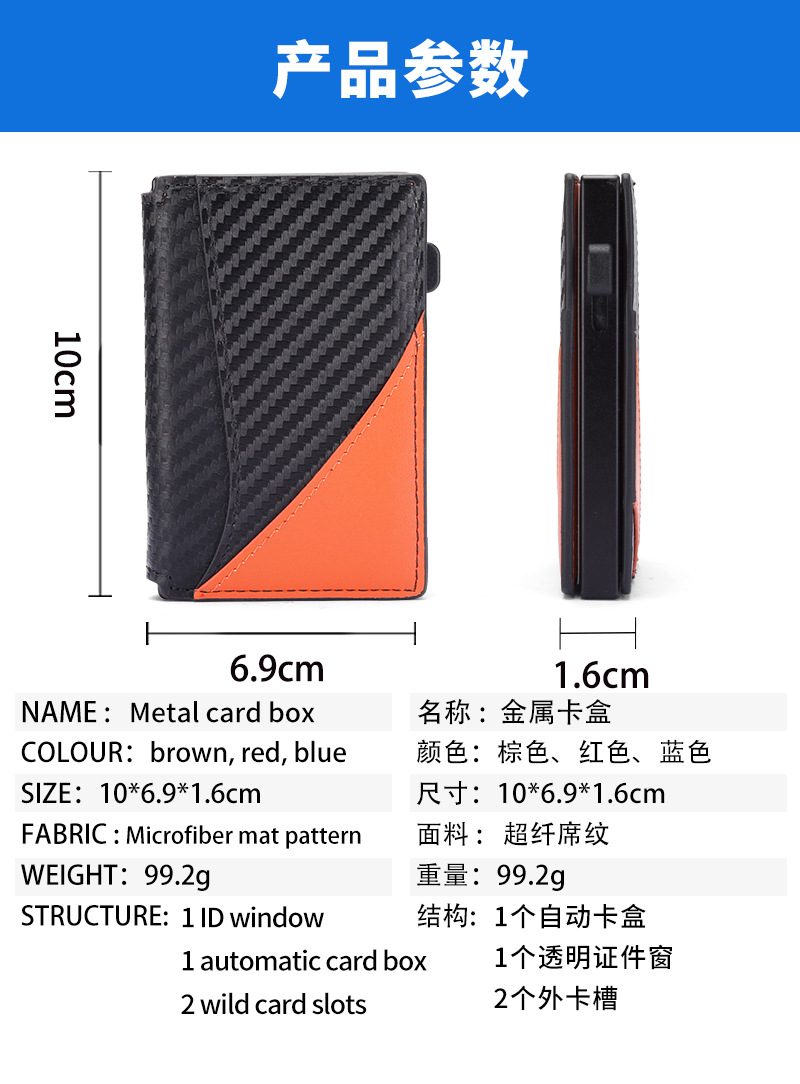 Amazon doble doble cubierta de cuero cartera de aleación de aluminio de aluminio antirrobo cepillo magnético bolsa de tarjetas de absorción multi-carjeta de almacenamiento cartera de hombre