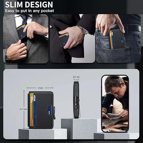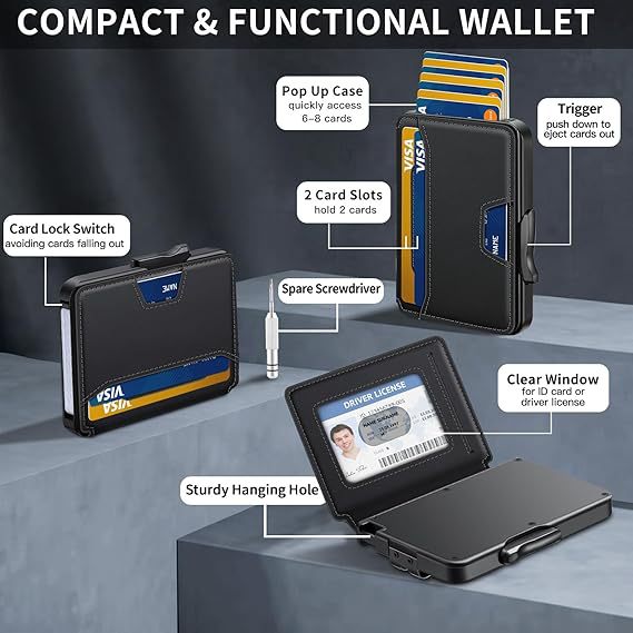 Amazon ultra delgado lado empuje bolsa de tarjetas de aleación de aluminio ultra delgada multifunción de gran capacidad cartera de cuero de negocios para hombres