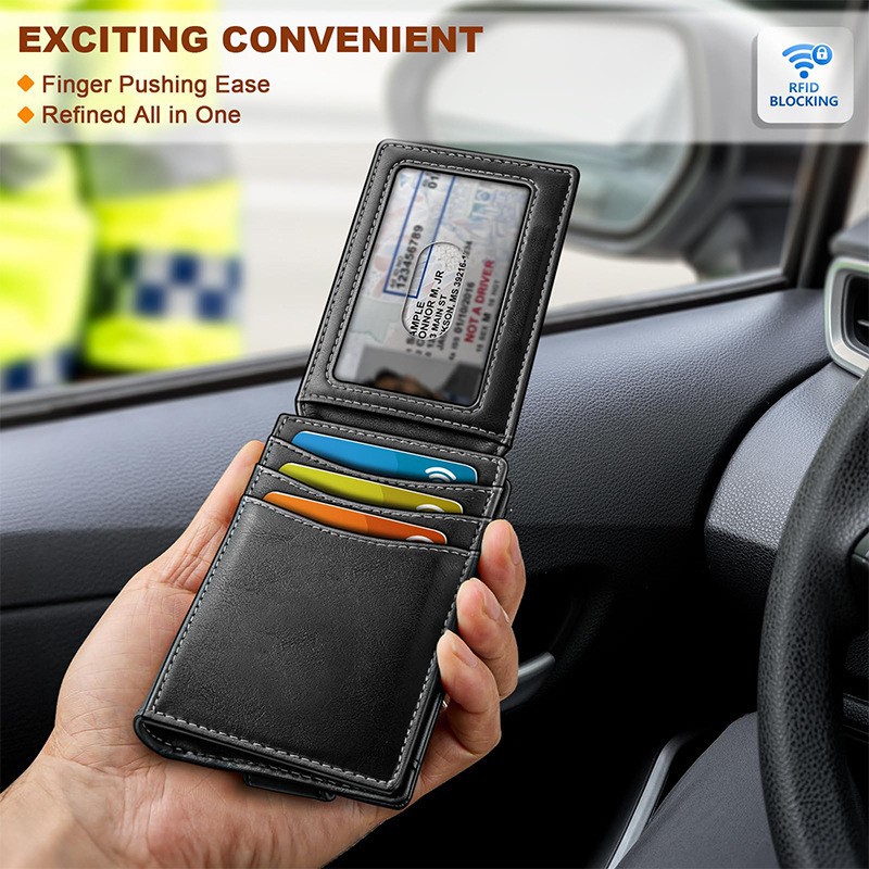 Transfronterizos tres plegables multi-tarjeta billetera de cuero RFID antirrobo con tarjeta de identificación billetera vertical de cuero para hombres