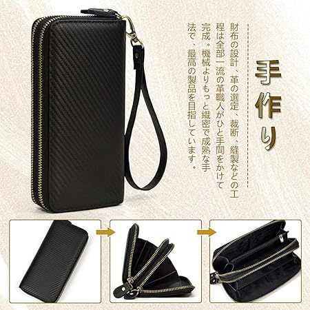 Amazon doble billetera de cremallera de cuero de vaca, bolso de mano de gran capacidad, bolso de mano de caballo loco para hombres