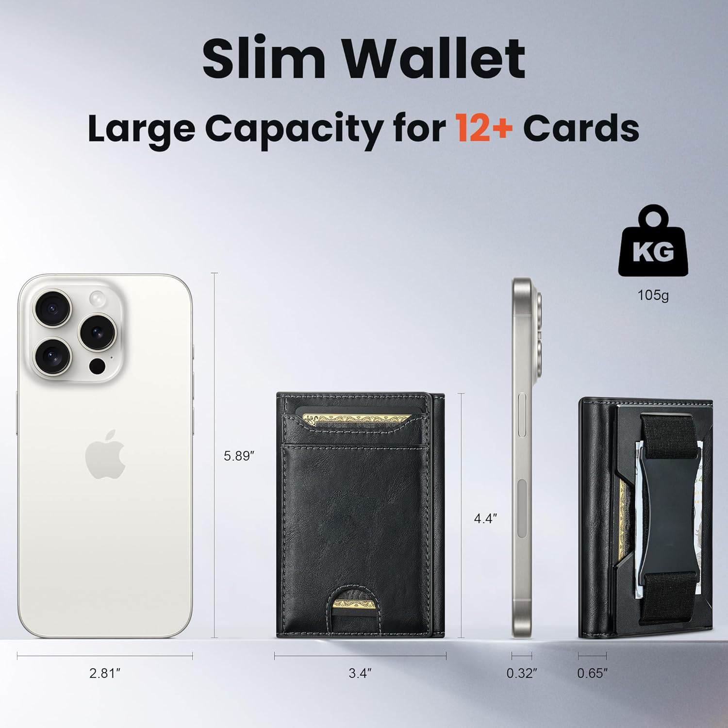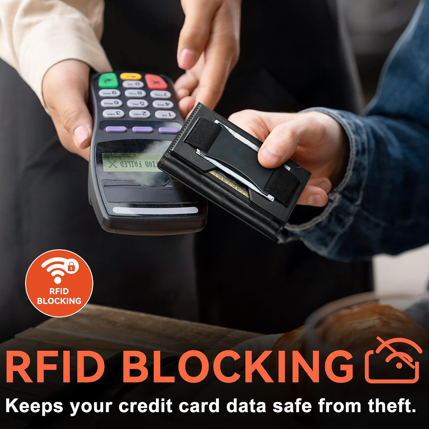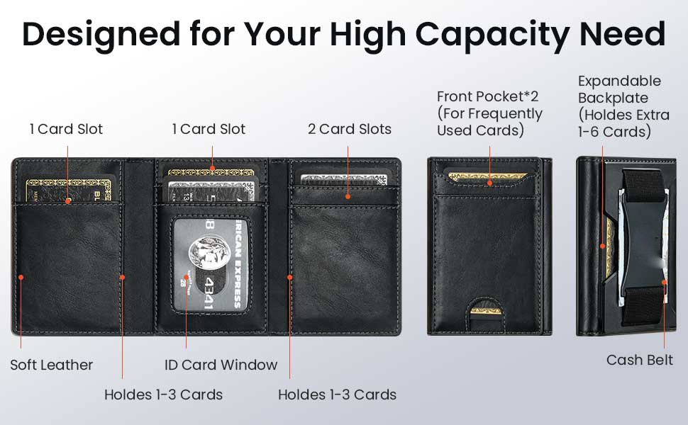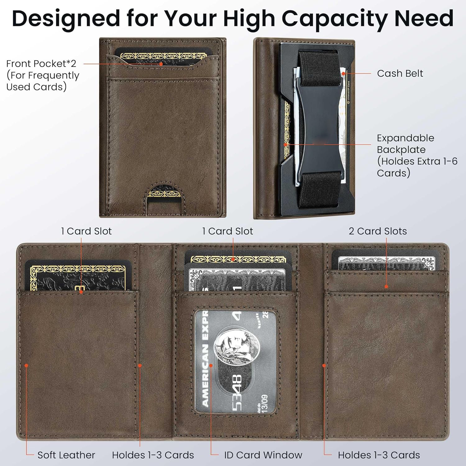 Amazon RFID anti-robo cartera multifuncional tres plegables billetera de negocios de gran capacidad con correa de cuero