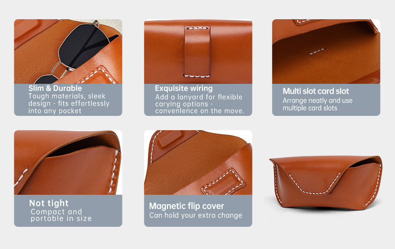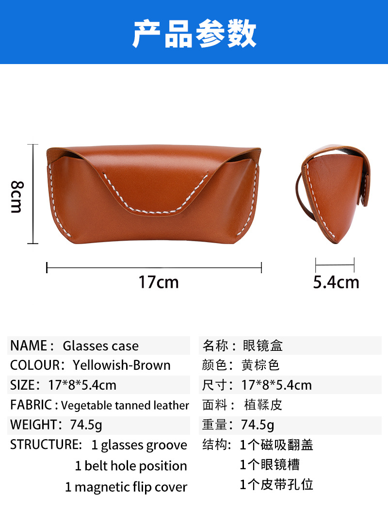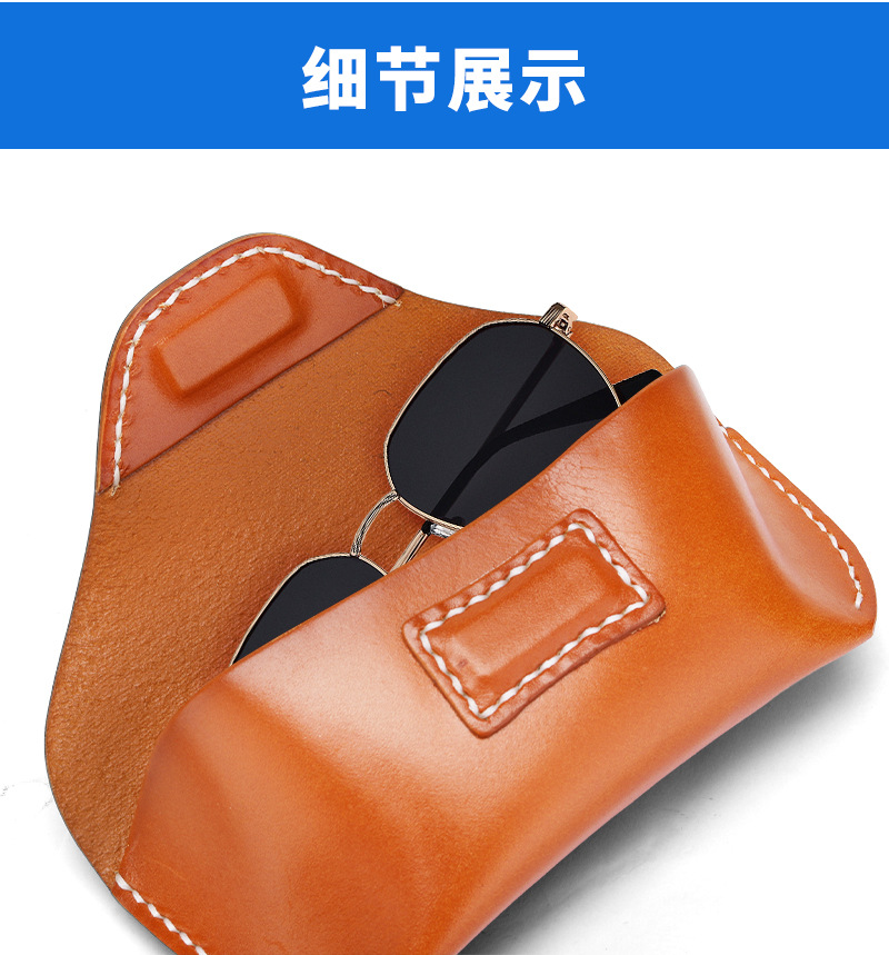 Amazon puro bronceado de mano cabeza caja de gafas de piel de vaca cintura bolsa de gafas retro bolsa de almacenamiento de gafas multifuncional