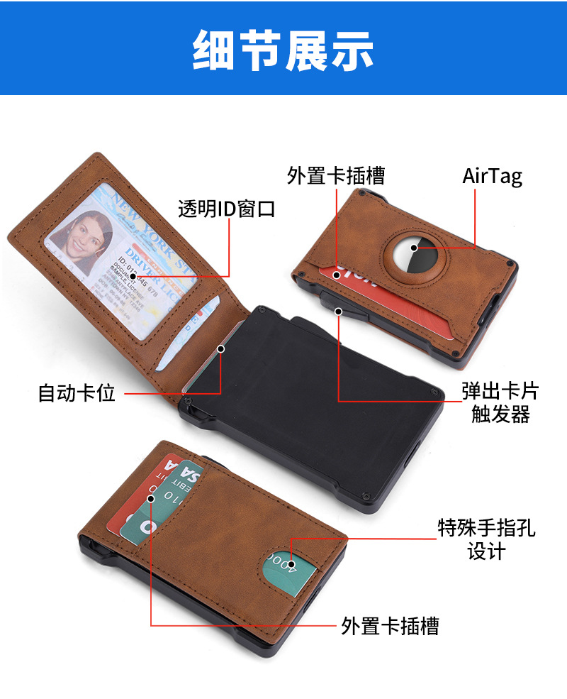 Cartera transfronteriza de múltiples tarjetas de comercio exterior Cepillo antirrobo para hombres Caja de tarjetas multifunción Cartera para hombres con solapa de fibra de carbono