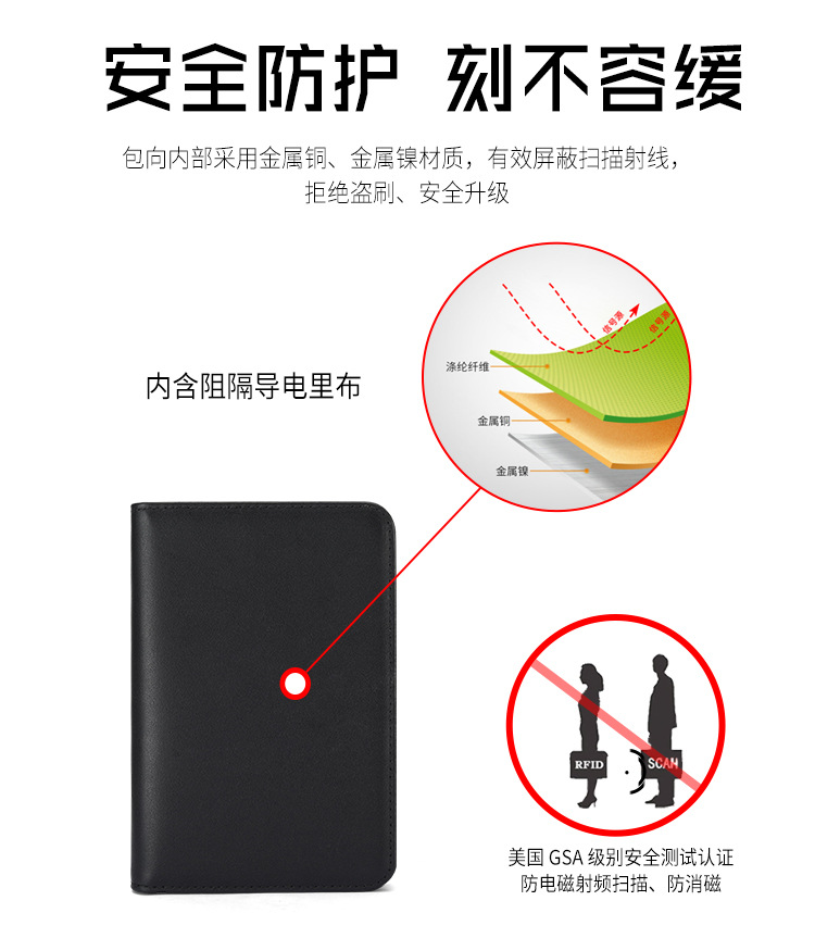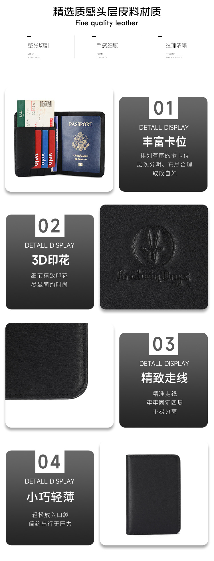 Paquete de almacenamiento de documentos de cepillo antirrobo transfronterizo personalizado Paquete de pasaporte de piel de vaca de primera capa Paquete de tarjeta de identificación de viaje al extranjero RFID