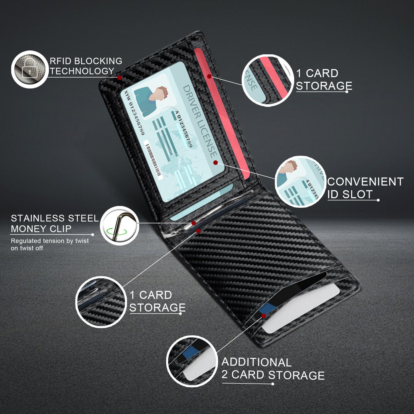 Amazon fibra de carbono ultra movimiento bolsa de tarjetas antirrobo cepillo de dólar ultra delgado multi-clip doble cartera de negocios para hombres