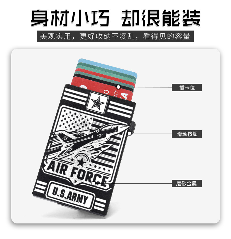 Personalizado logotipo grabado auto pop-up tarjeta de visita aluminio aluminio caja de tarjetas de crédito RFID anti-magnetizado bolsa de tarjetas metálicas