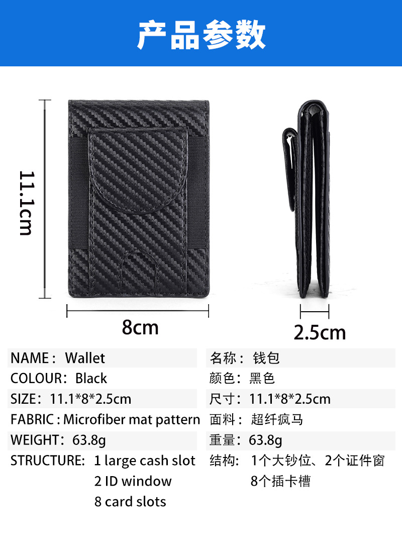 Cross-border popular Flip caja de tarjeta de metal cartera de los hombres de bienes genuinos al por mayor de múltiples funciones de la fibra de carbono Cartera de cuero billetera