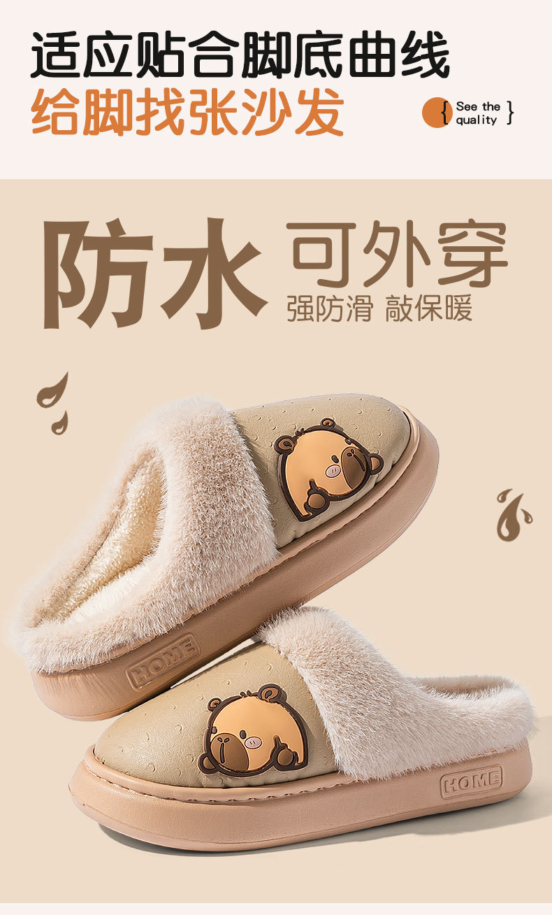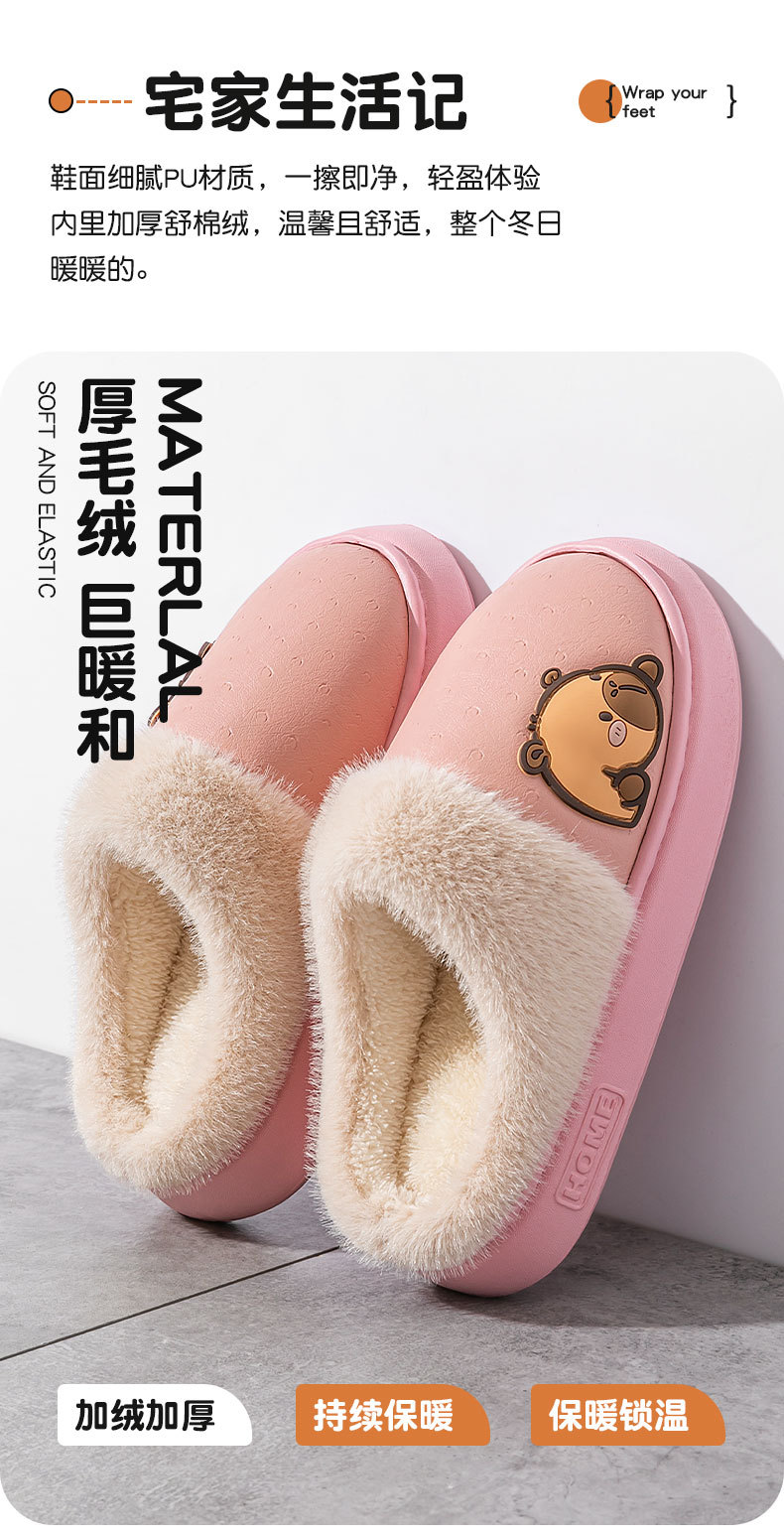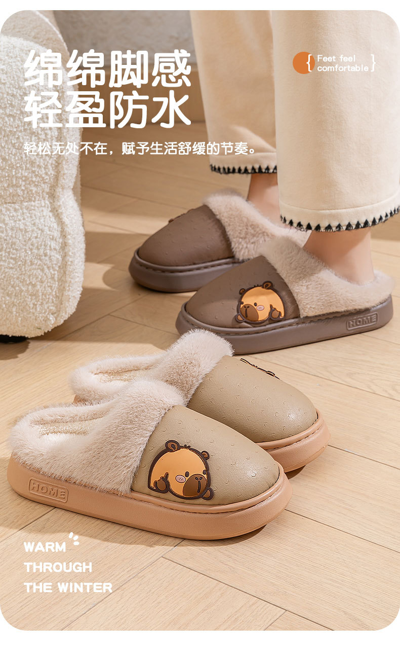 Zapatillas de algodón Capiballa damas 2025 nuevo estilo de casa interior otoño y invierno con peluche calentador de dibujos animados antideslizantes zapatillas de algodón