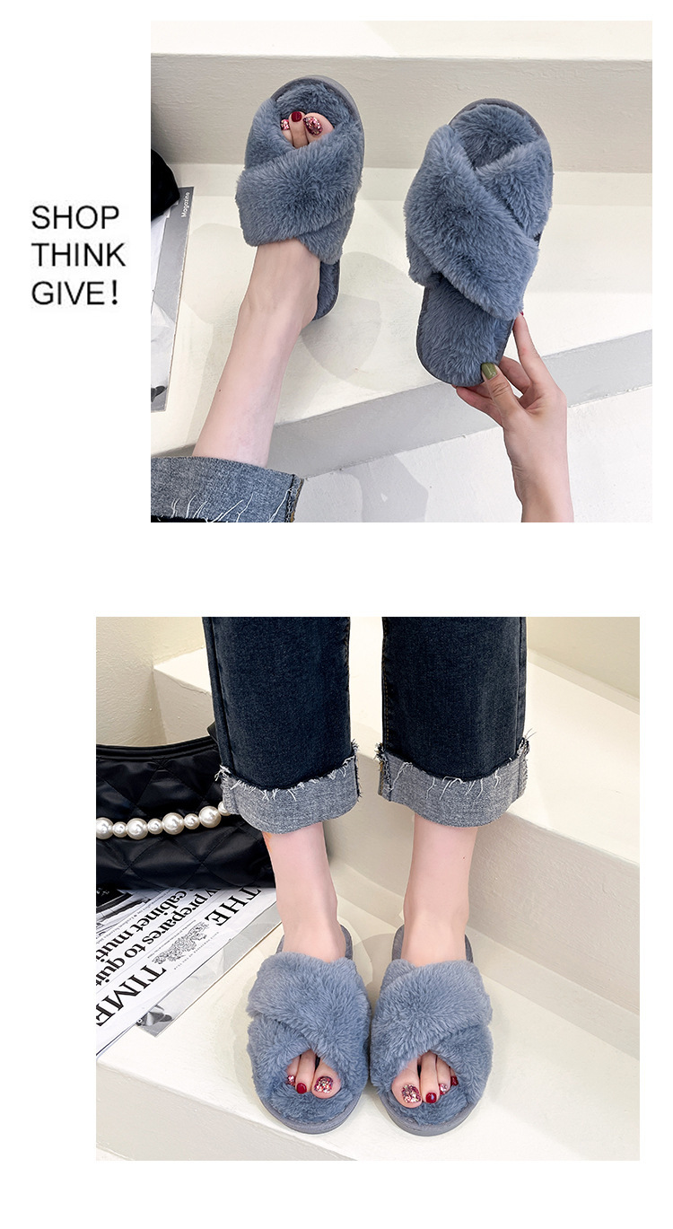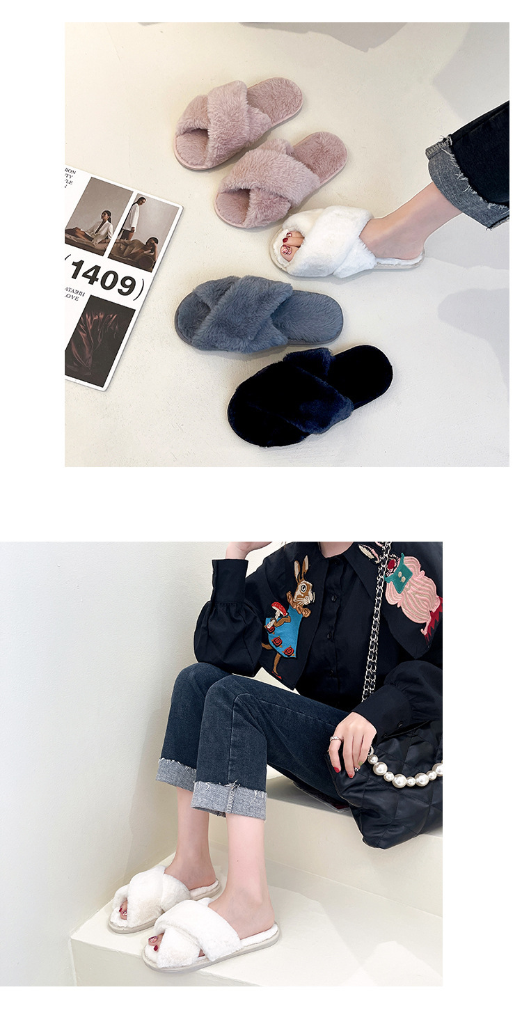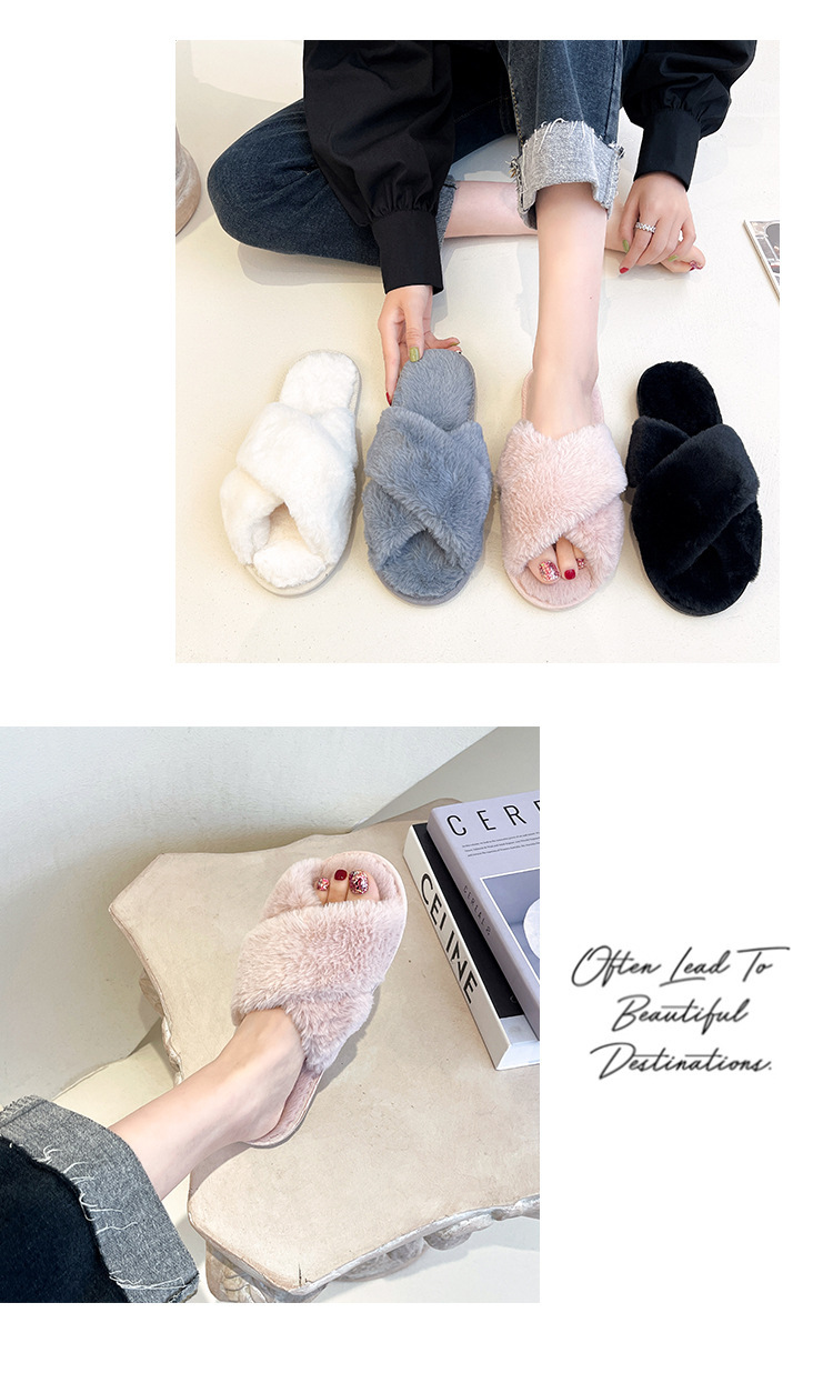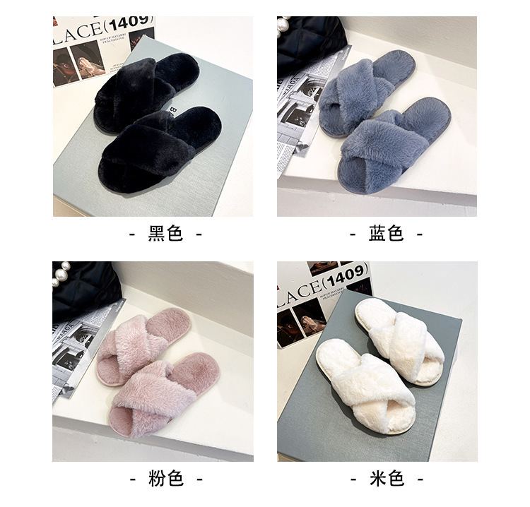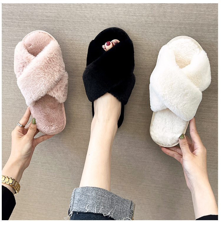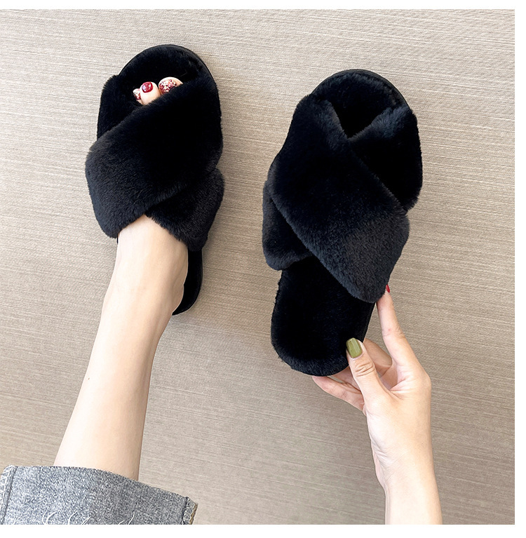 Pantuflas de lana cruzada de estilo explosivo transfronterizo para mujeres en otoño e invierno