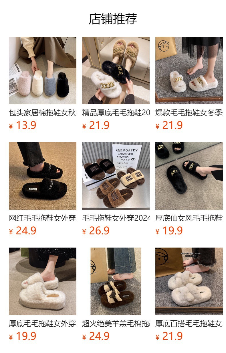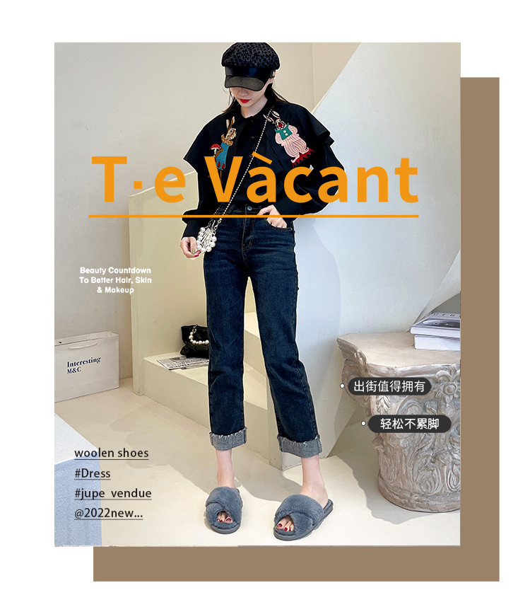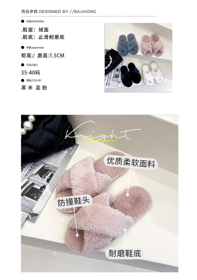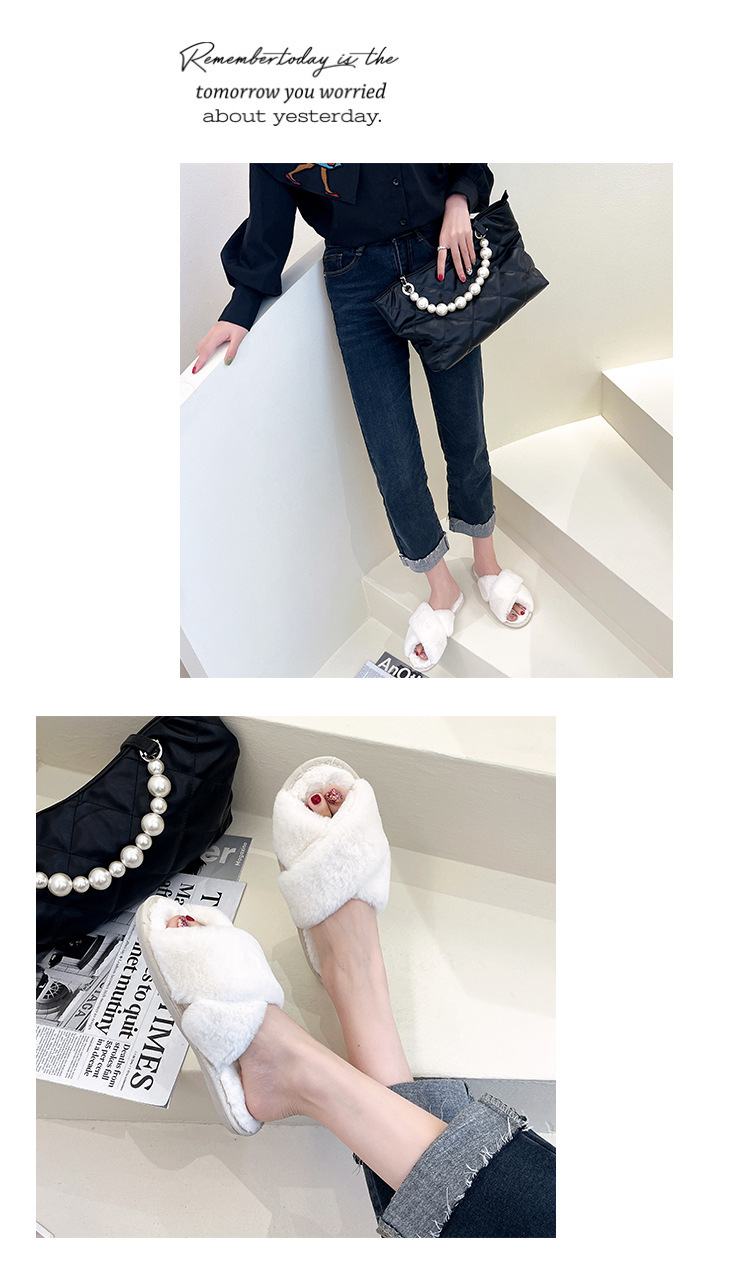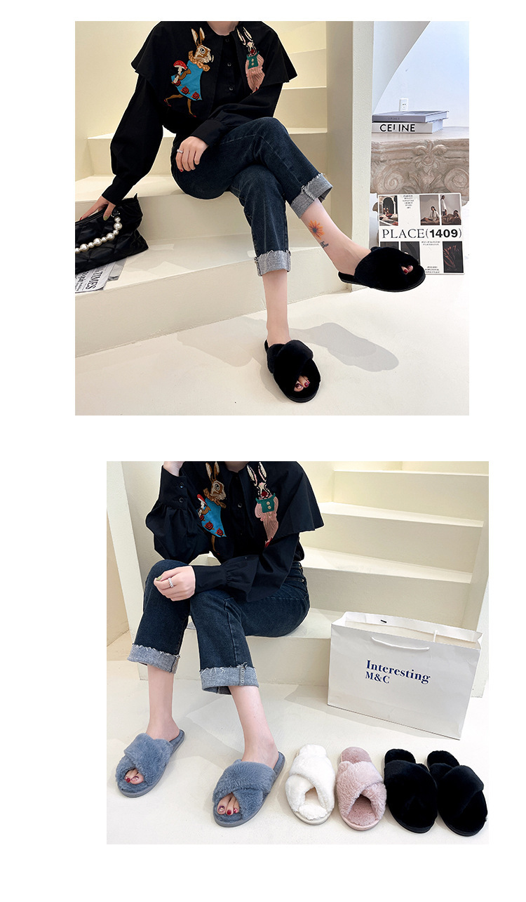 Pantuflas de lana cruzada de estilo explosivo transfronterizo para mujeres en otoño e invierno