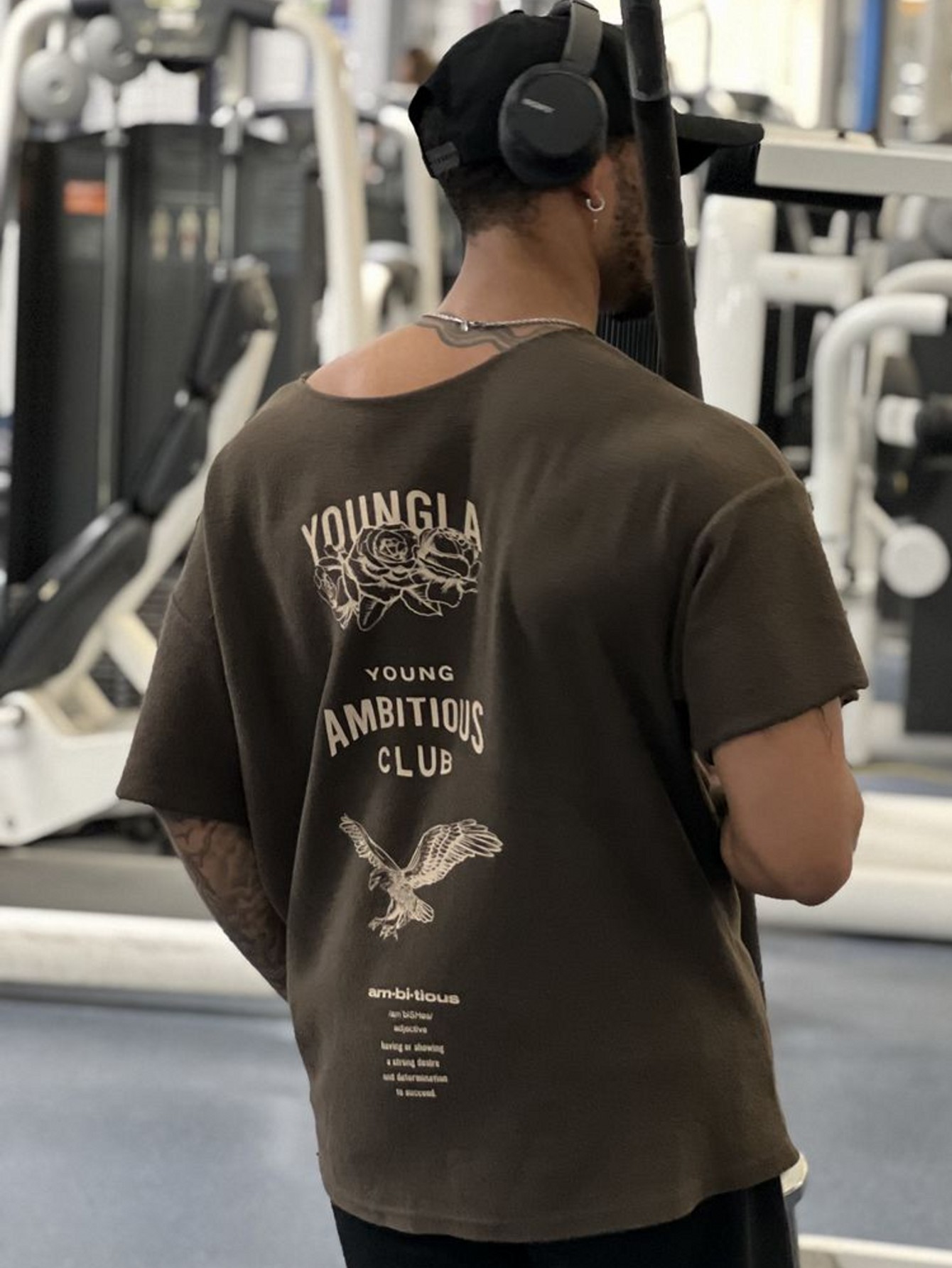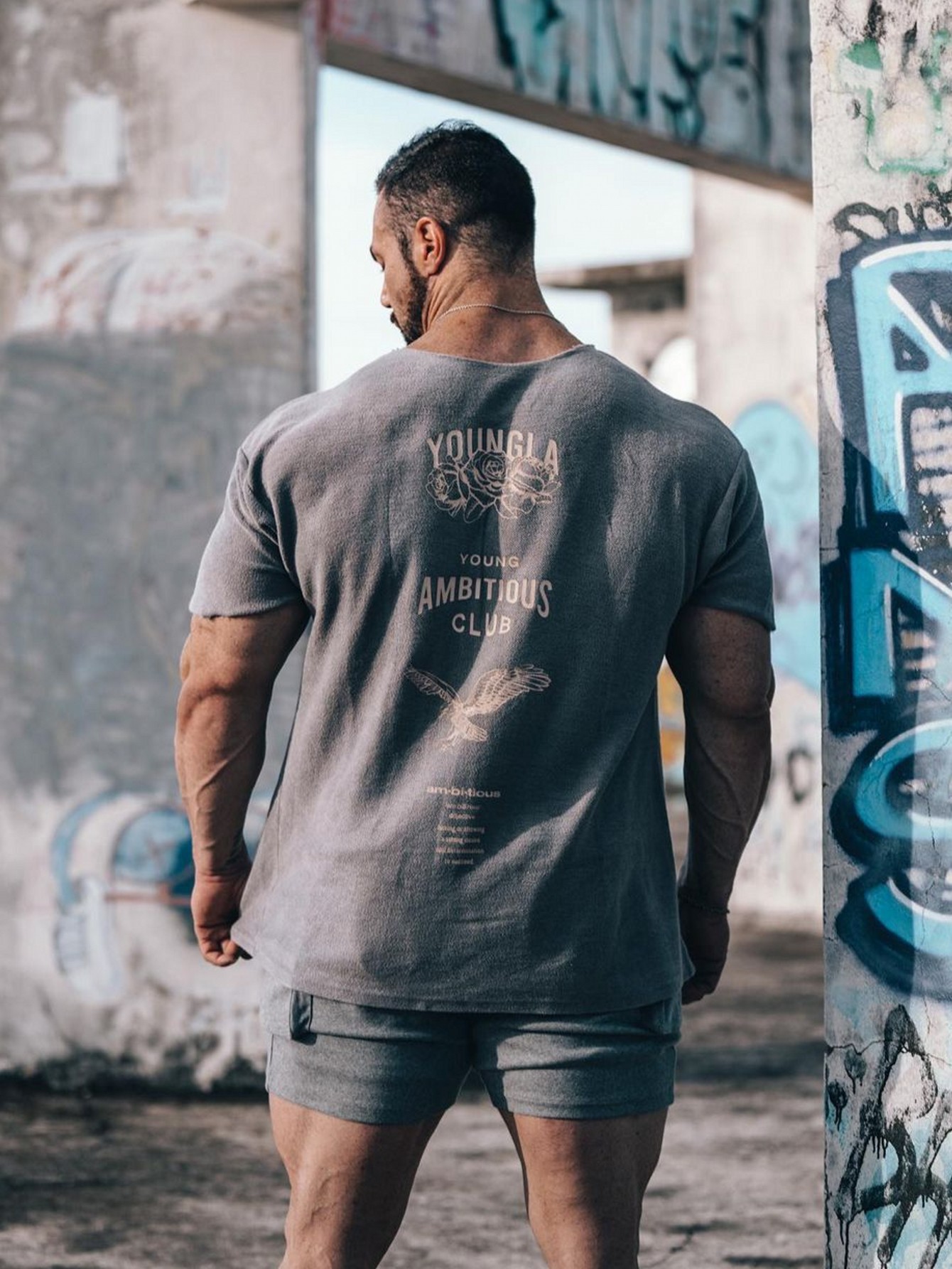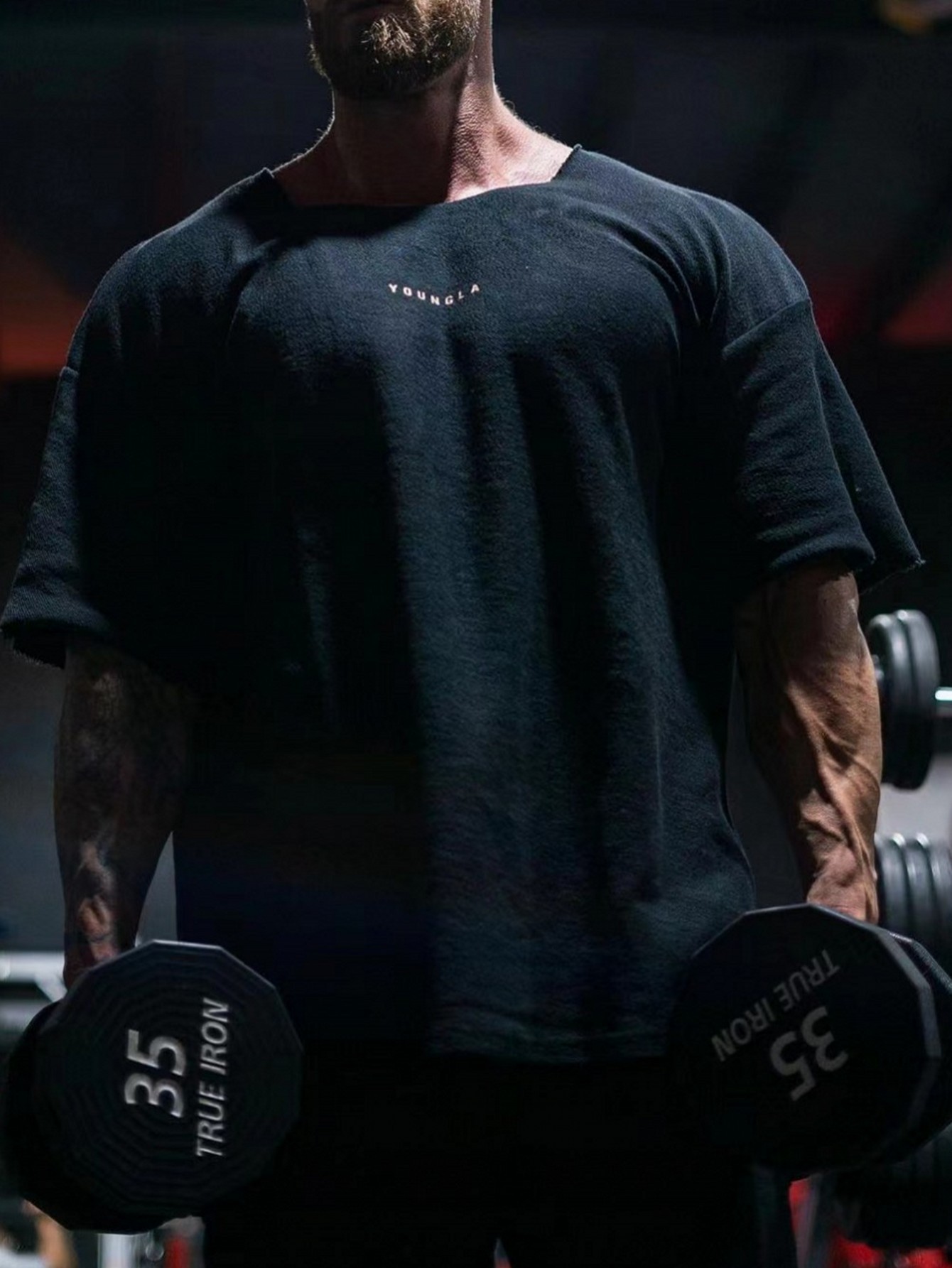 YOUNGLA Camiseta de gran tamaño para hombre, tela de felpa con estampado de felpa, deportes, fitness, moda de manga corta, ropa deportiva casual