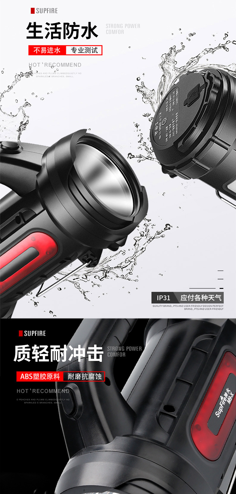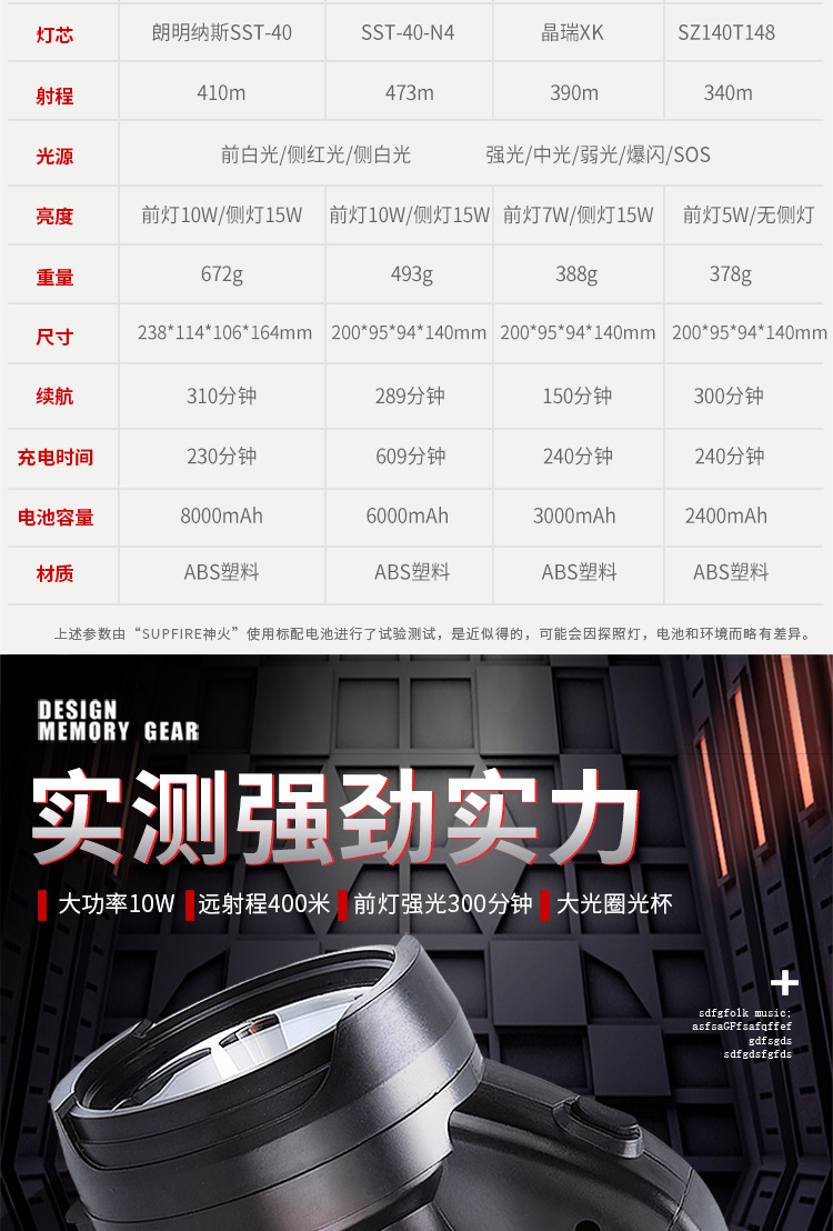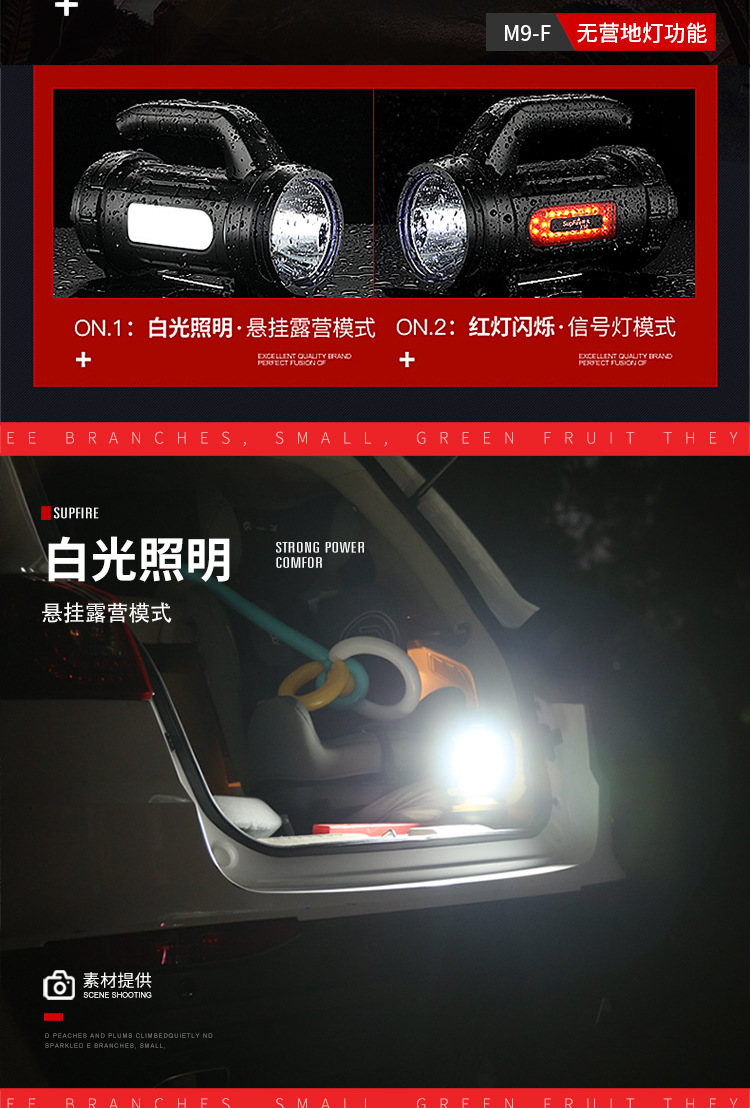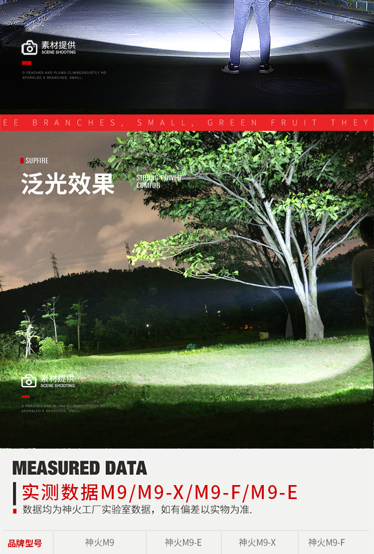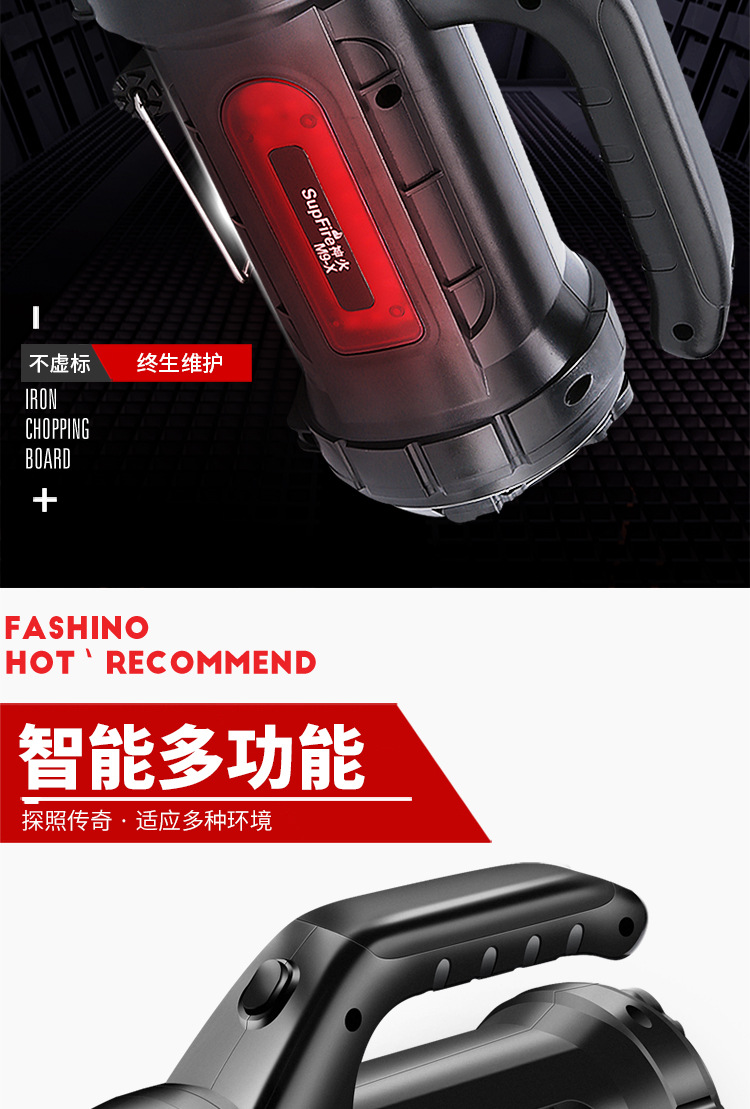 | Colores | M9-E negro (luz frontal 10W rojo y blanco doble lado)-6000mah,M15 (batería de litio de 5W 6000mah) 13 horas de duración de la batería,M15-X(3W 5.5 horas de duración de la batería),M17(5W 2400 mAh) 5 horas de duración de la batería,M9-F(5W 2400 mA) sin luz lateral |