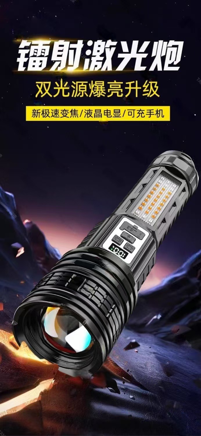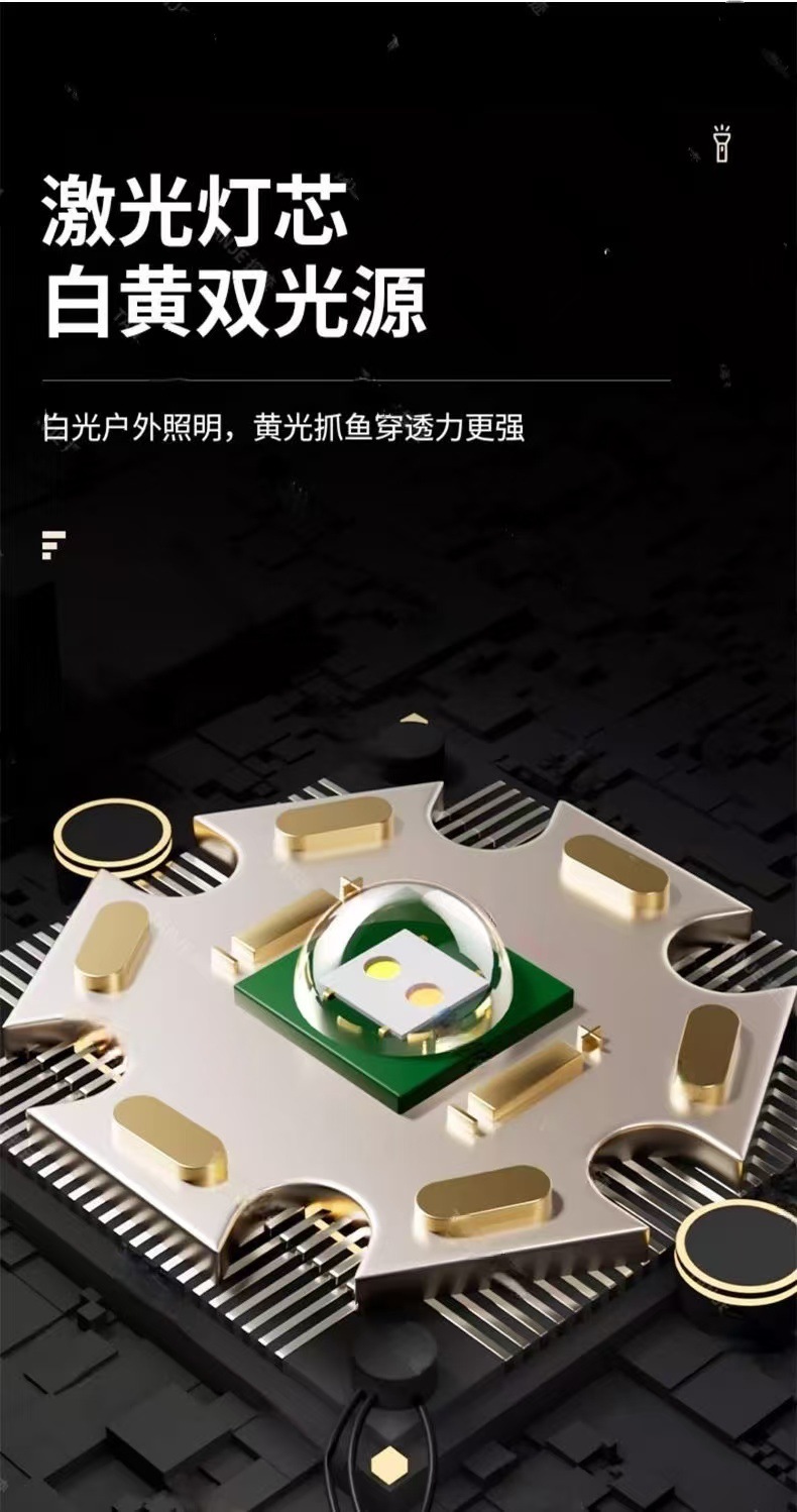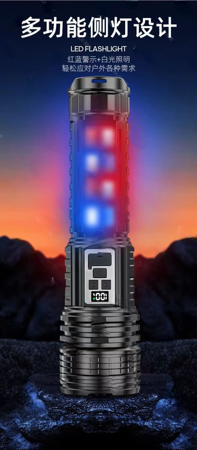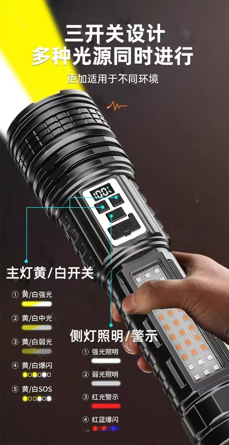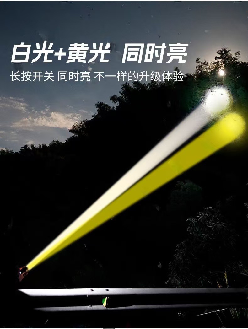 Nueva luz fuerte amarillo y blanco doble fuente de luz ultra brillante linterna táctica de tiro remoto a través de la luz lateral del cañón celeste luz de advertencia roja y azul de emergencia