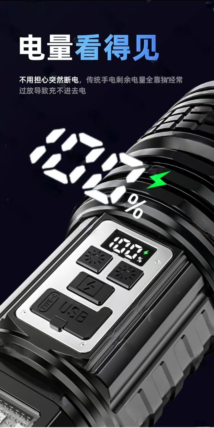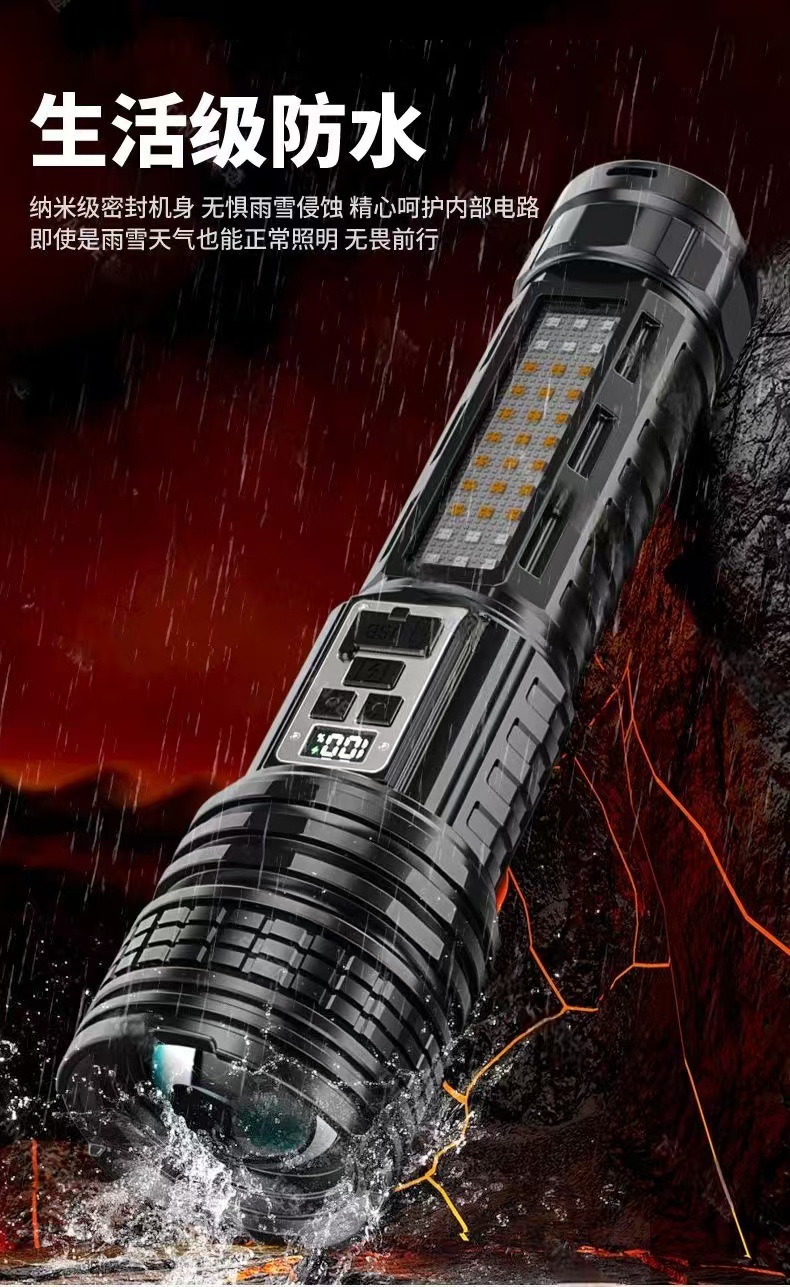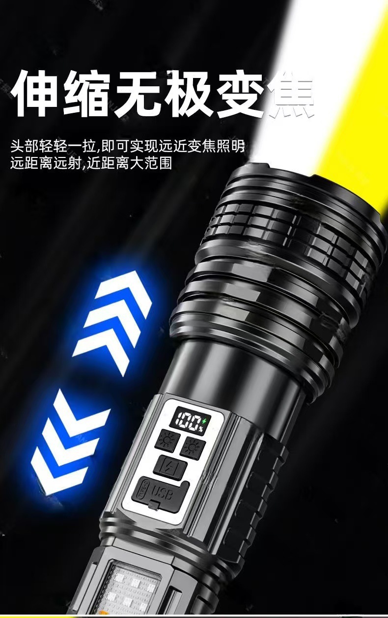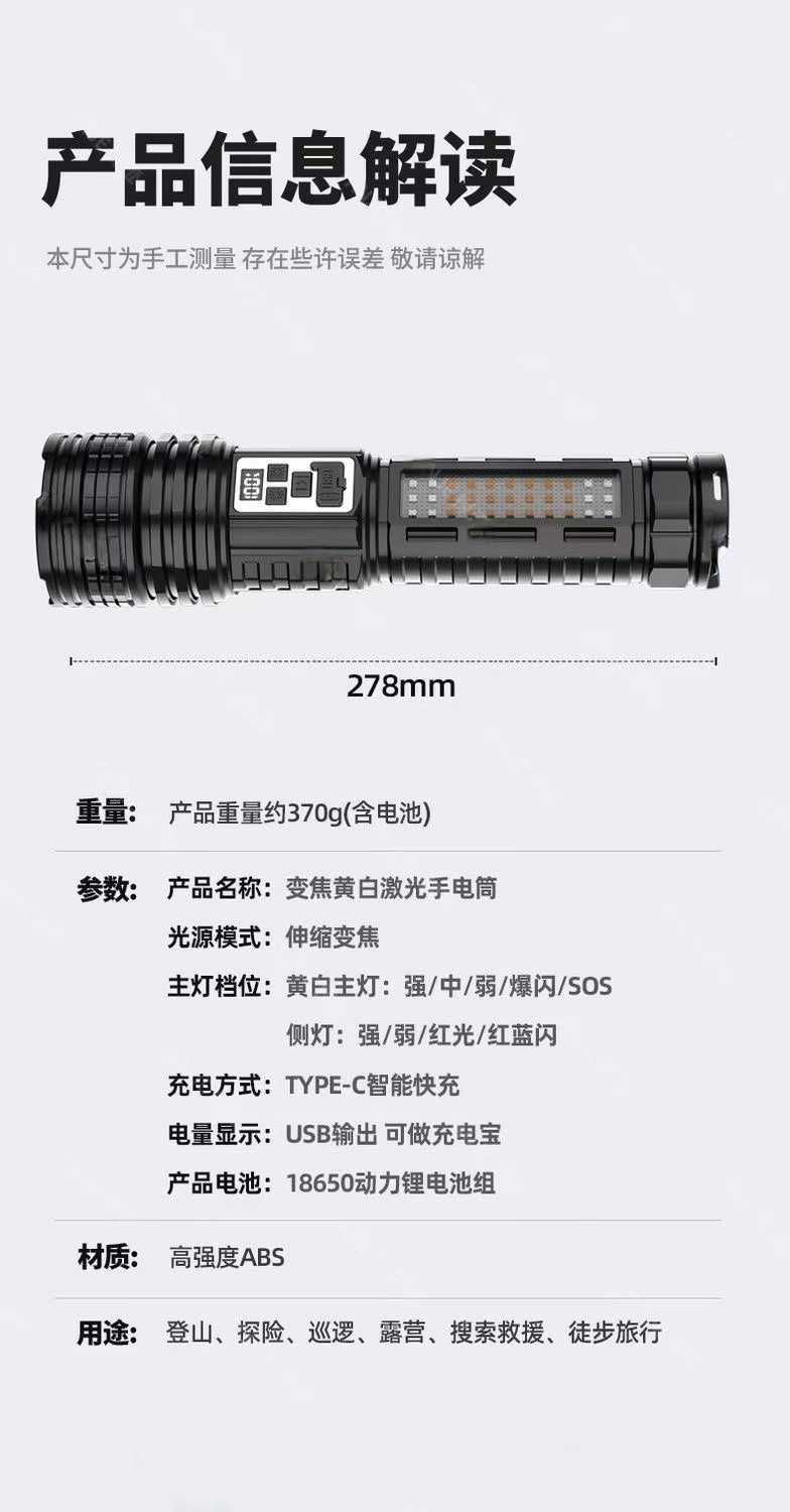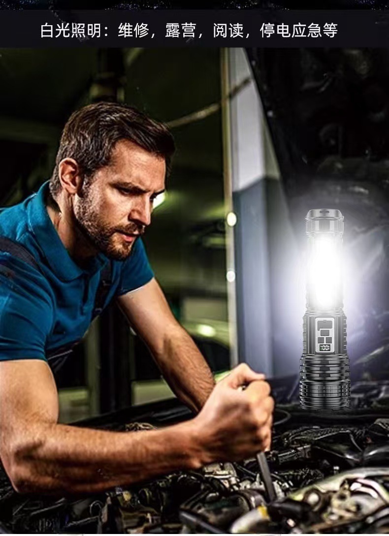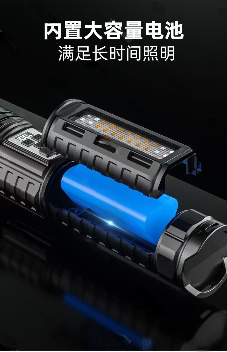 Nueva luz fuerte amarillo y blanco doble fuente de luz ultra brillante linterna táctica de tiro remoto a través de la luz lateral del cañón celeste luz de advertencia roja y azul de emergencia