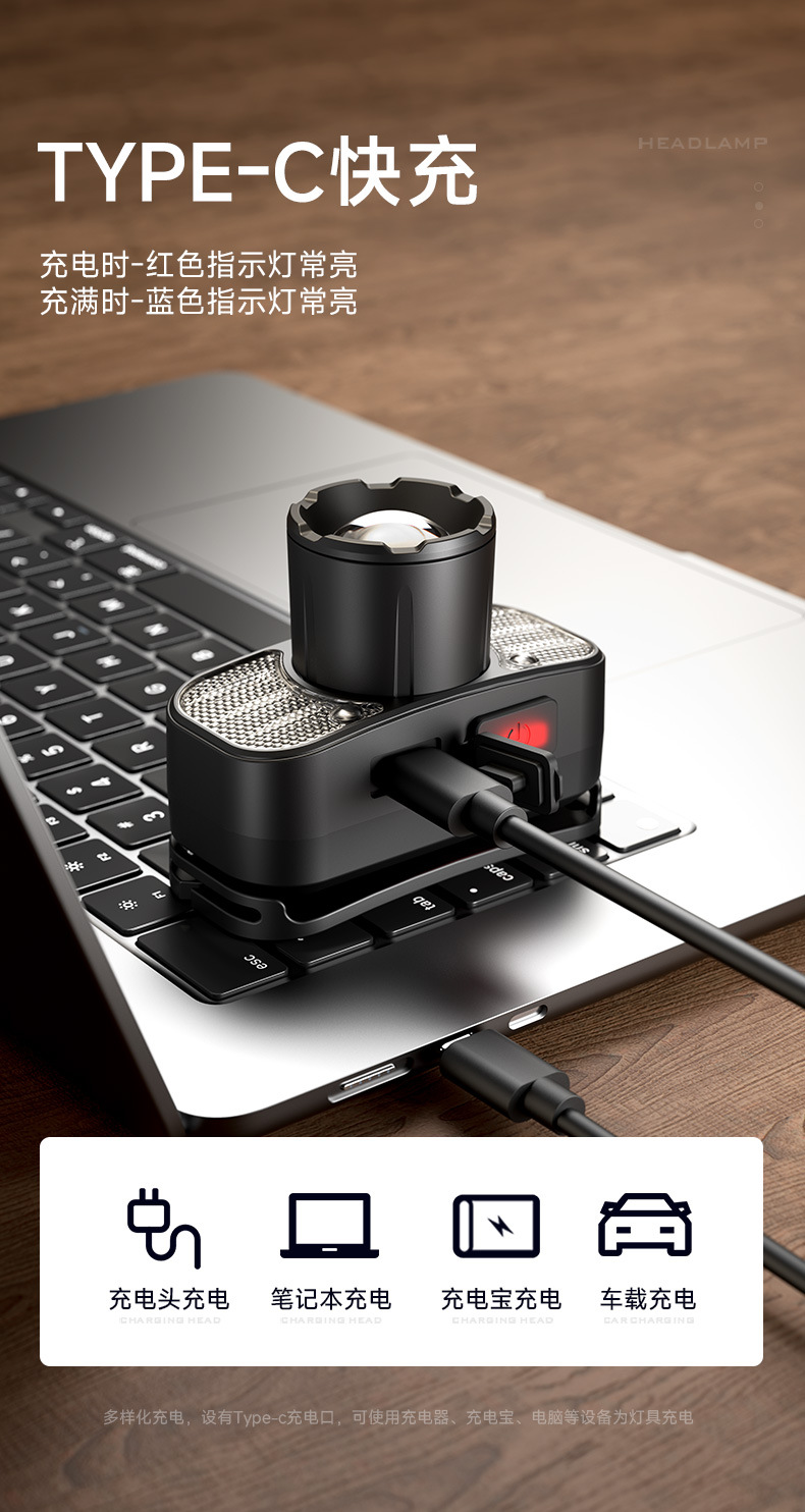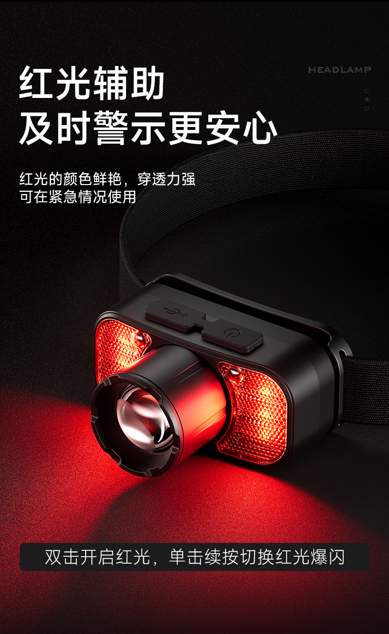 Shenfuo zoom al aire libre faro de emisión remota carga de luz alta roja rotación alarma zoom led lámpara de mina impermeable