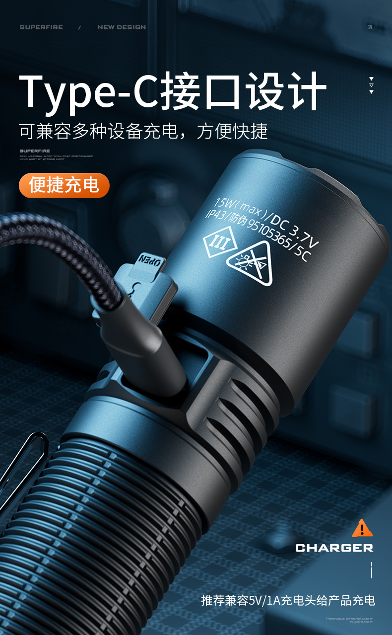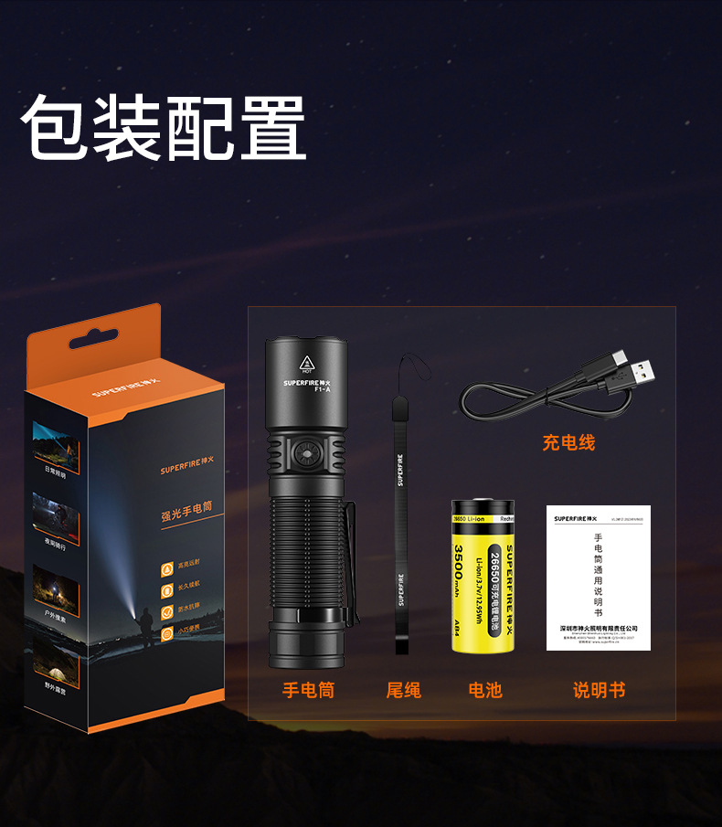 Shenhua F1 - A linterna de luz intensa recargable doméstica super brillante mini mini portátil EDC linterna de emergencia