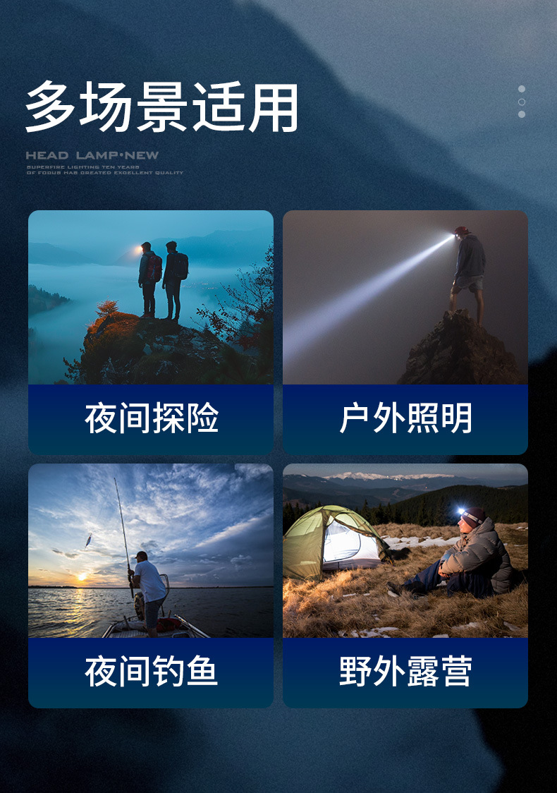 Shenfuo al aire libre portátil de largo alcance luz inteligente inducción LED casco cargar faro al por mayor