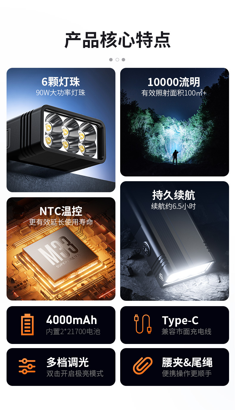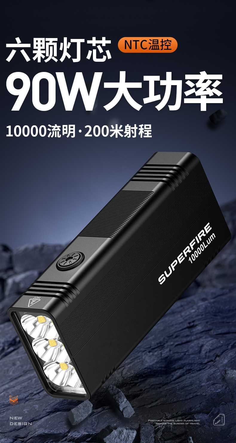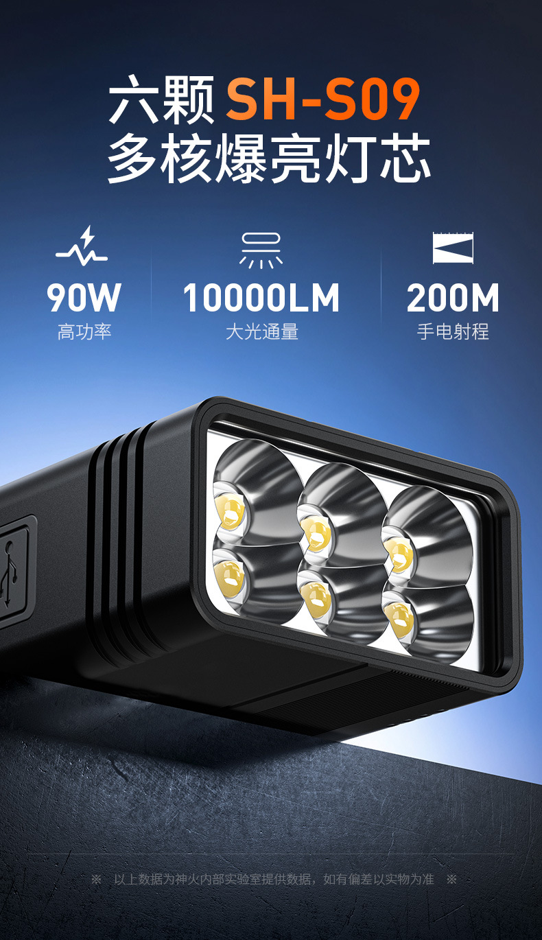 Shenhuo M33 Linterna de alto lumen Carga de emergencia al aire libre Linterna portátil multifuncional de seis núcleos de alta potencia