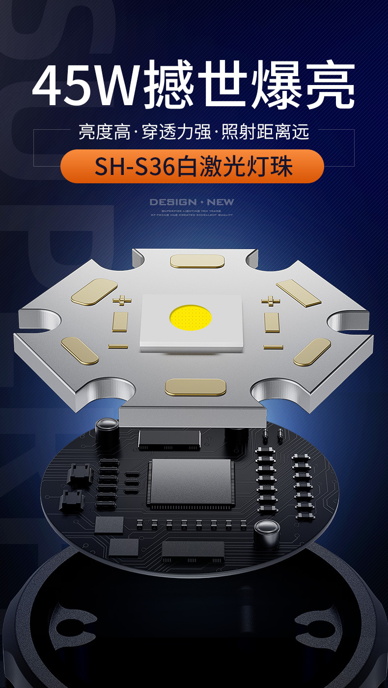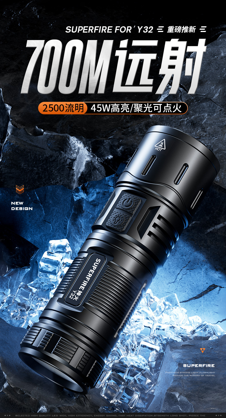 Personalizado Shenhuo 2500 lúmenes linterna de luz fuerte multifunción recargable led de largo alcance 750 m linterna impermeable al aire libre