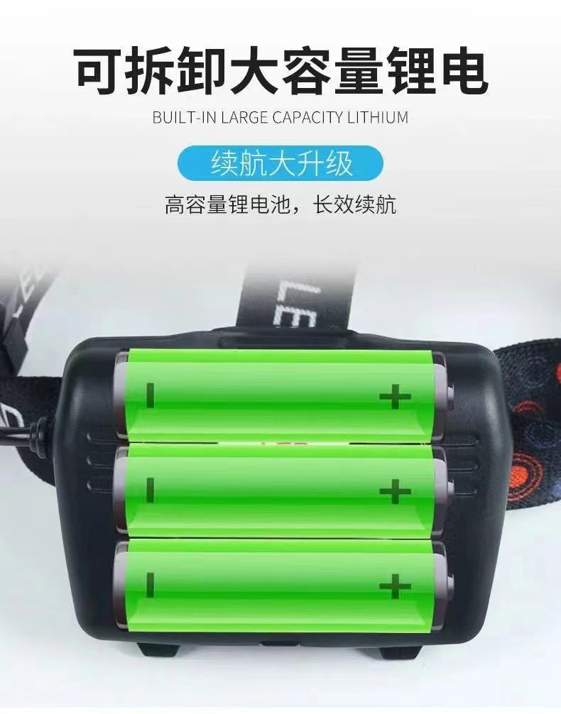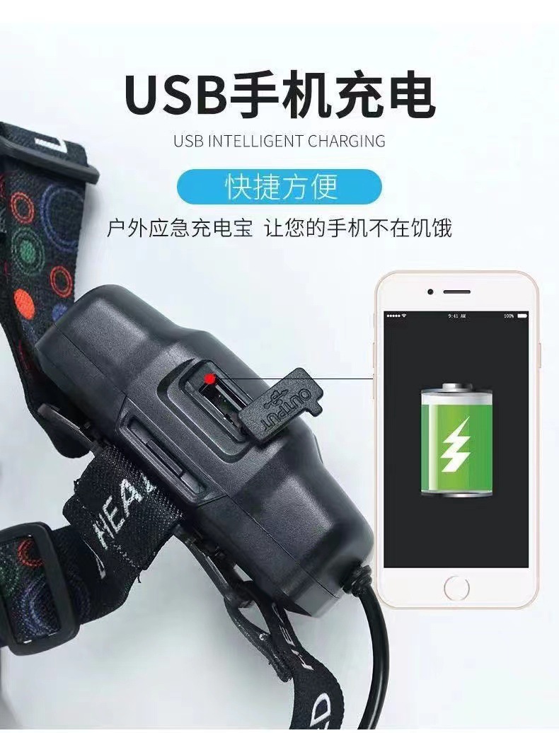 Luz de detección al aire libre luz blanca luz amarilla LED pescar luz de noche luz fuerte USB luz de cabeza eléctrica pescar luz de alta potencia carga