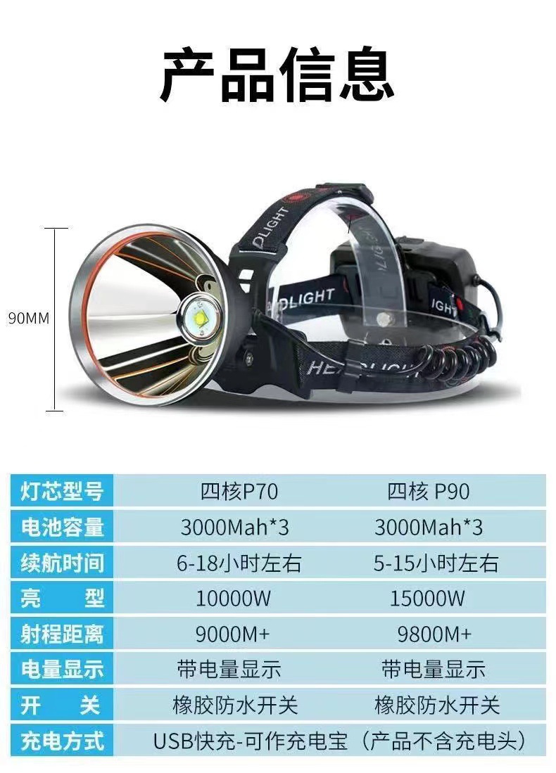 P90 Mecha de luz del faro [luz amarilla] + 3 baterías 18650