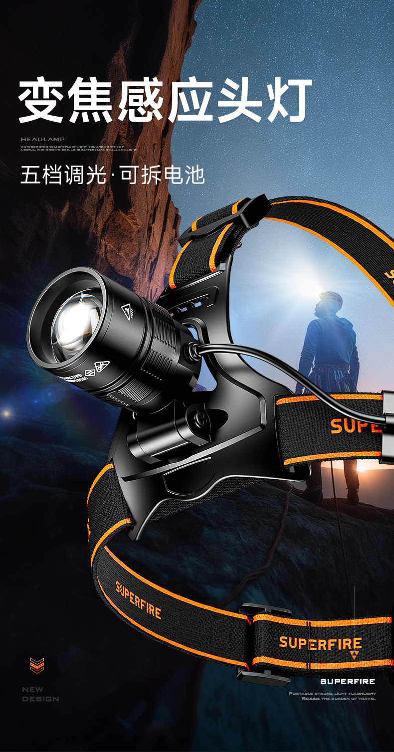 Shenhua al aire libre zoom aleación de aluminio farol multifuncional carga inducción muestrada en la cabeza luz de pesca nocturna farol de carrera nocturna