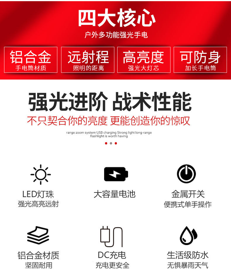 Lámpara de linterna especial de alta intensidad de armas de fuego ultra brillante recargable multifuncional de patrulla doméstica exterior antiexplosión lámpara duradera