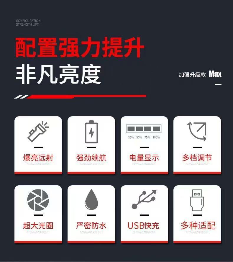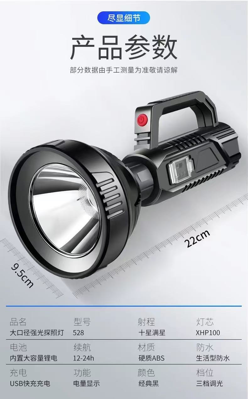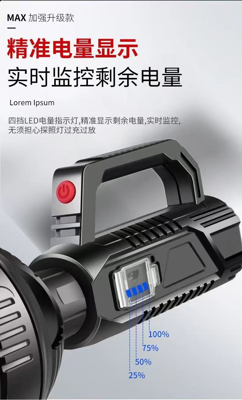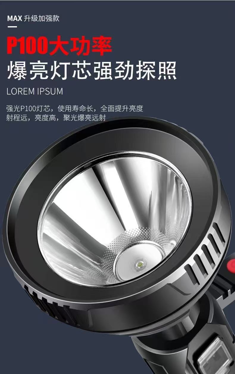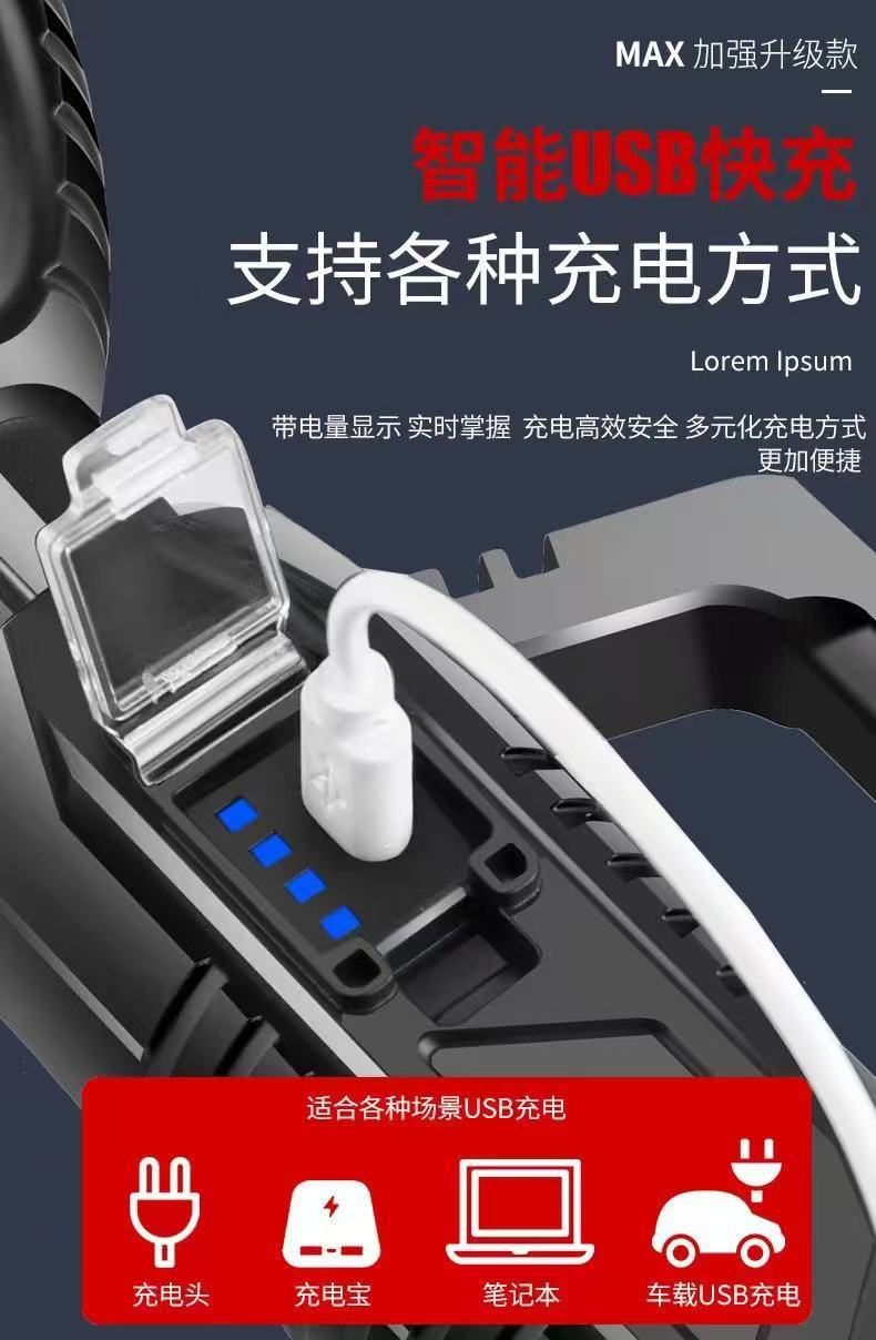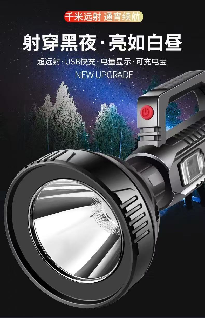 Linterna portátil de luz fuerte transfronteriza USB al aire libre recargable reflector de largo alcance ultrabrillante LED luz portátil multifuncional