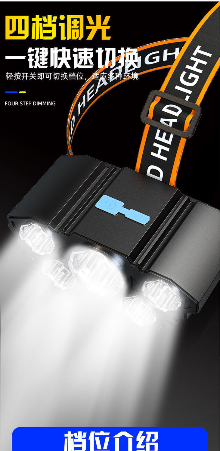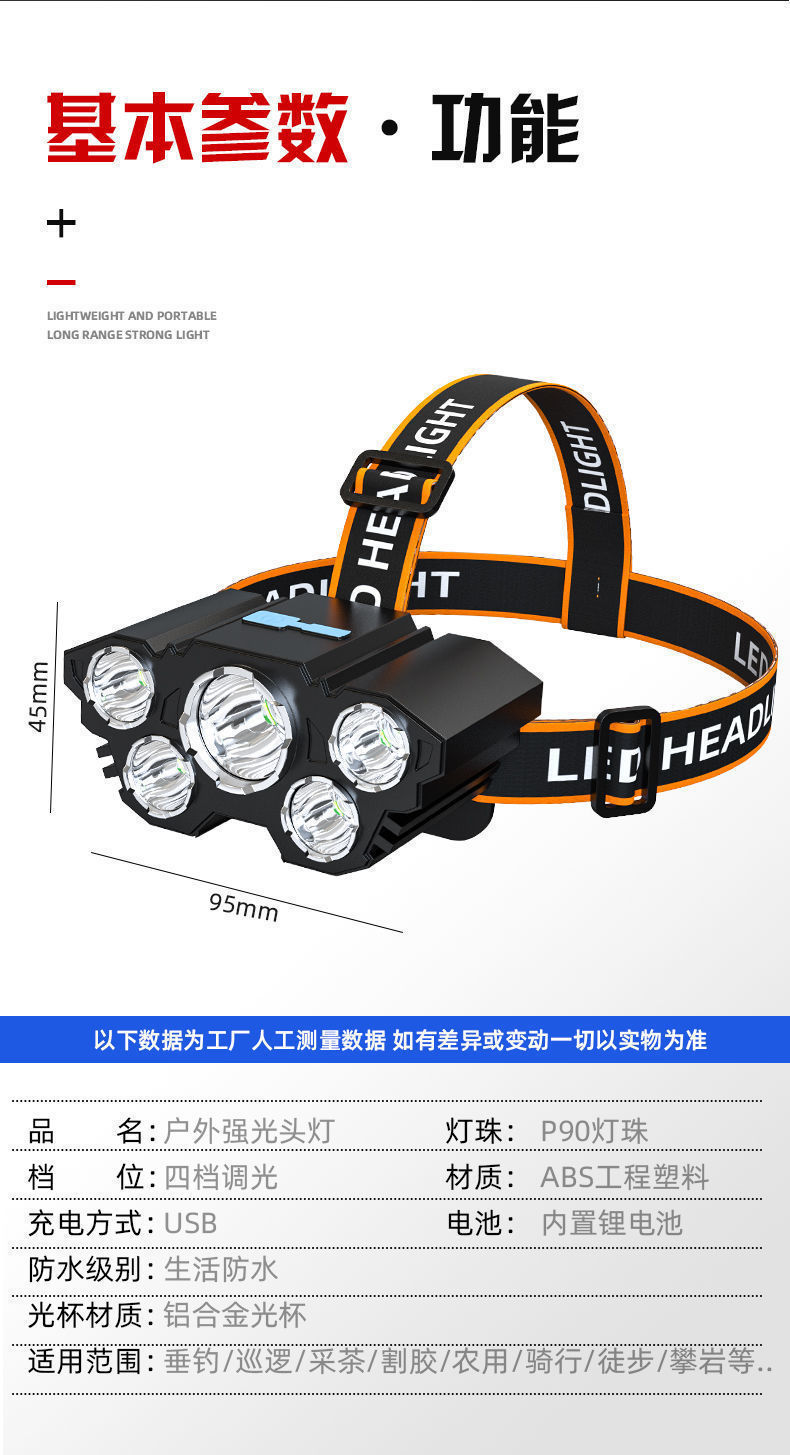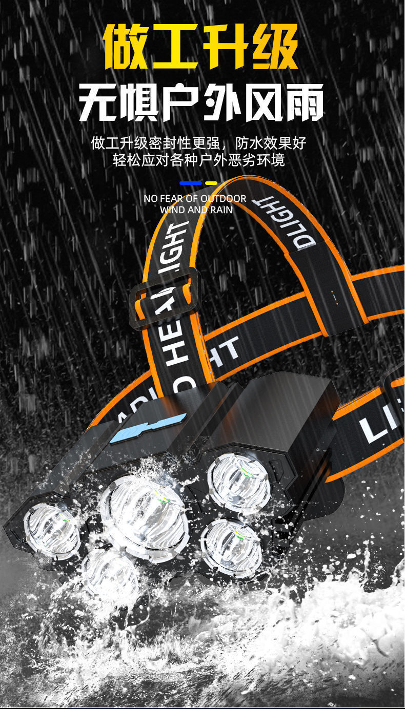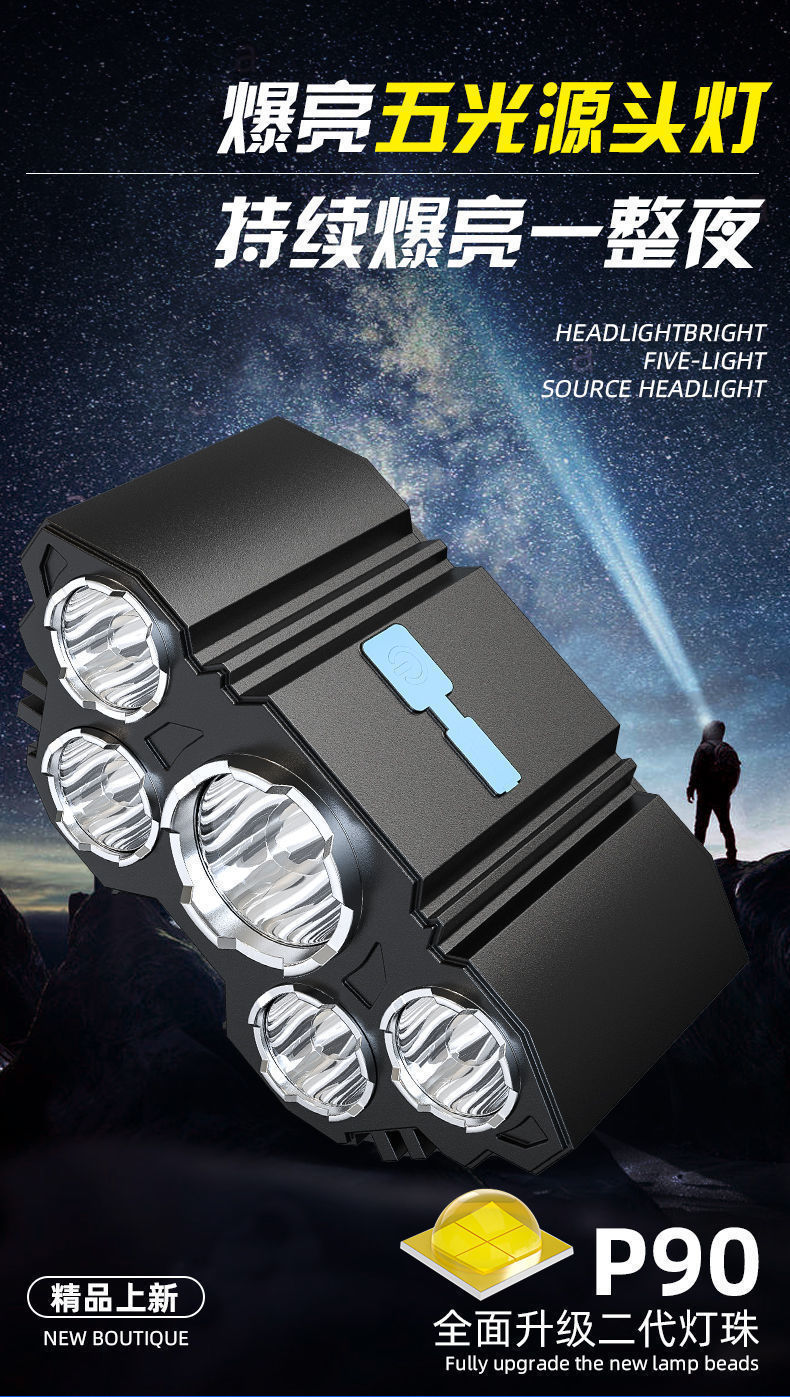 Hot sale 5LED luz de cabeza recargable lámpara de cabeza super brillante lámpara de iluminación portátil al aire libre luz de cabeza de pesca impermeable