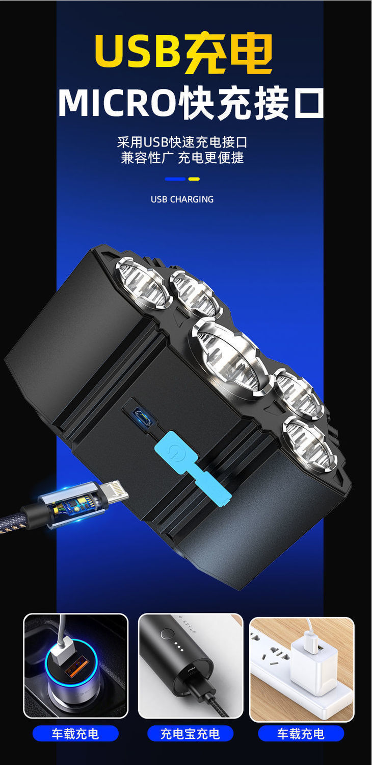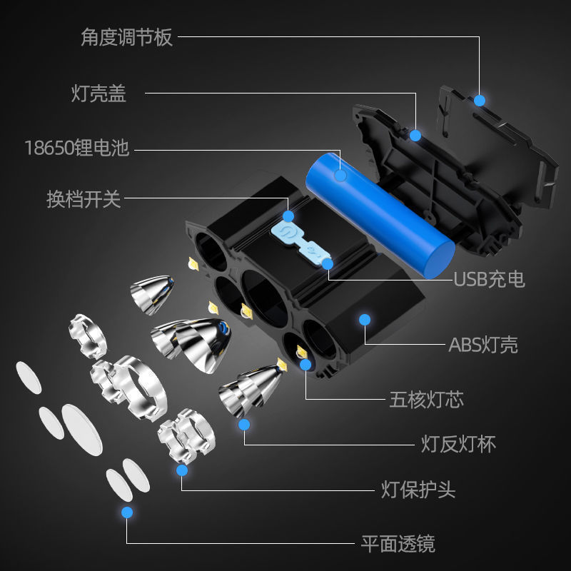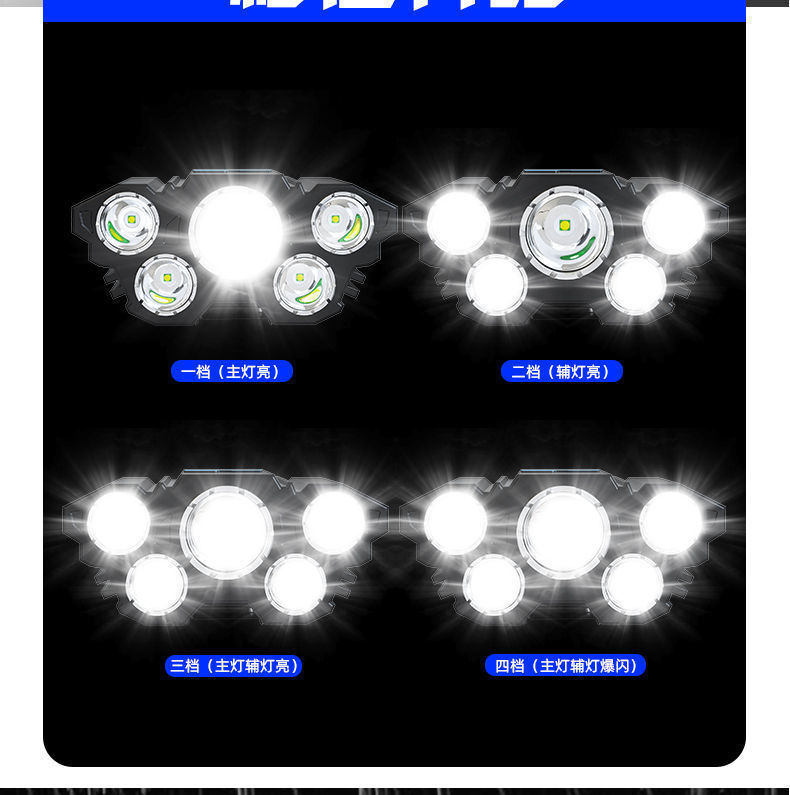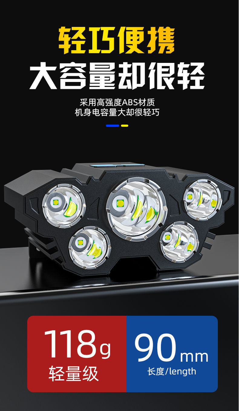 Hot sale 5LED luz de cabeza recargable lámpara de cabeza super brillante lámpara de iluminación portátil al aire libre luz de cabeza de pesca impermeable