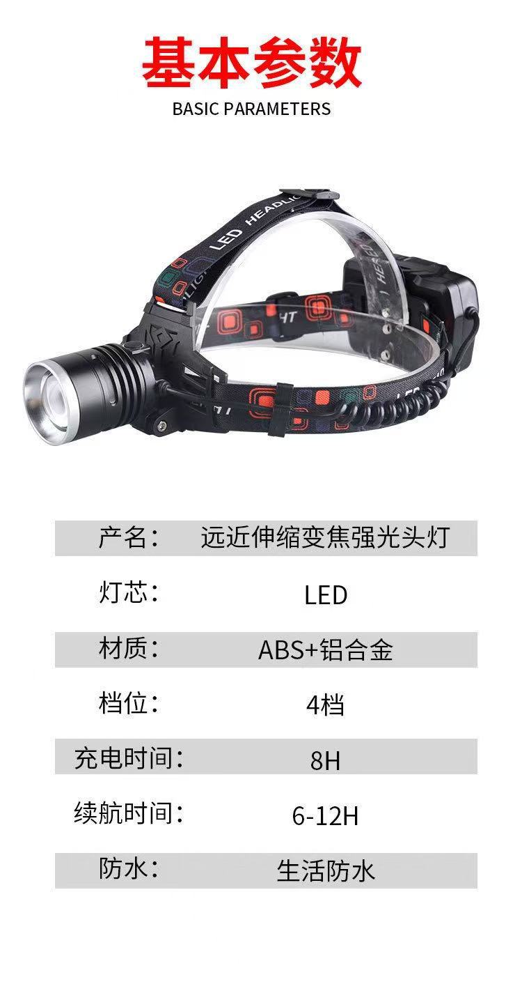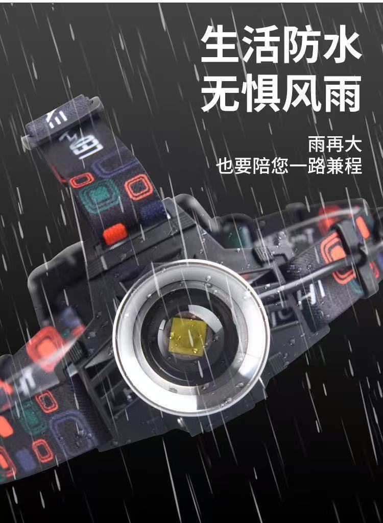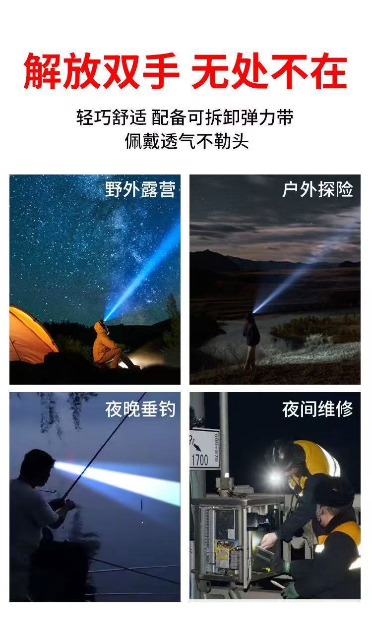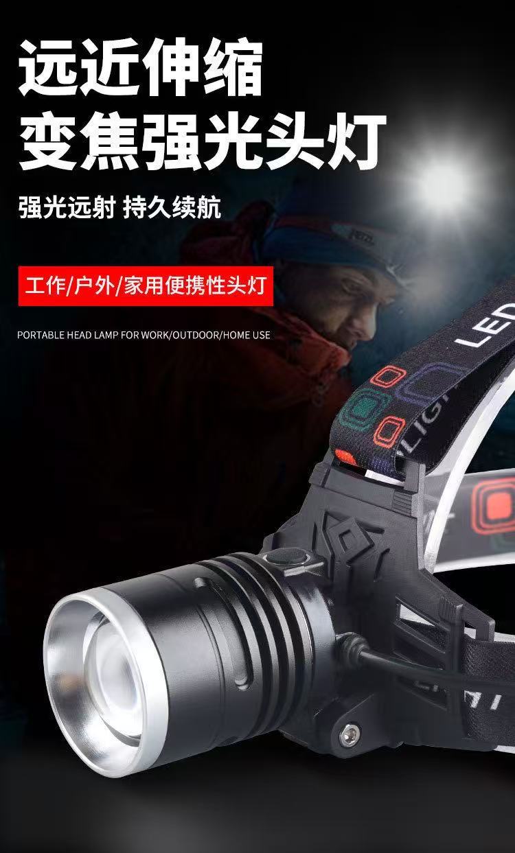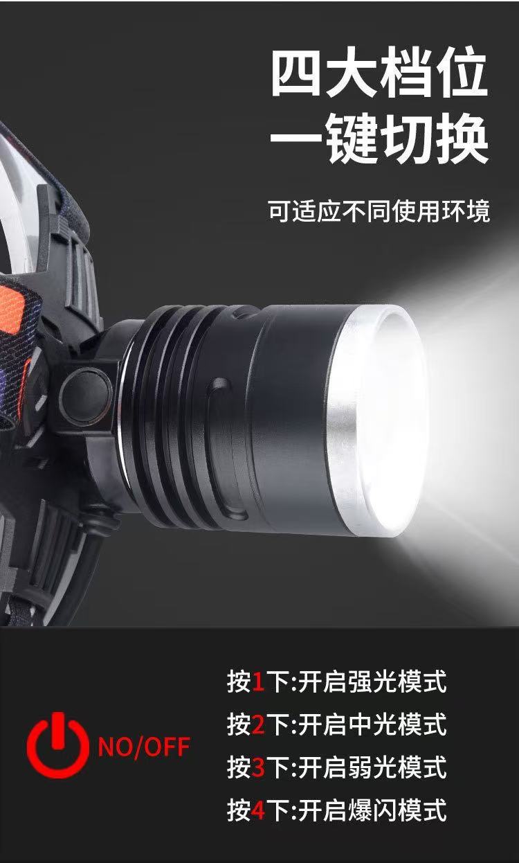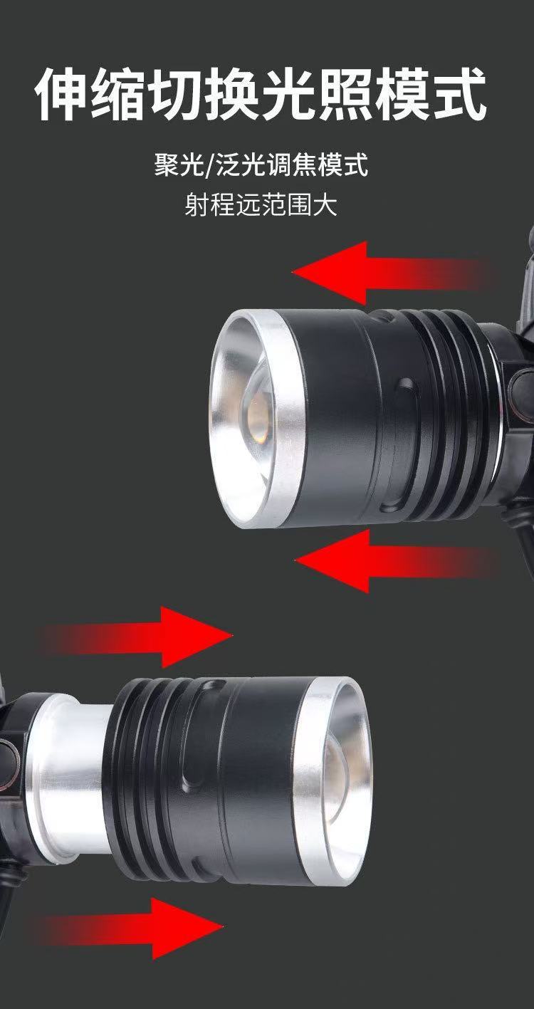 Explosiones transfronterizas P50 luz de cabeza de aluminio iluminación al aire libre linterna montada en la cabeza tres secciones de litio luz de pesca