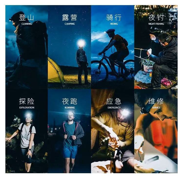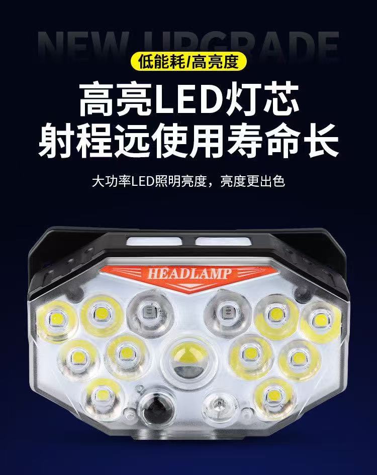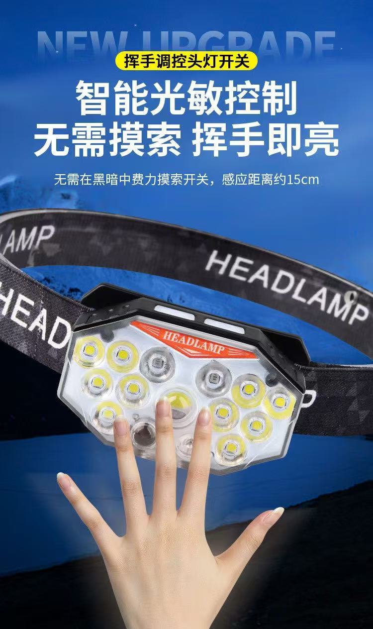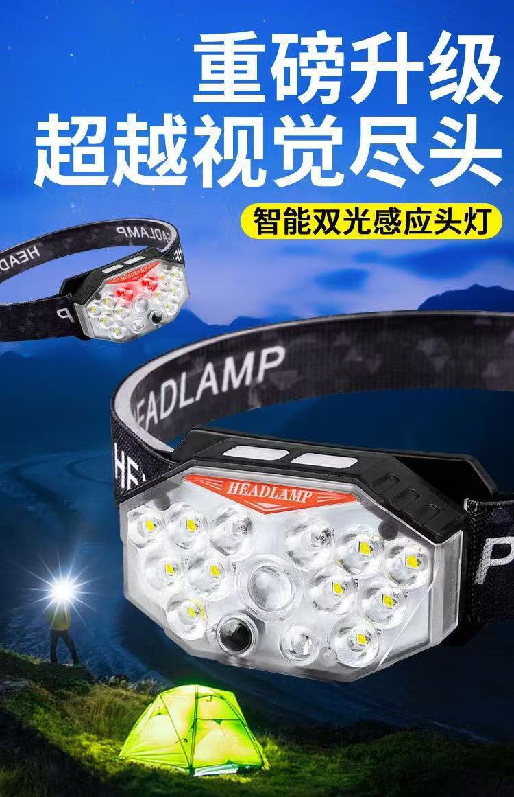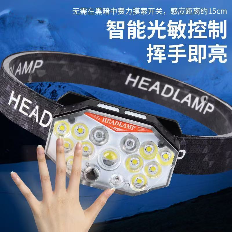 Faros con sensor de luz fuerte transfronterizos recargables LED súper brillantes luces de campamento de pesca al aire libre linterna de larga duración