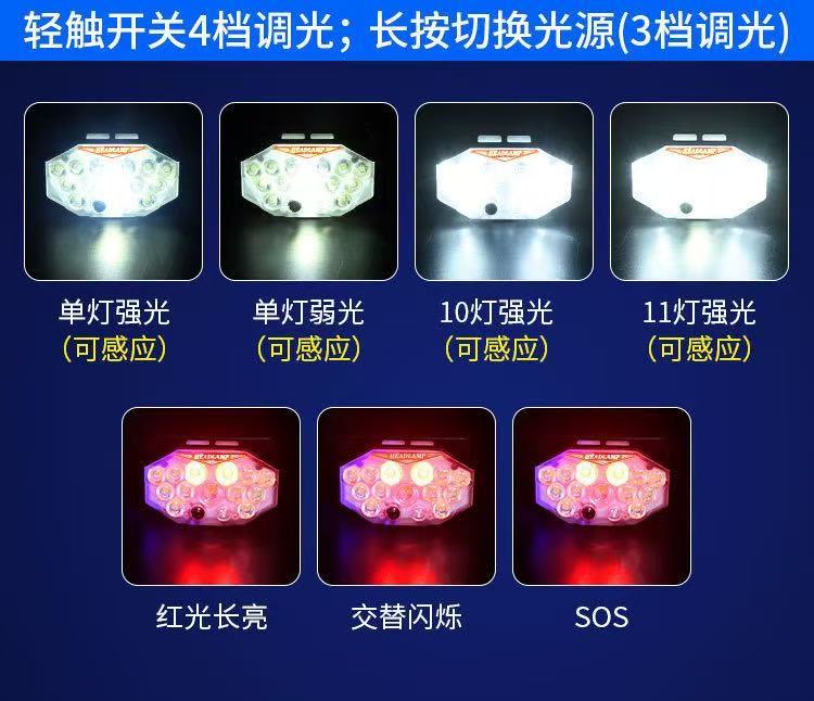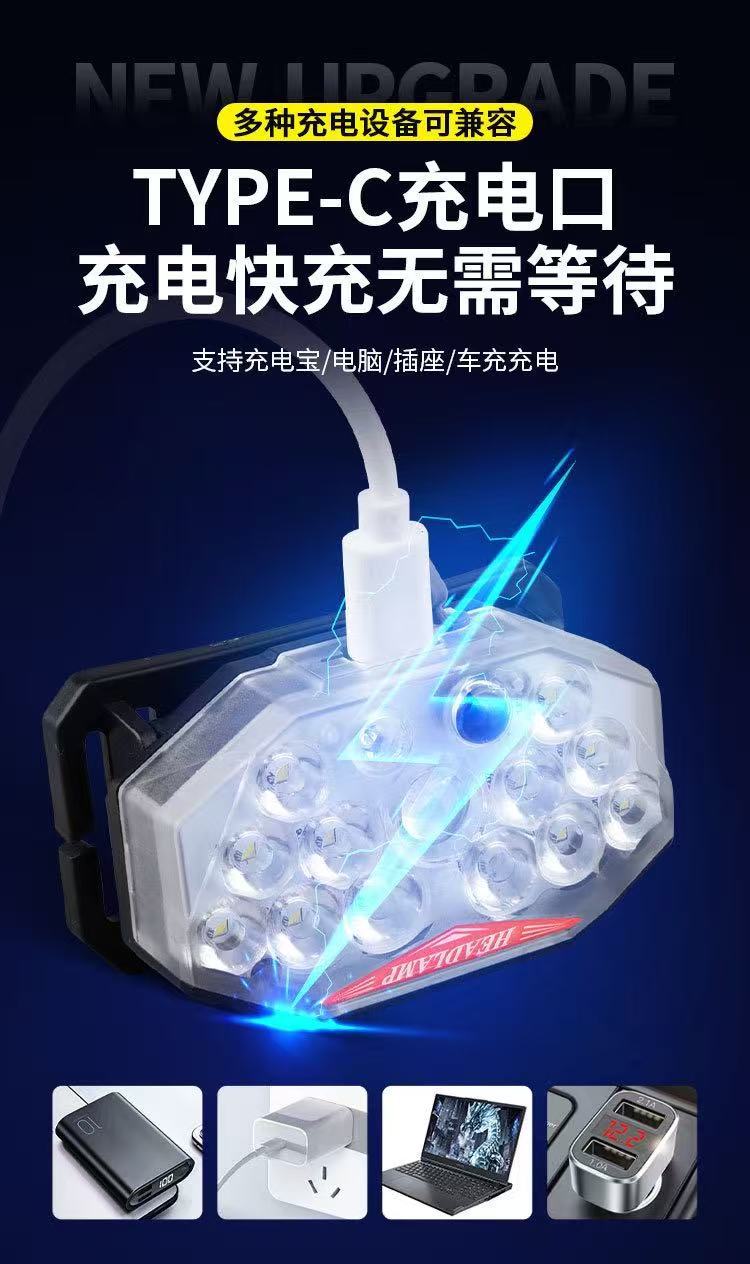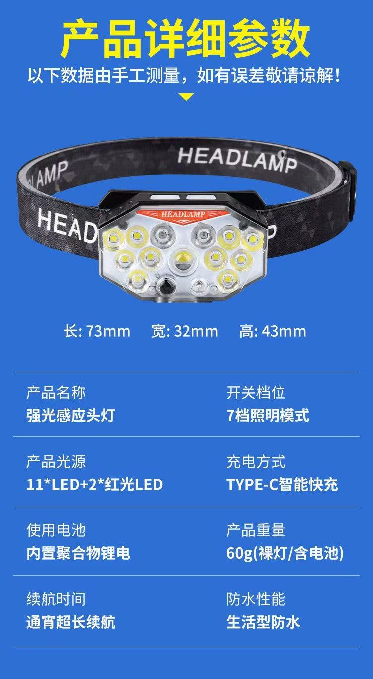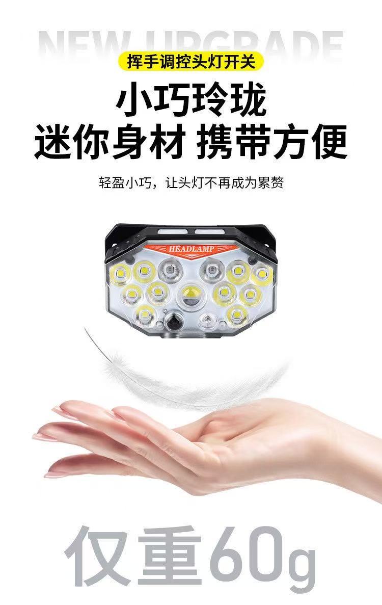 Faros con sensor de luz fuerte transfronterizos recargables LED súper brillantes luces de campamento de pesca al aire libre linterna de larga duración