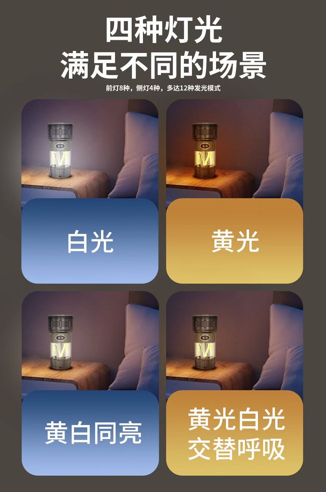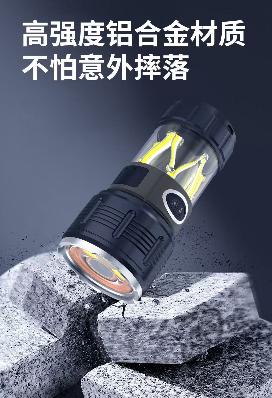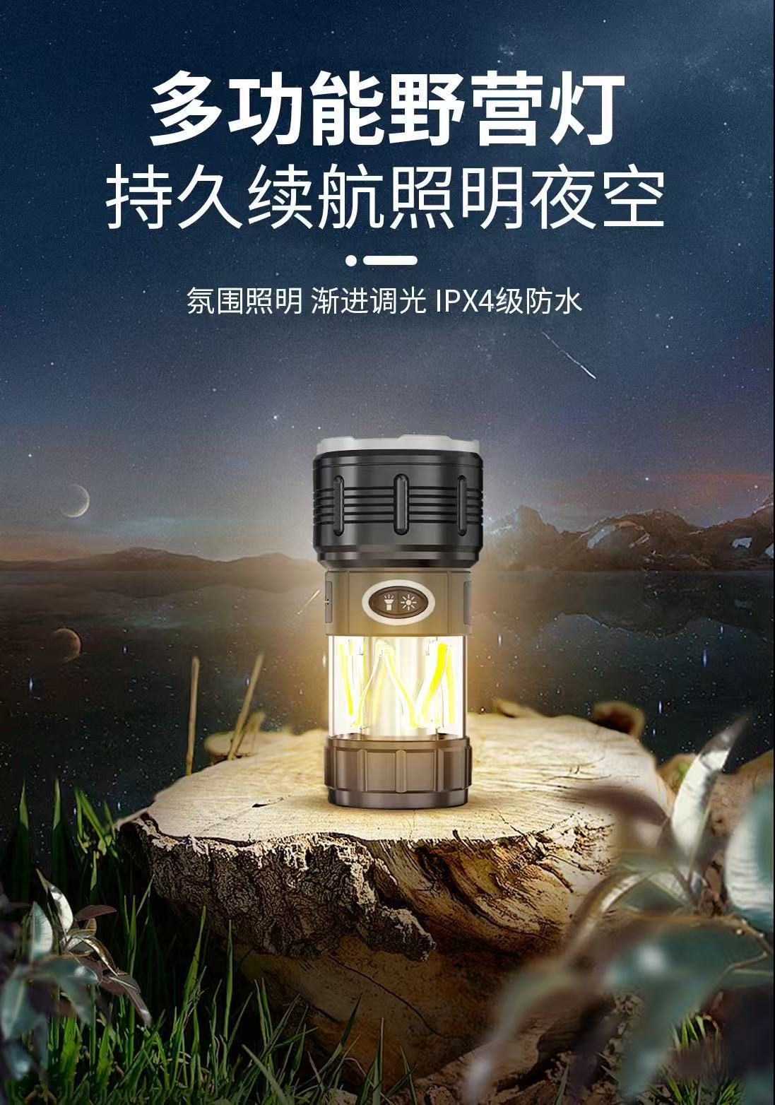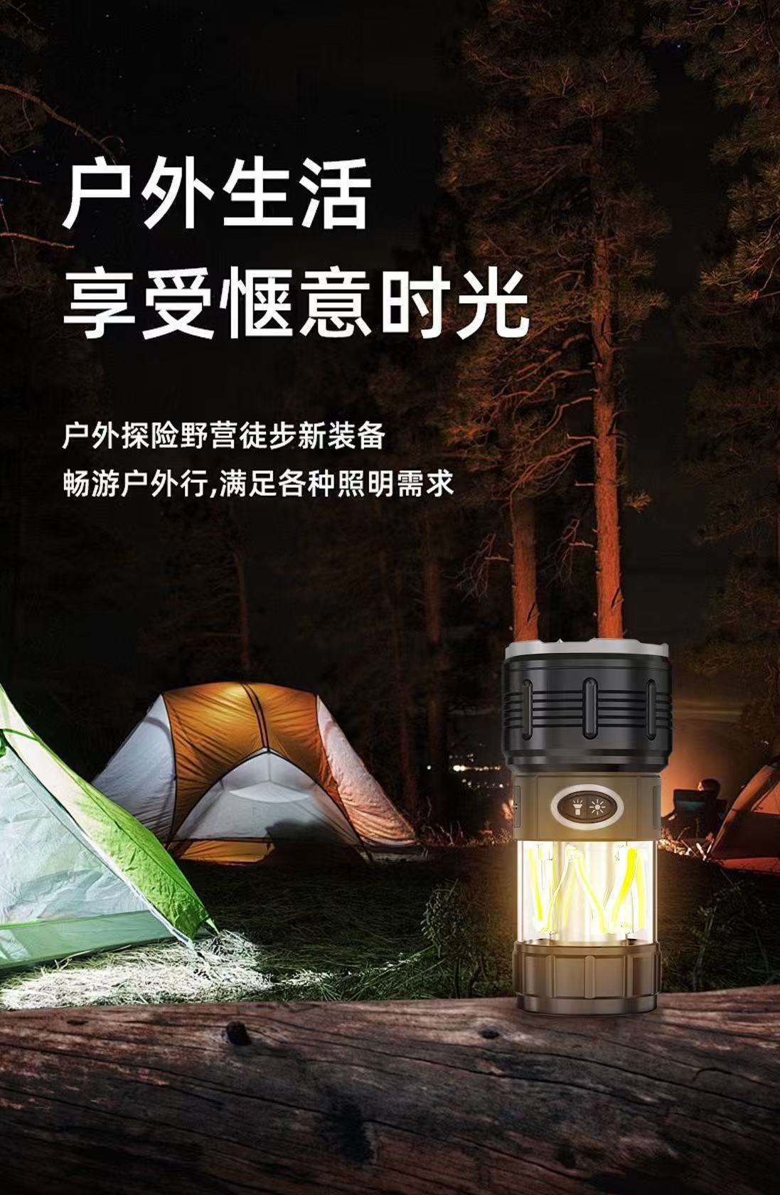 Nueva luz de campamento LED transfronteriza, linterna de luz fuerte, carga USB, impermeable al aire libre, larga duración, luz de campamento, luz ambiental