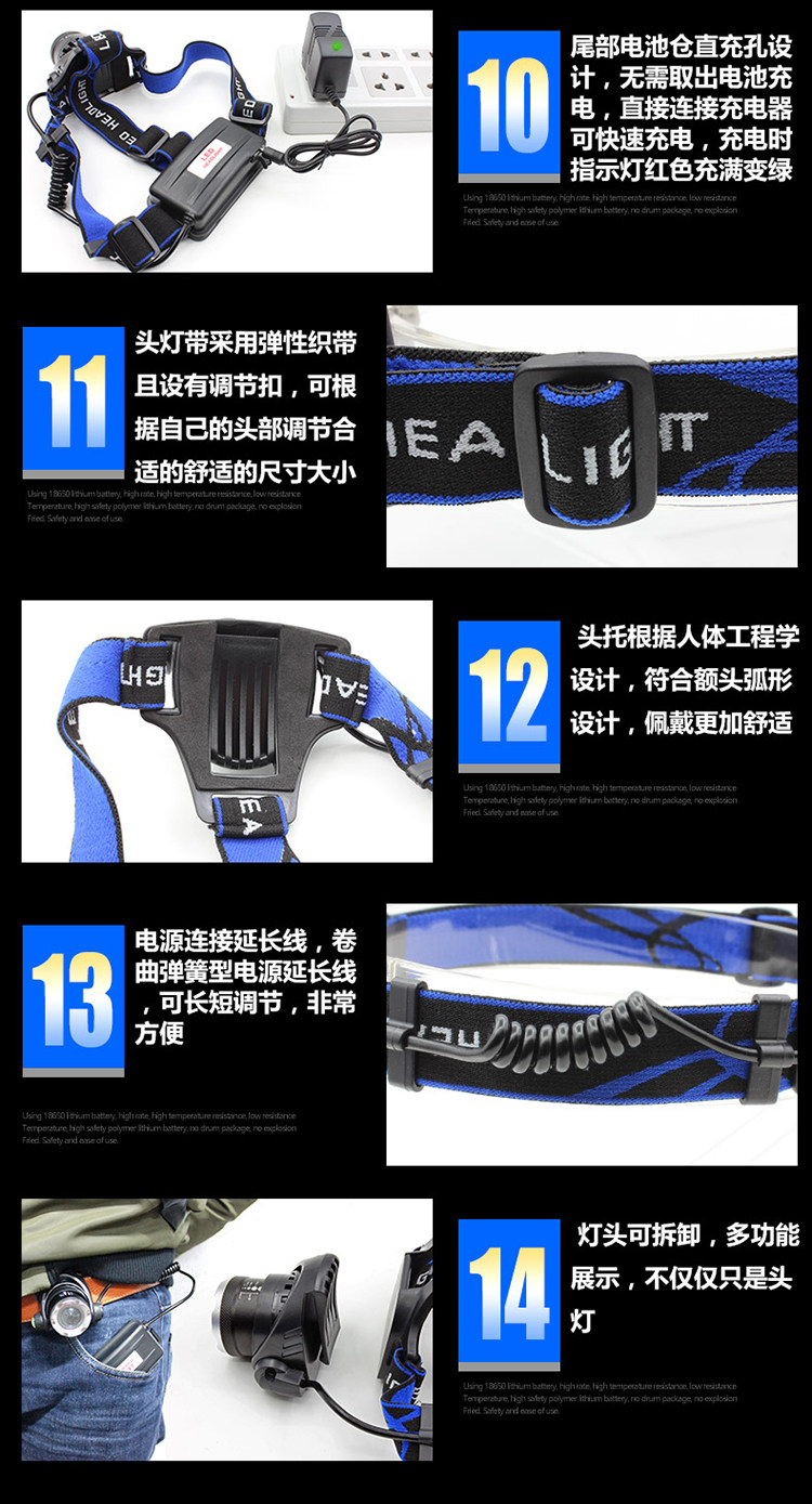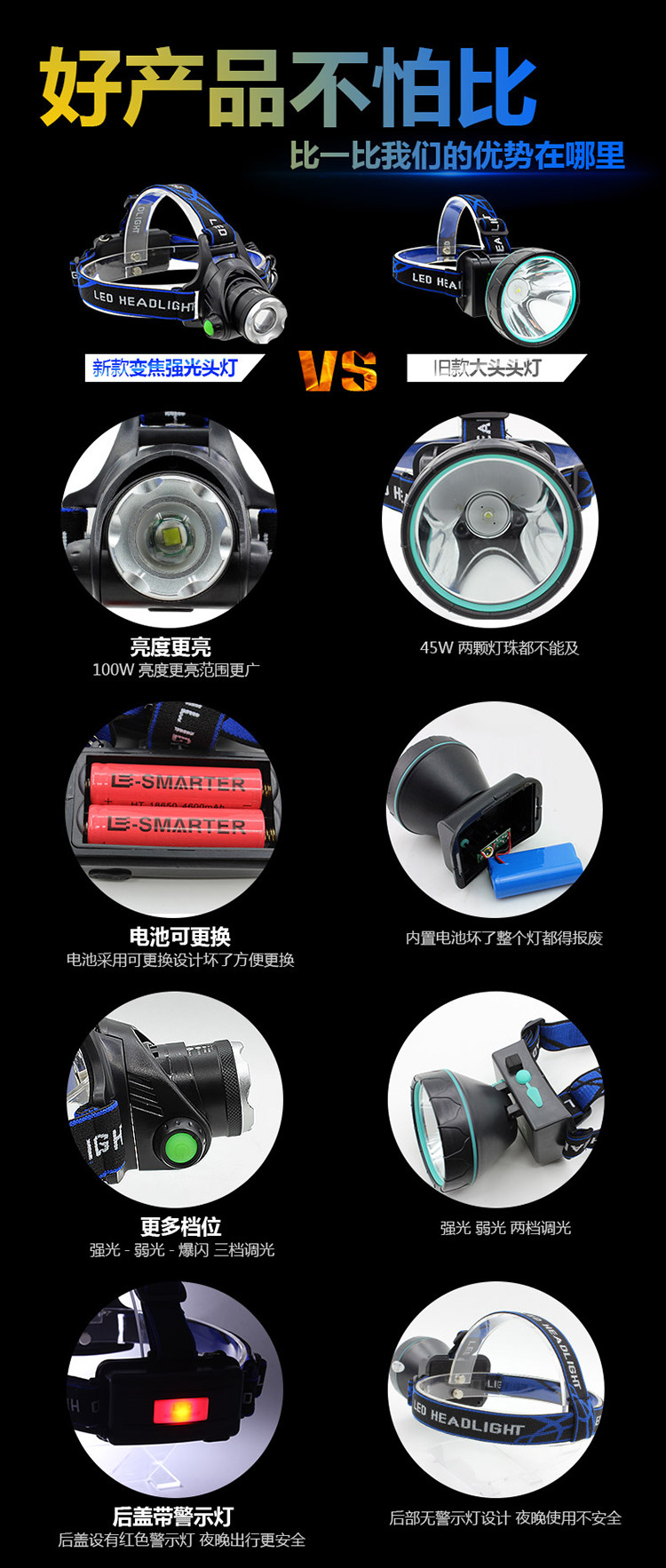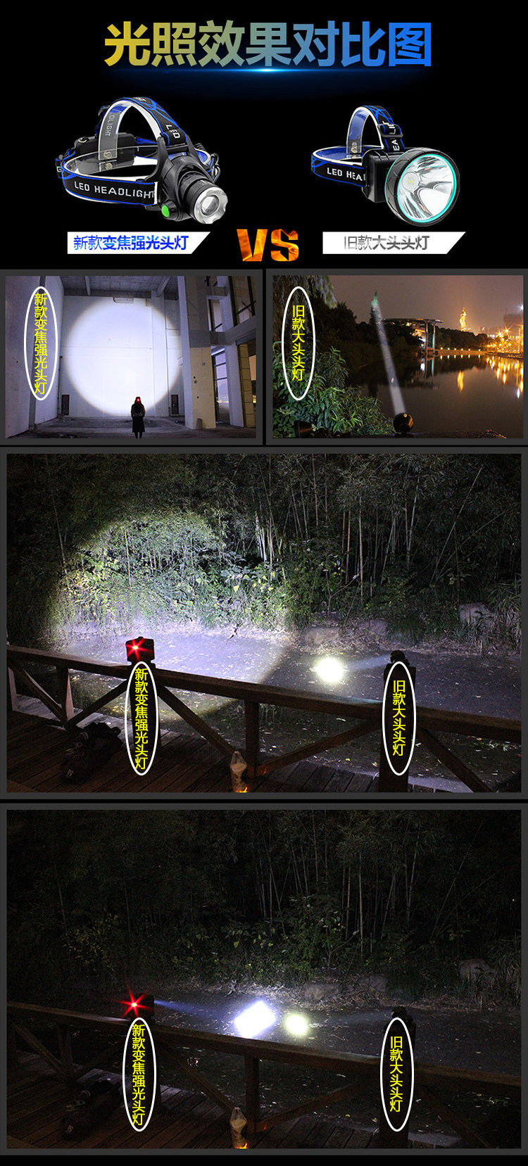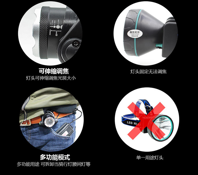 Lámpara de luz de doble fuente de luz alta carga de luz ultra brillante lámpara de minería de emisión remota luz de pesca nocturna portada en la cabeza zoom telescópico inducción al aire libre