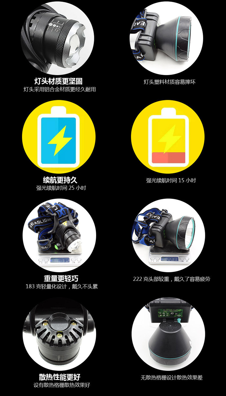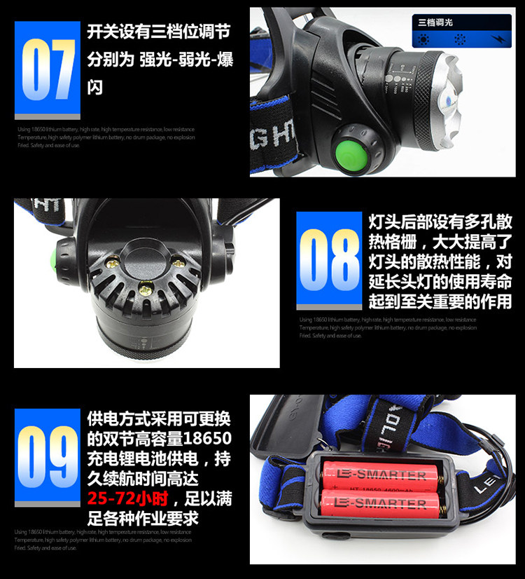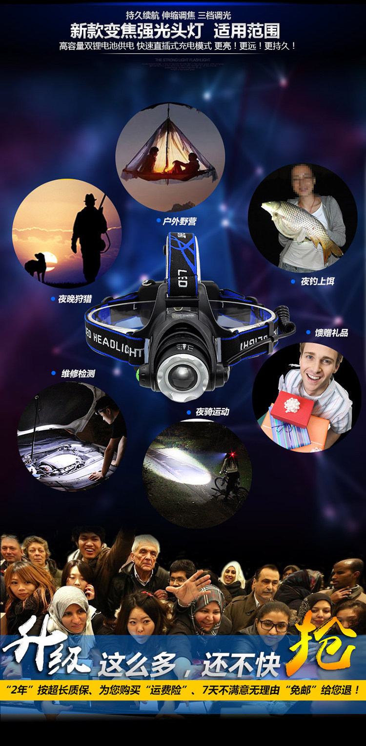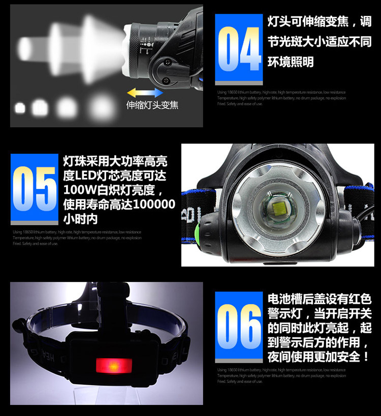 Lámpara de luz de doble fuente de luz alta carga de luz ultra brillante lámpara de minería de emisión remota luz de pesca nocturna portada en la cabeza zoom telescópico inducción al aire libre