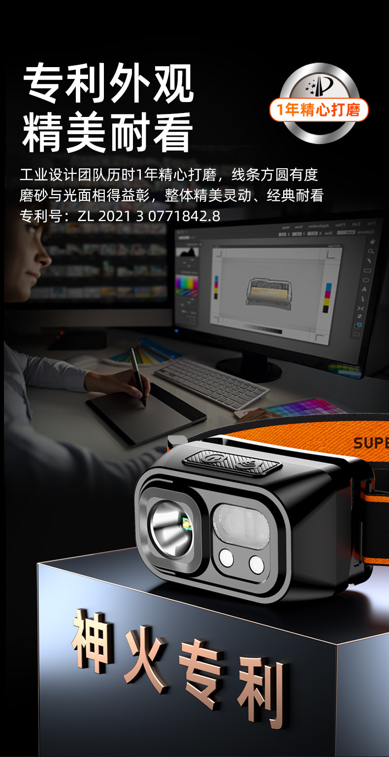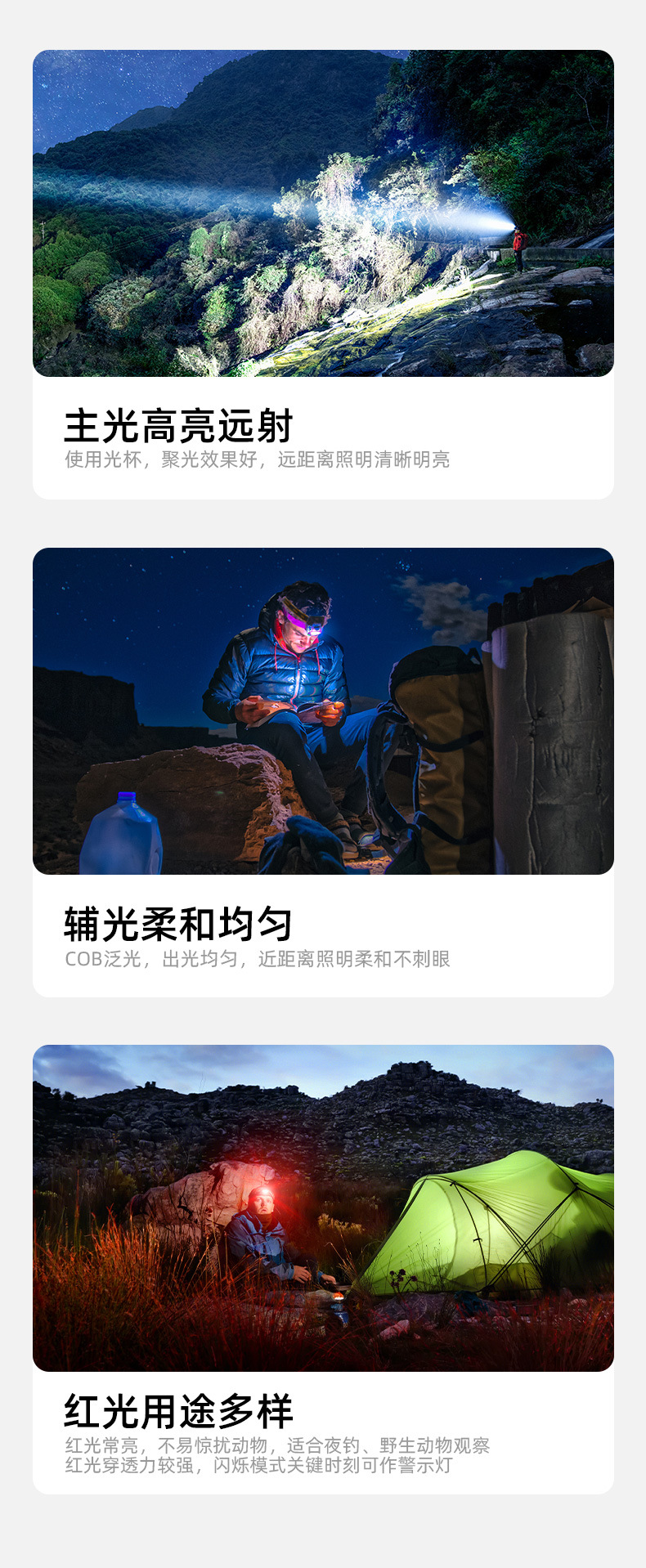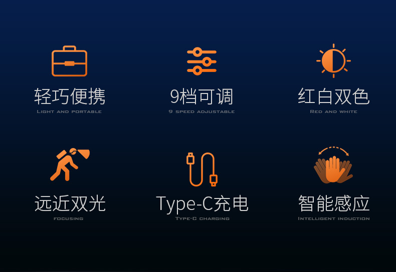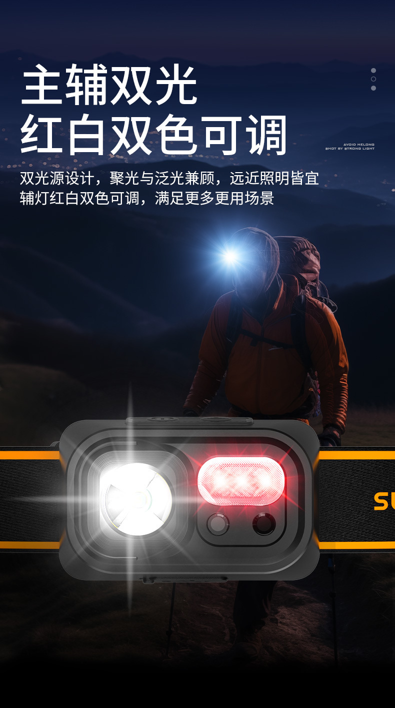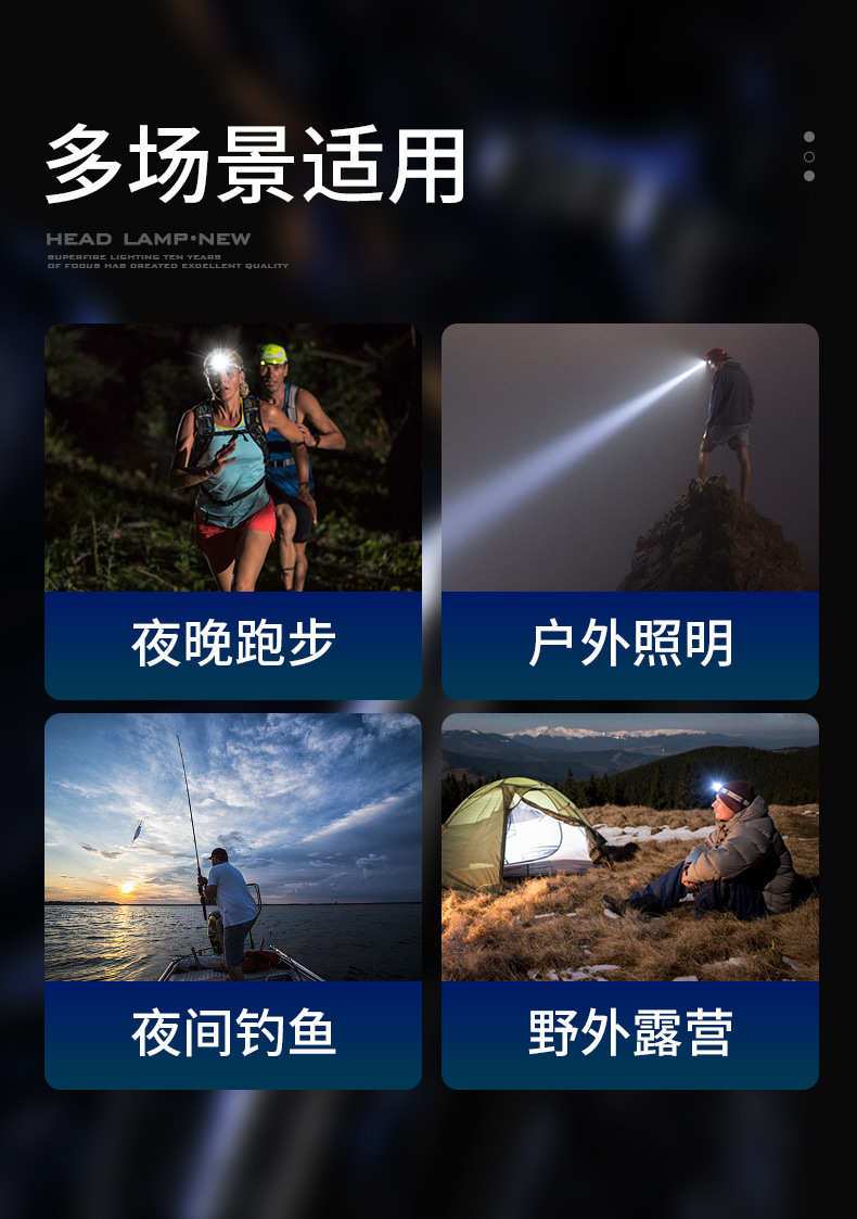 Transfronterizos LED luz alta luz de largo alcance inducción USB carga portátil luz de rescate al aire libre luz de pesca nocturna