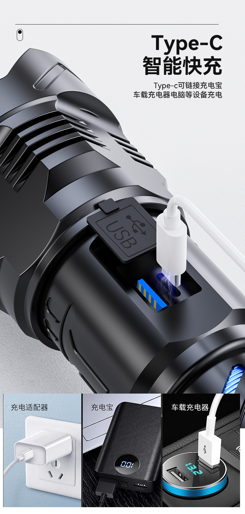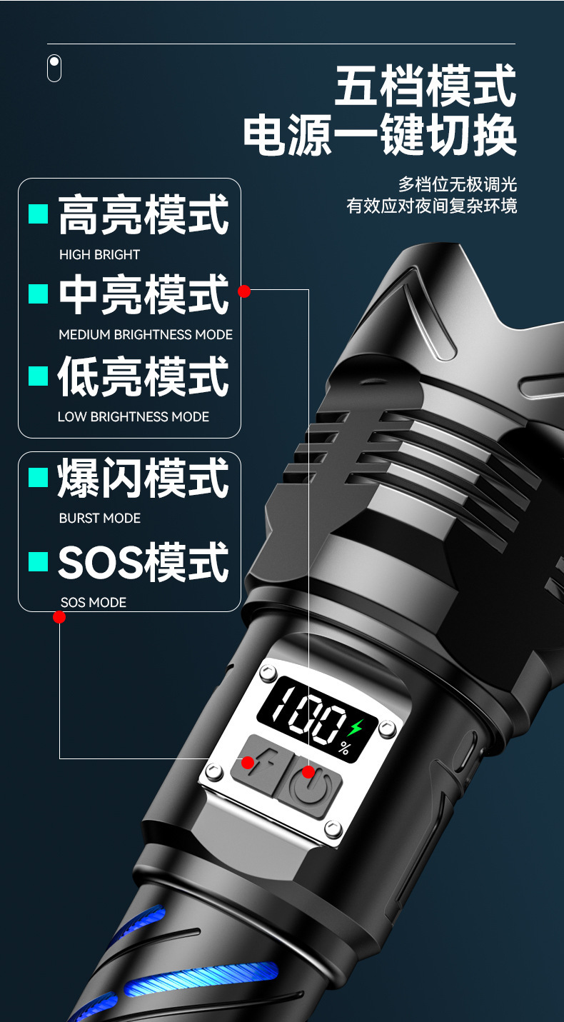 Douyin popular fuerte luz Super brillante recargable larga resistencia linterna zoom al aire libre portátil multi-función táctica láser blanco
