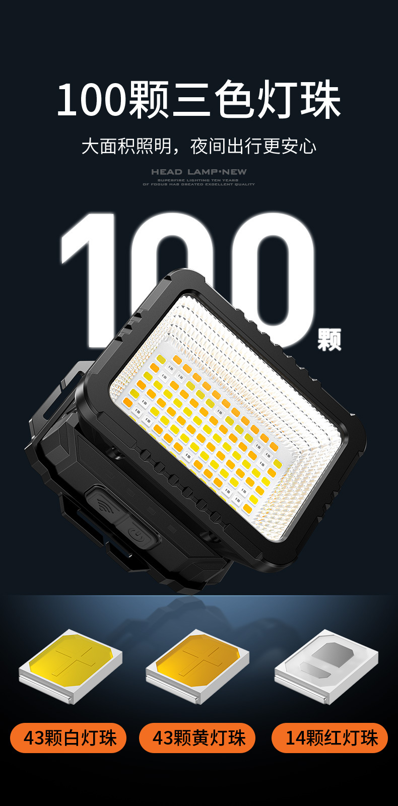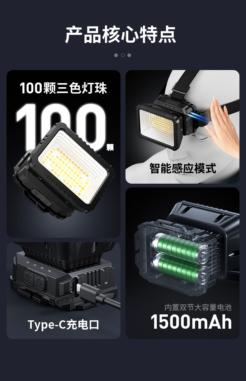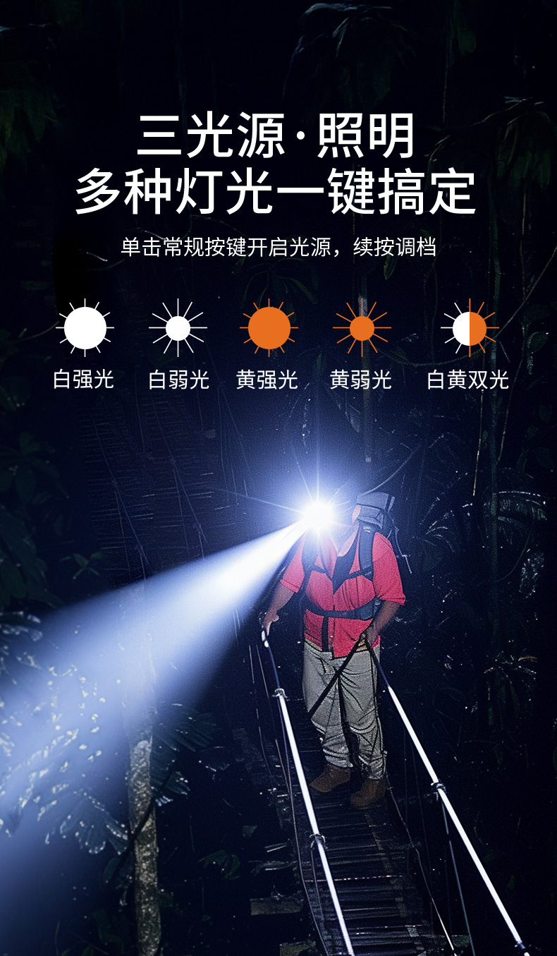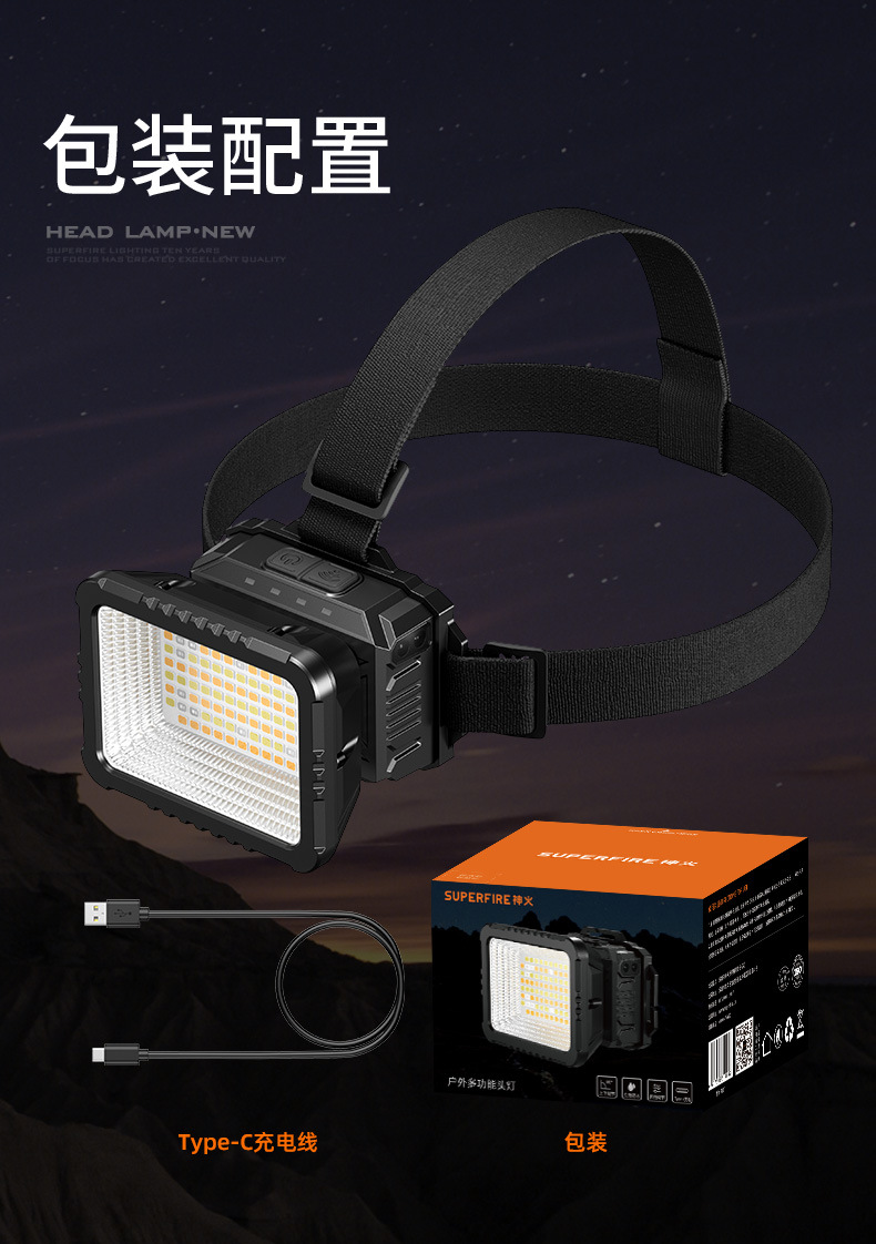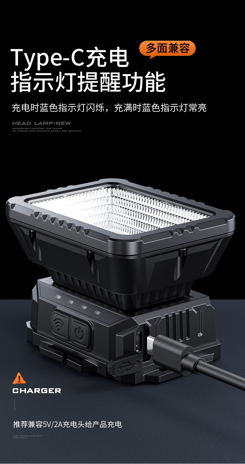 Faros de iluminación de inundación Shenhuo Iluminación exterior Iluminación montada en la cabeza de aventura Luz fuerte de larga duración Luz de inducción led Faros industriales y mineros