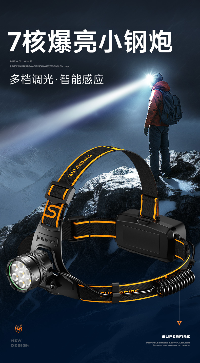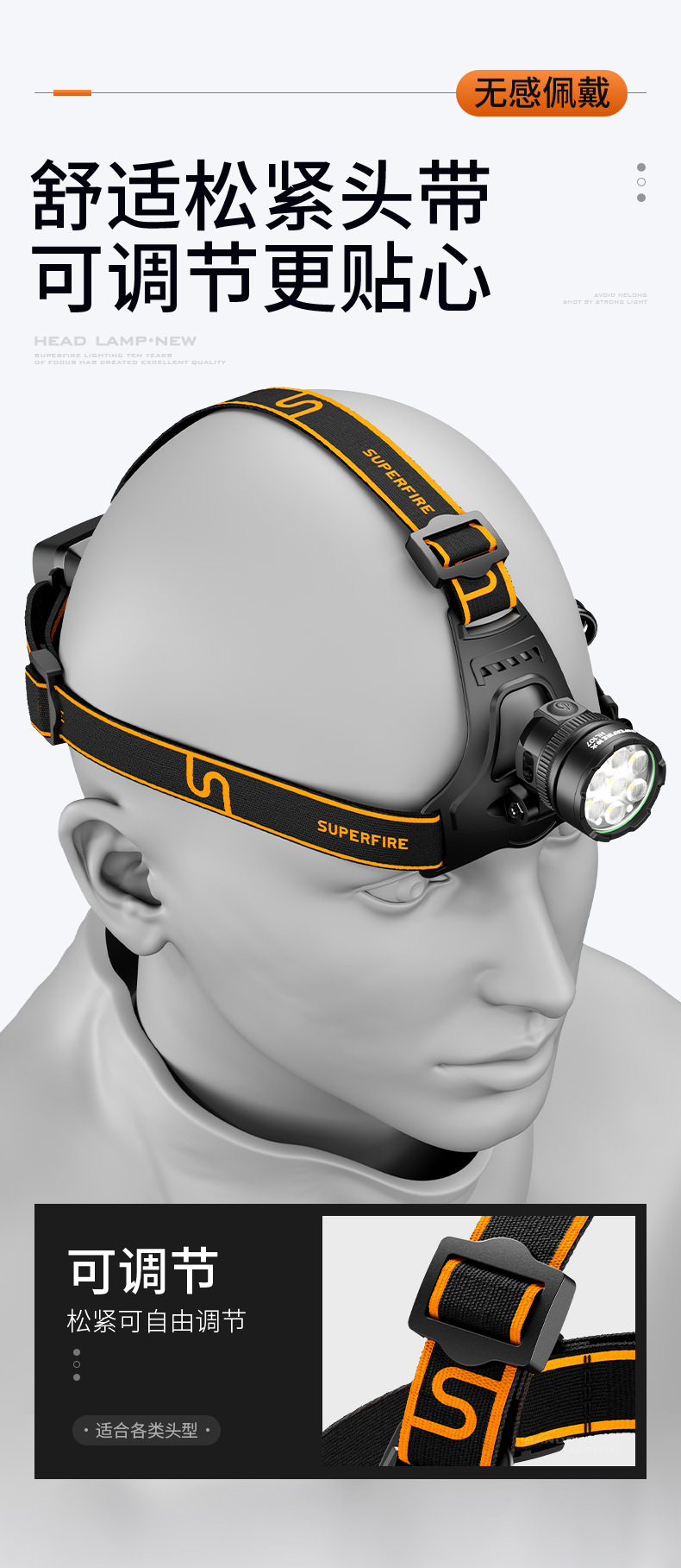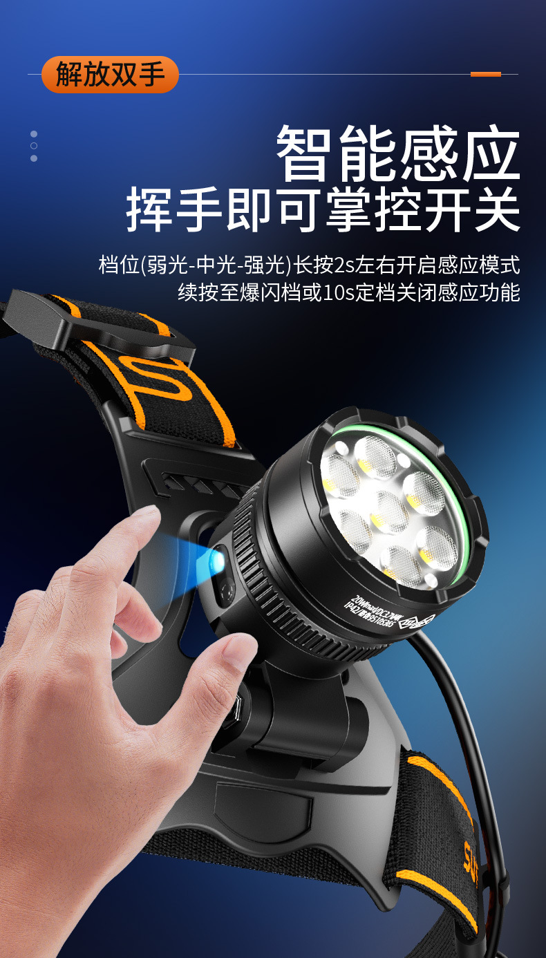 Shenhua HL107 inducción luz de cabeza pescador nocturno carga super brillante super larga duración 20W iluminación montada en la cabeza