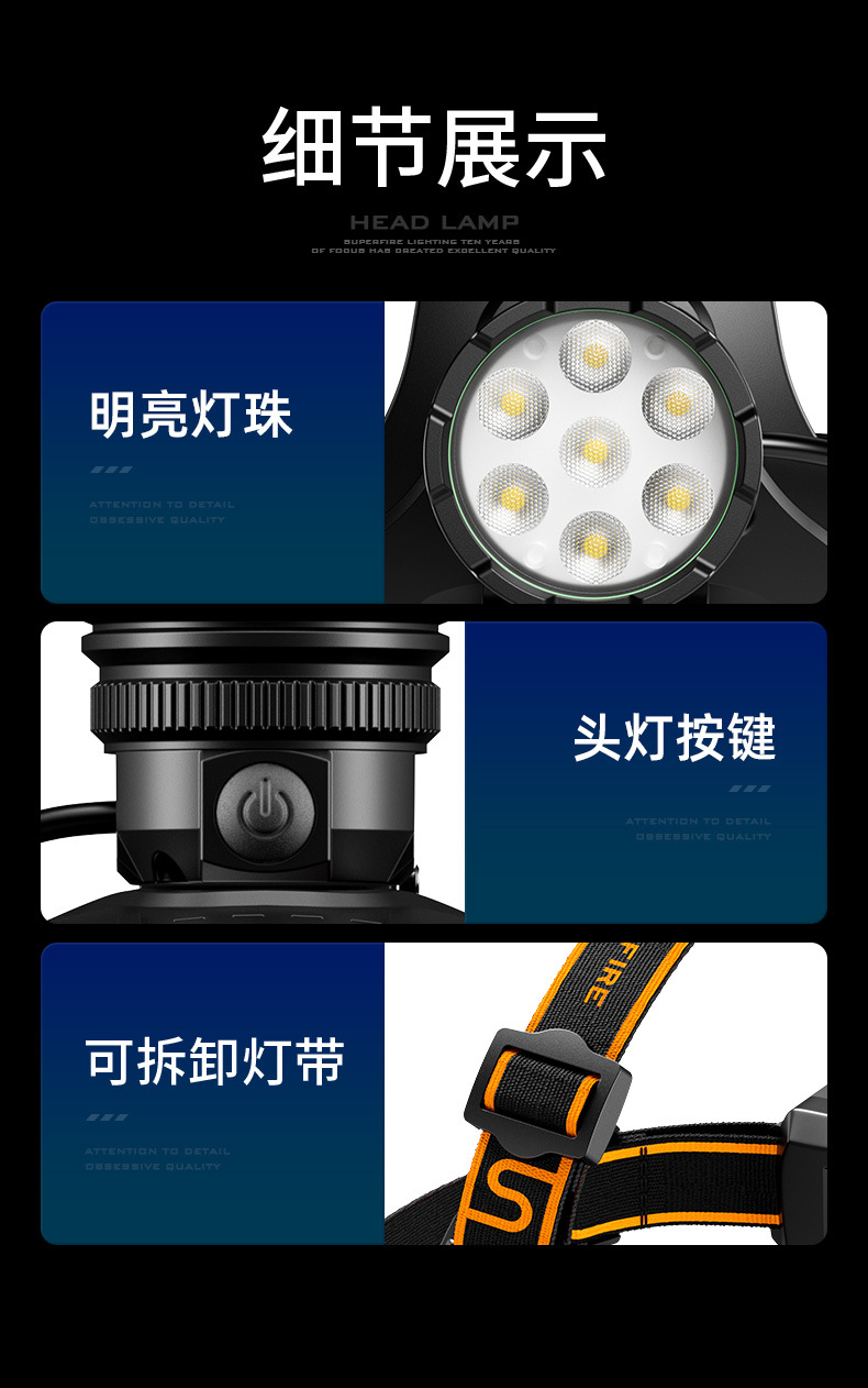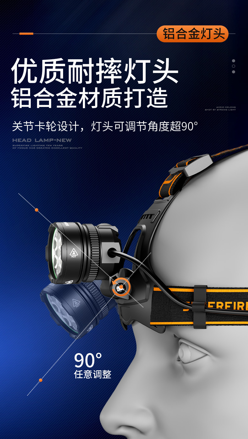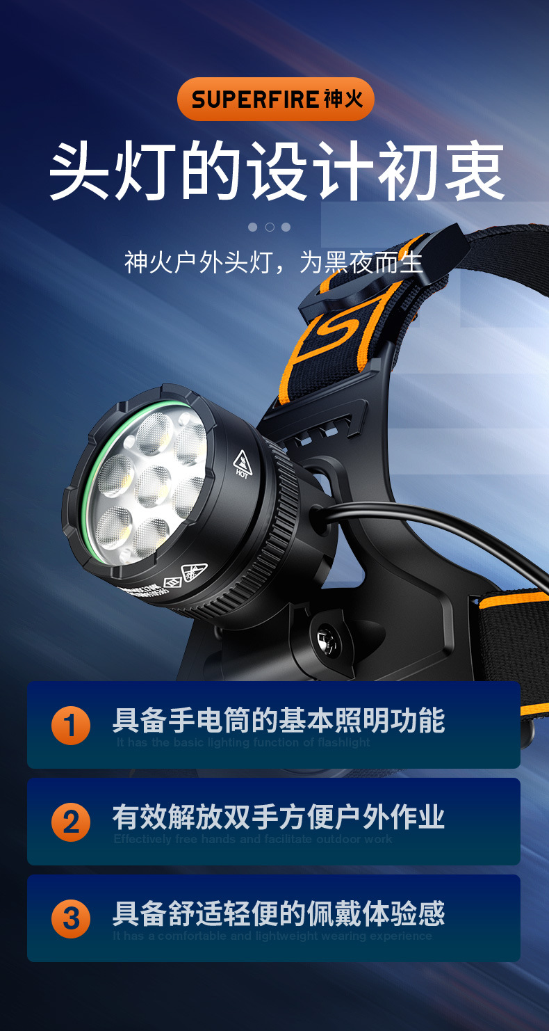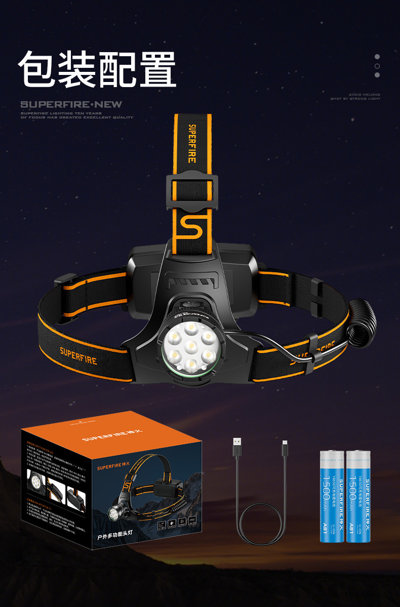 Shenhua HL107 inducción luz de cabeza pescador nocturno carga super brillante super larga duración 20W iluminación montada en la cabeza