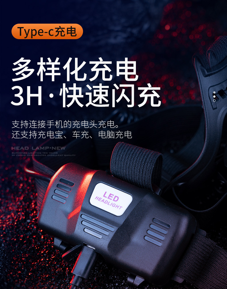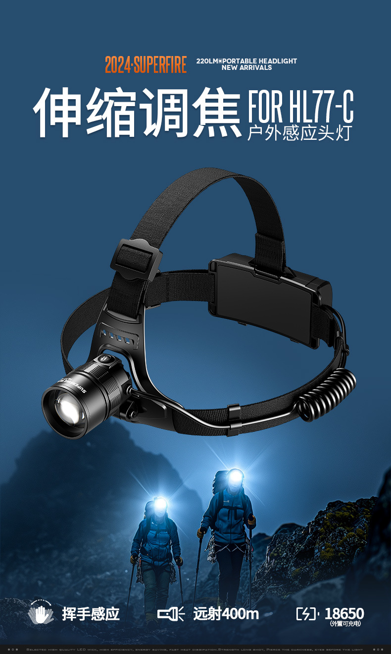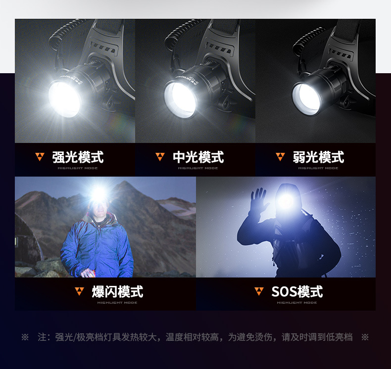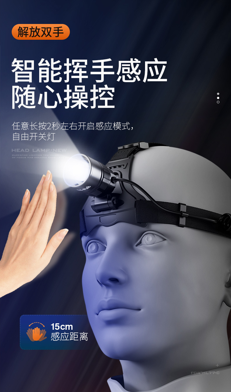 Shenhua al aire libre zoomable aluminio lámpara de cabeza multifuncional recargable inducción lámpara de cabeza de pesca nocturna lámpara de cabeza nocturna