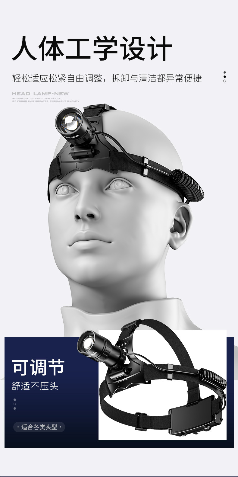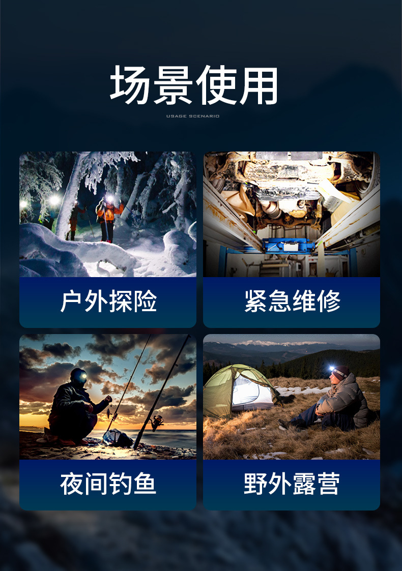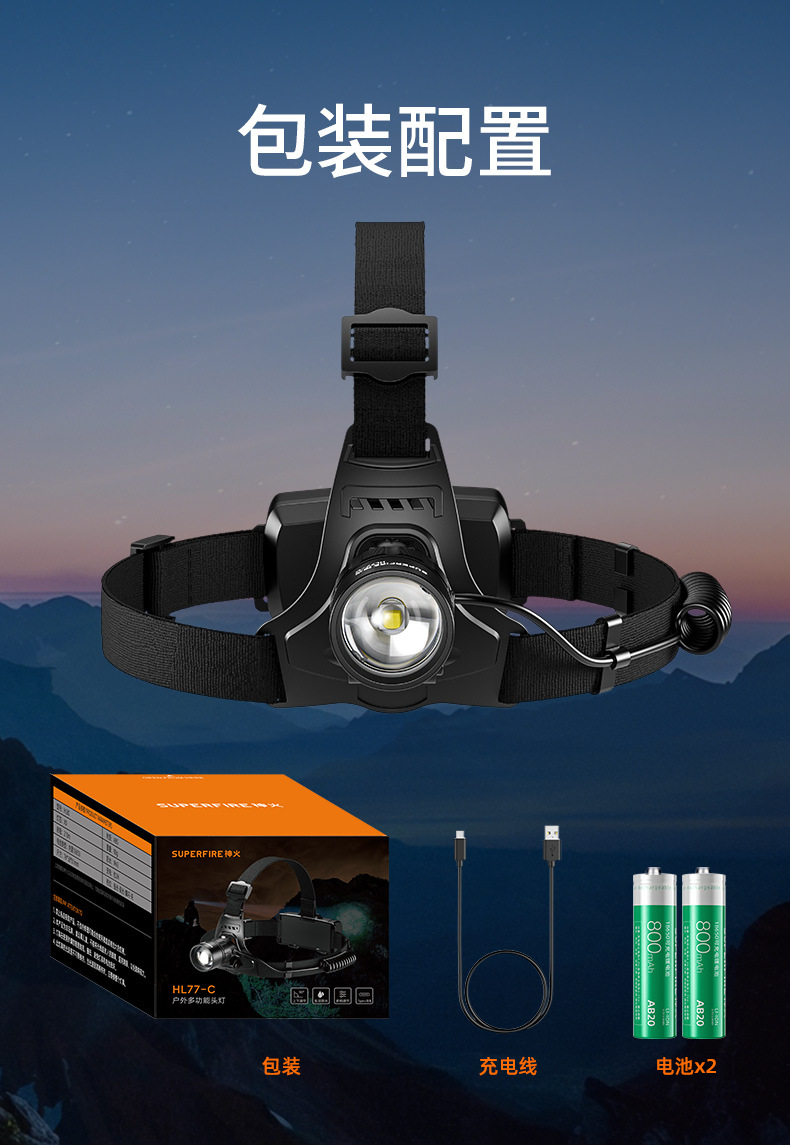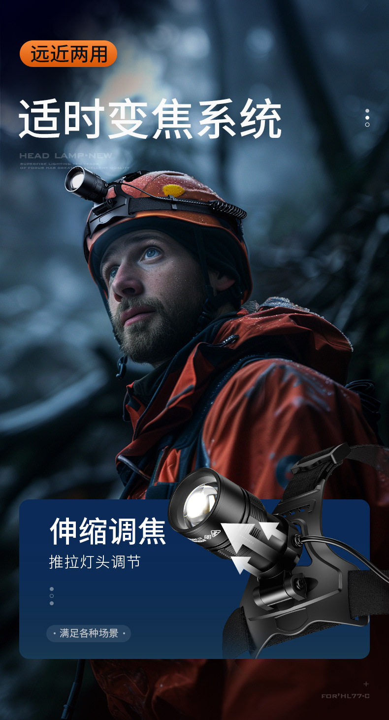 Shenhua al aire libre zoomable aluminio lámpara de cabeza multifuncional recargable inducción lámpara de cabeza de pesca nocturna lámpara de cabeza nocturna