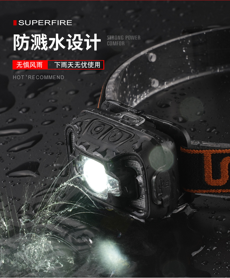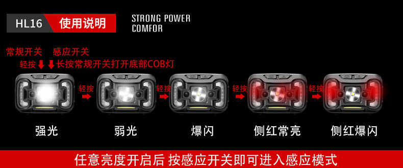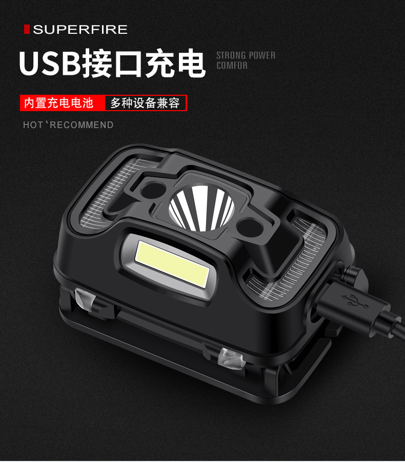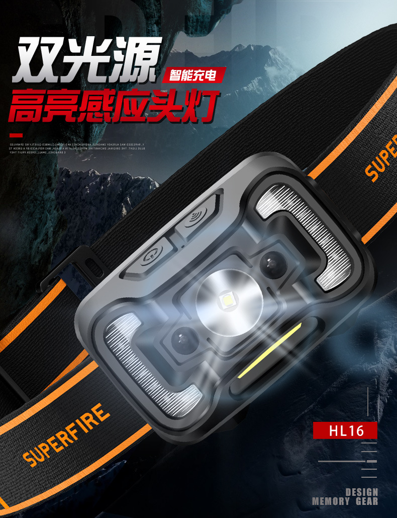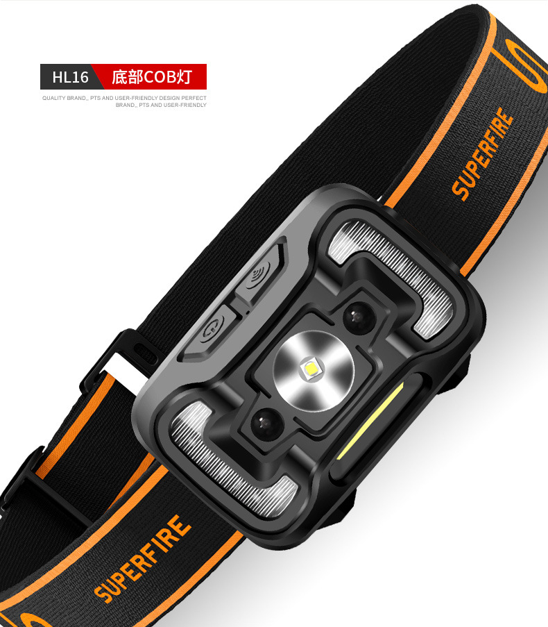 Shenhuo transfronterizo HL16 lámpara de pesca nocturna fábrica al por mayor de 45 grados de rotación de luz fuerte USB de carga LED Faro de inducción