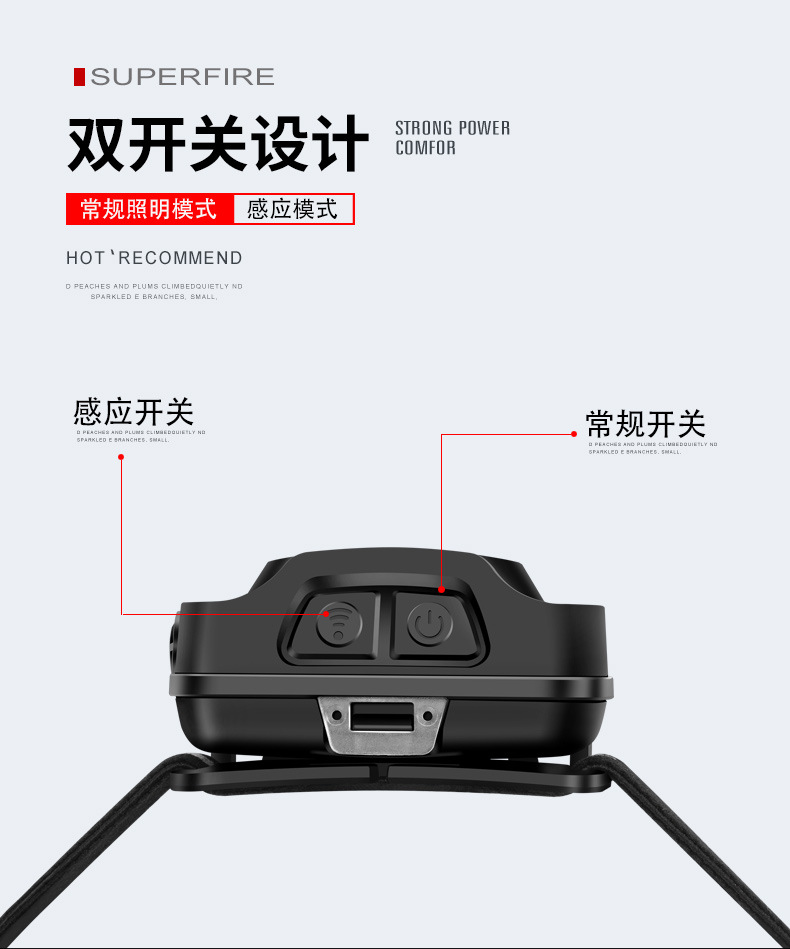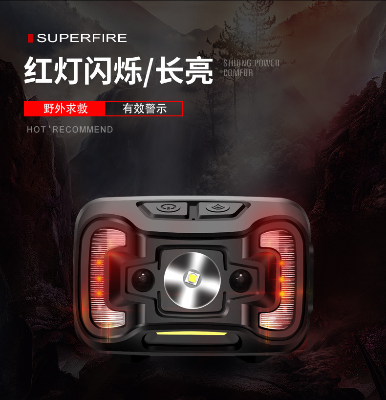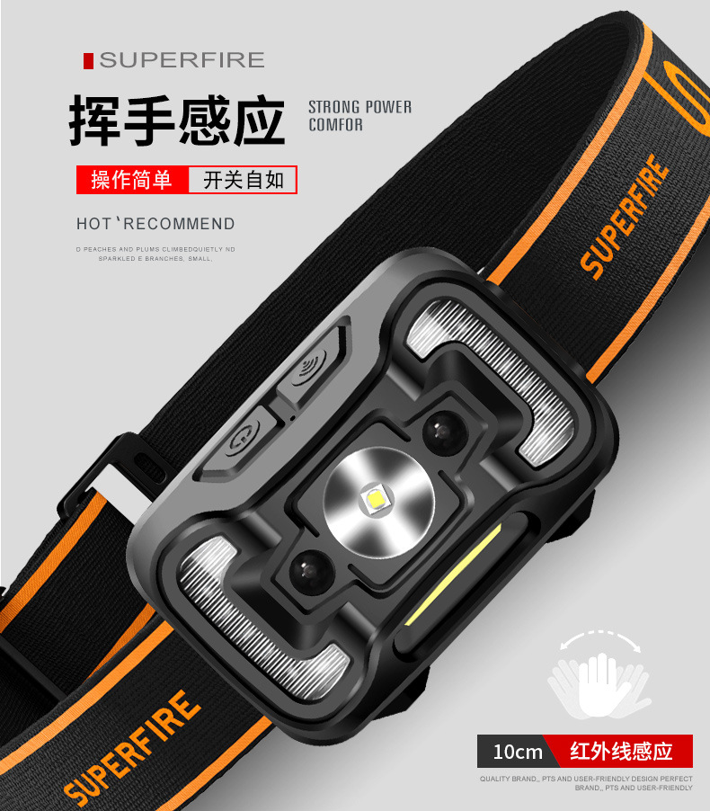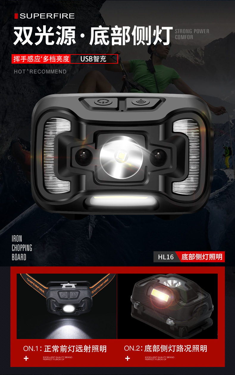 Shenhuo transfronterizo HL16 lámpara de pesca nocturna fábrica al por mayor de 45 grados de rotación de luz fuerte USB de carga LED Faro de inducción