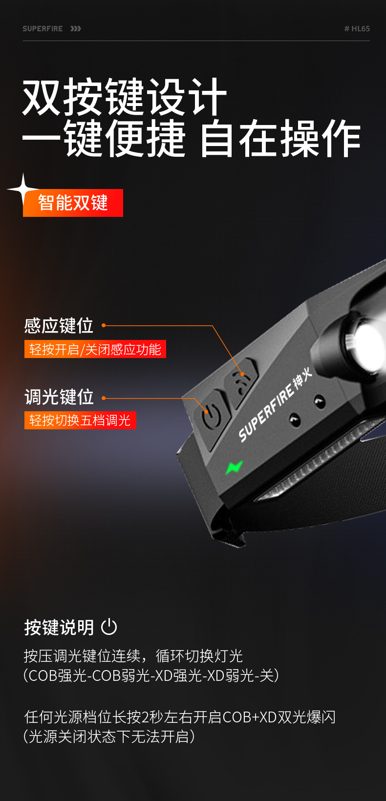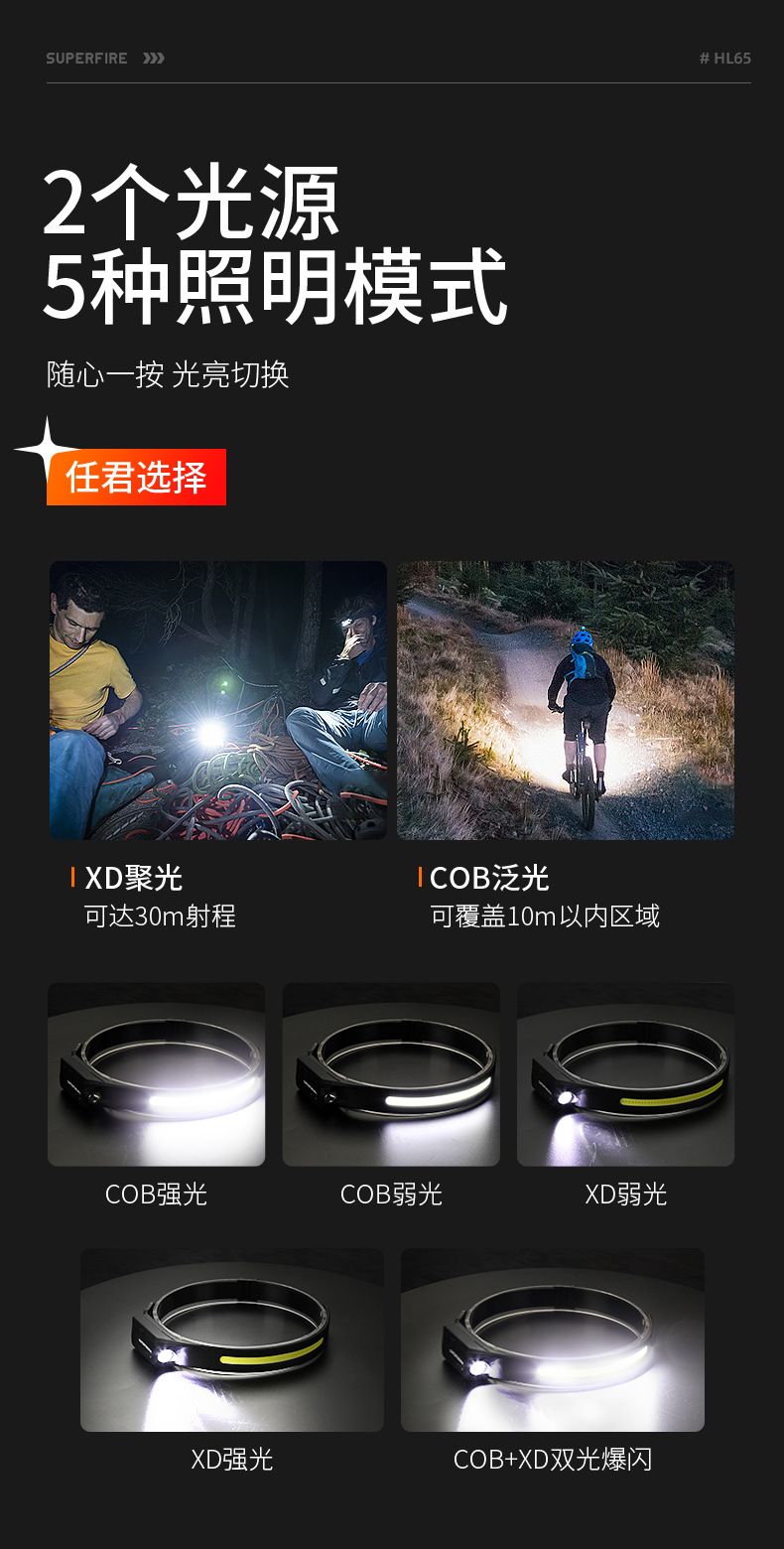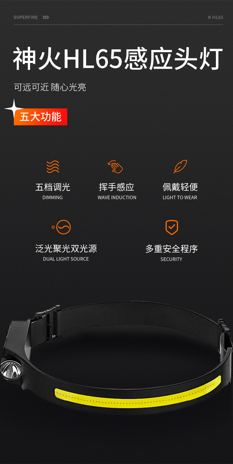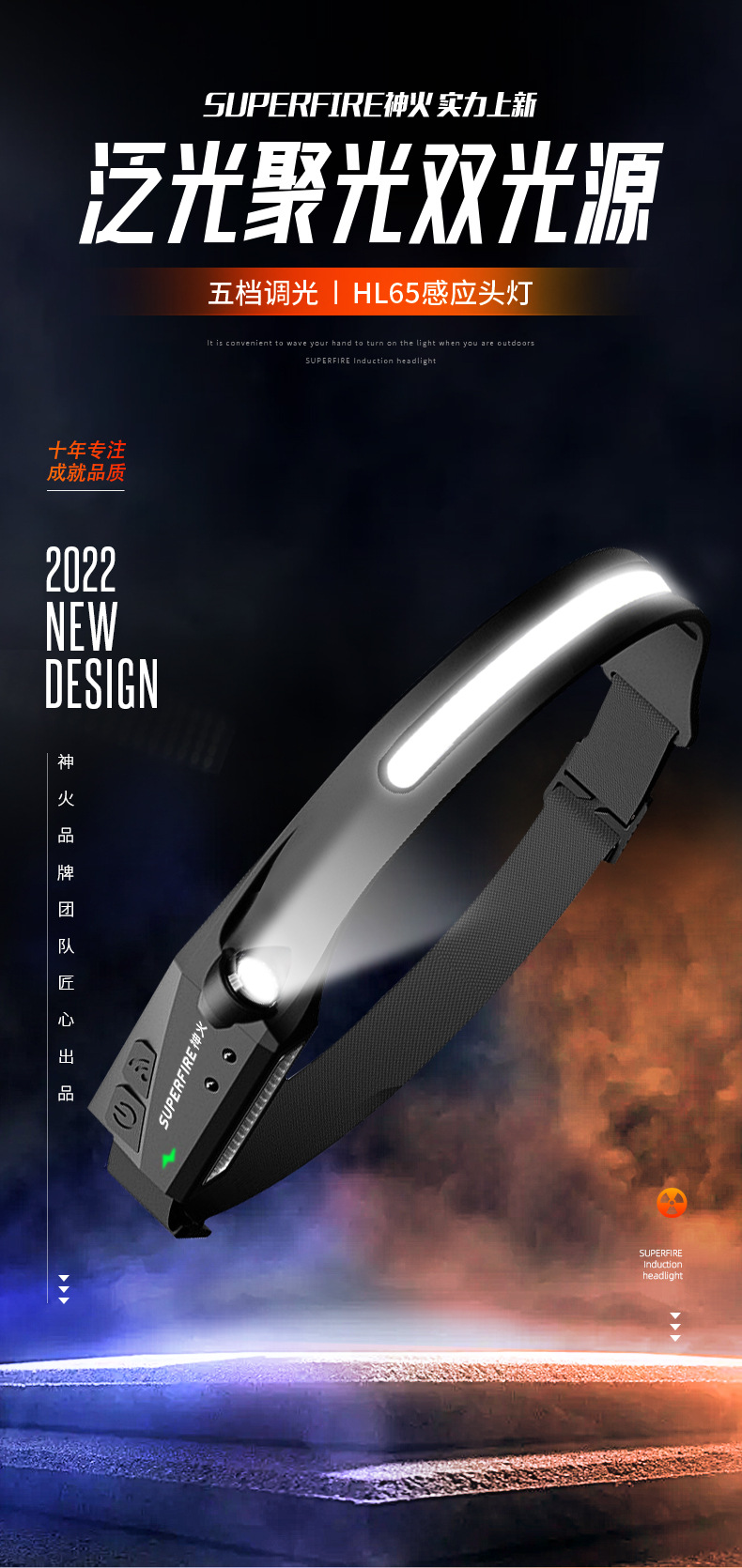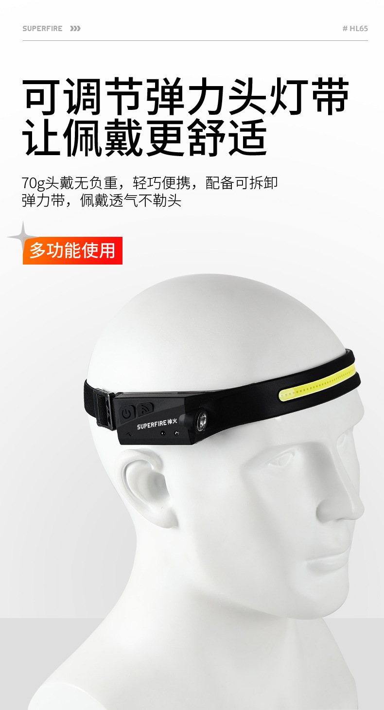 Shenhuo transfronteriza COB inducción fuerte faro de luz venta caliente de carga brillante lámpara de minero montada en la cabeza lámpara de pesca LED HL65