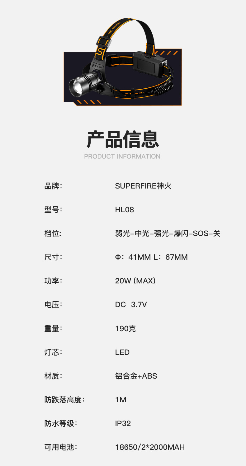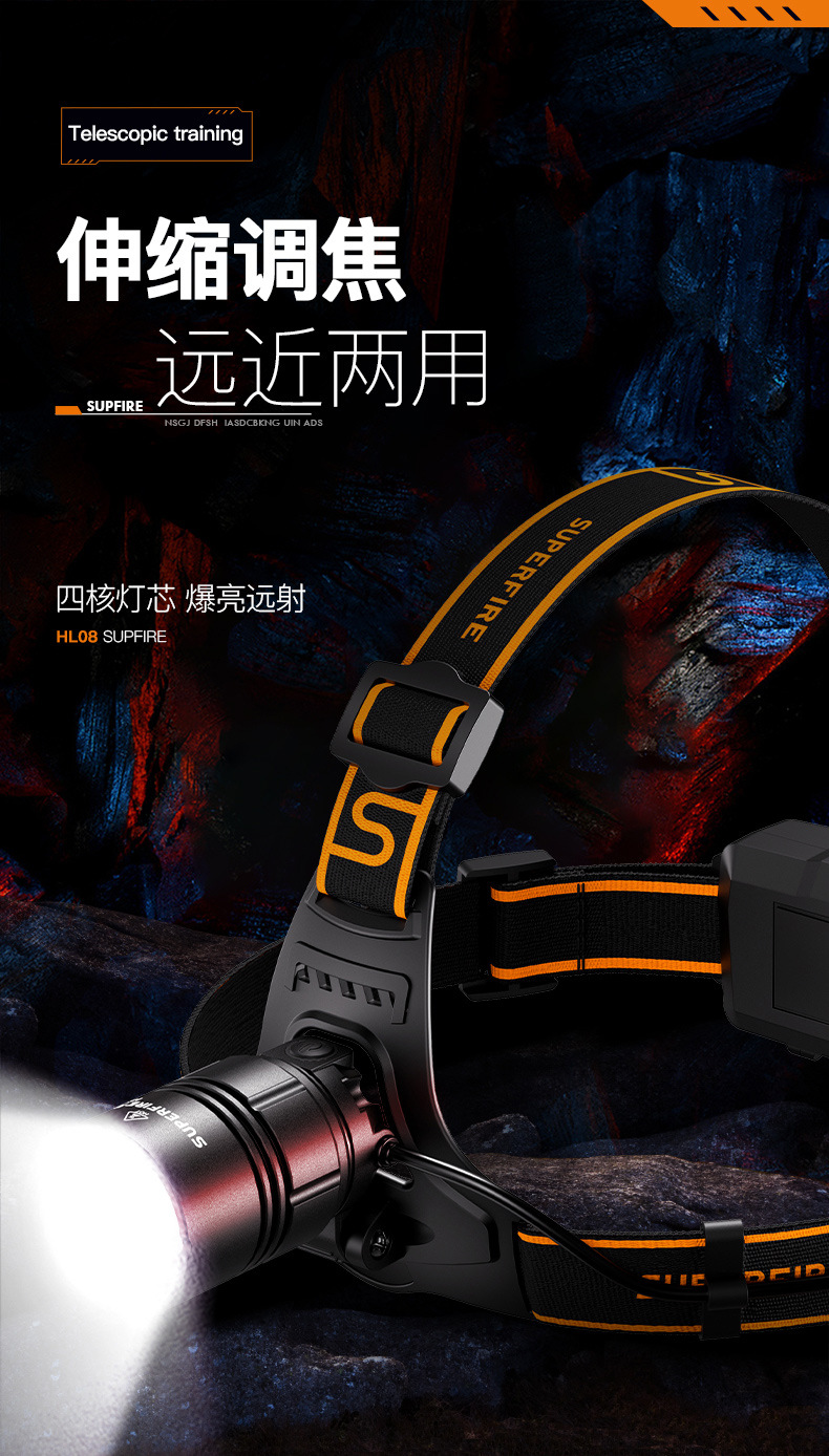Shenhuo transfronterizo HL08 Nuevo 20W faro de iluminación al aire libre fuerte luz de Carga giratoria enfoque LED faro al por mayor