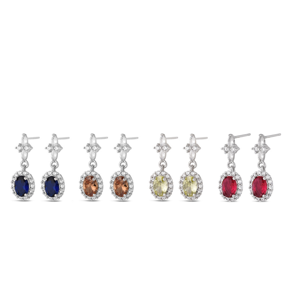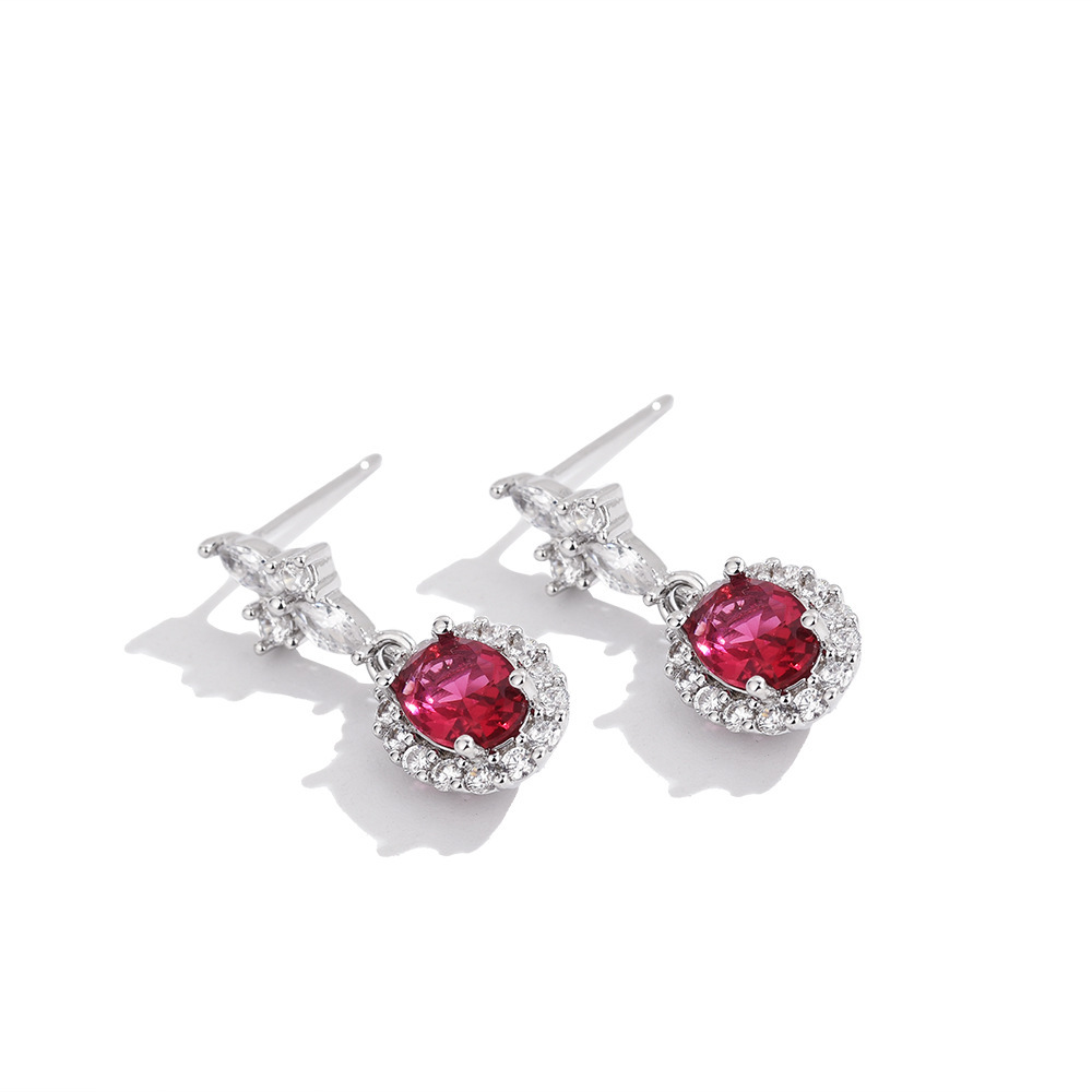 Pendientes de corindón rojo y verde oliva con piedras preciosas de colores, muy vendidos en el extranjero, para mujer, clásicos, versátiles, de lujo ligero y elegantes.