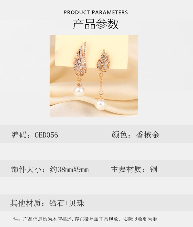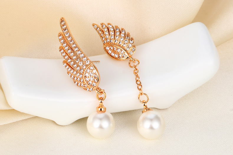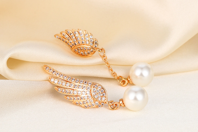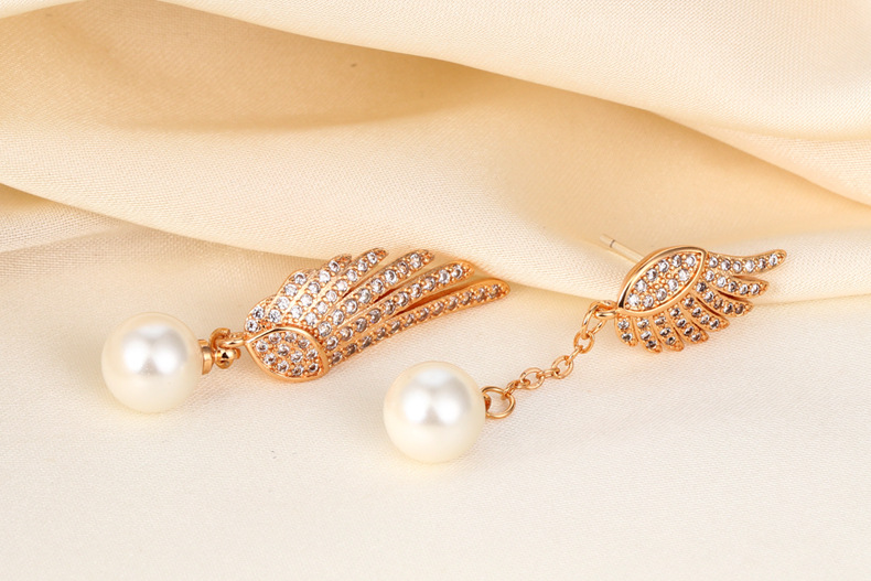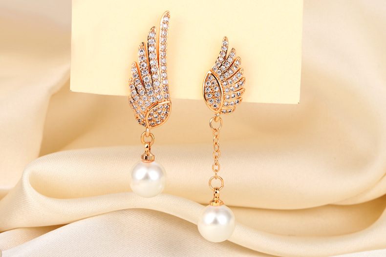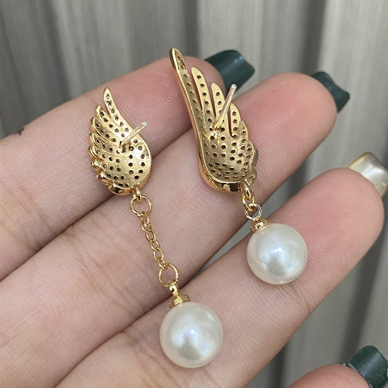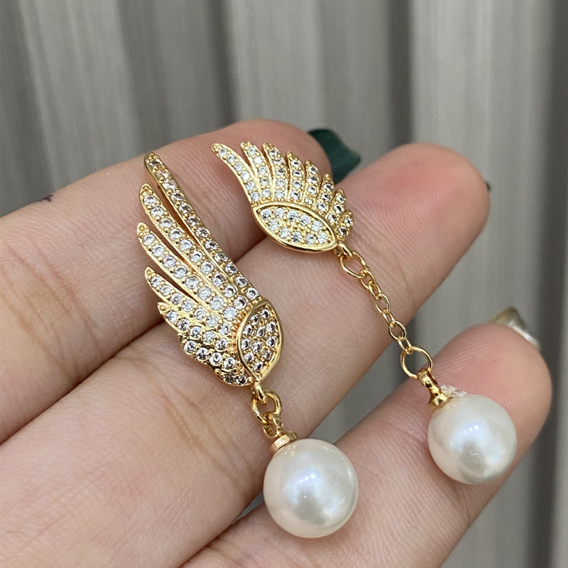 Explosión de sonido de vibración asimétrica alas perlas perlas de moda femenina temperamento elegante amplio aretes de pendientes de bordilla larga