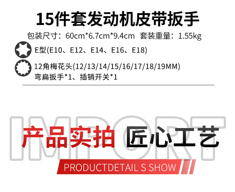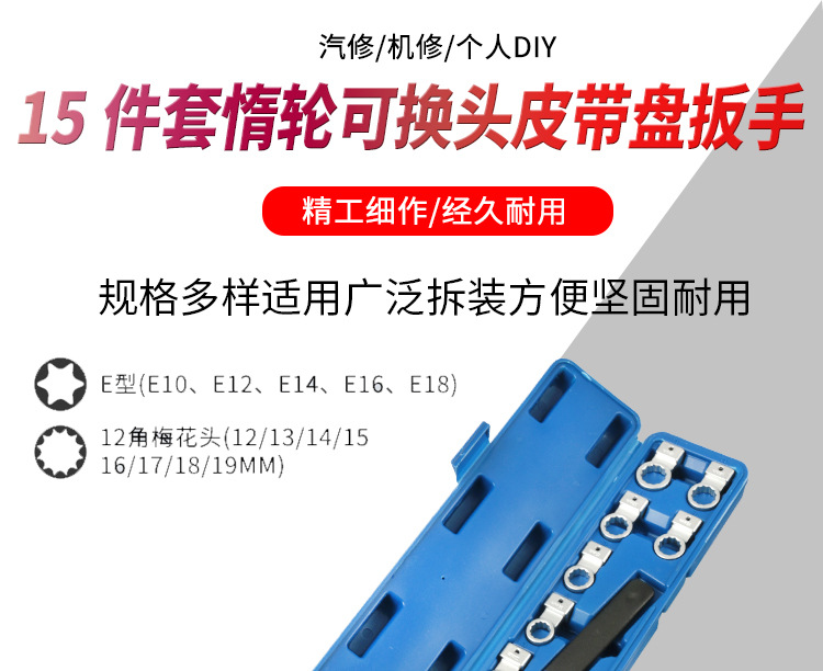 15 piezas juego de motor de automóvil correa llave ajustable polea desmontaje engranaje ocioso tensión herramienta especial de reparación de automóviles